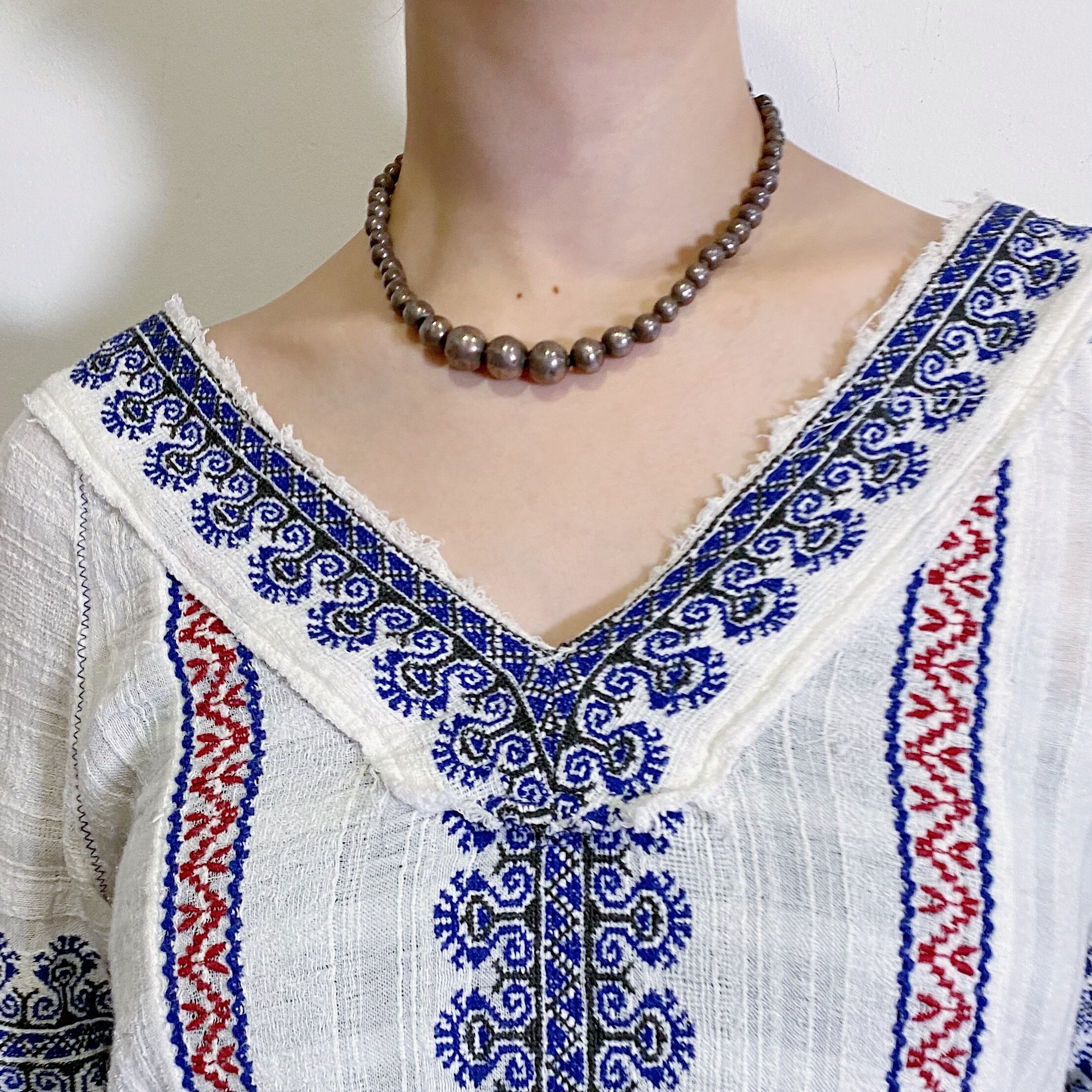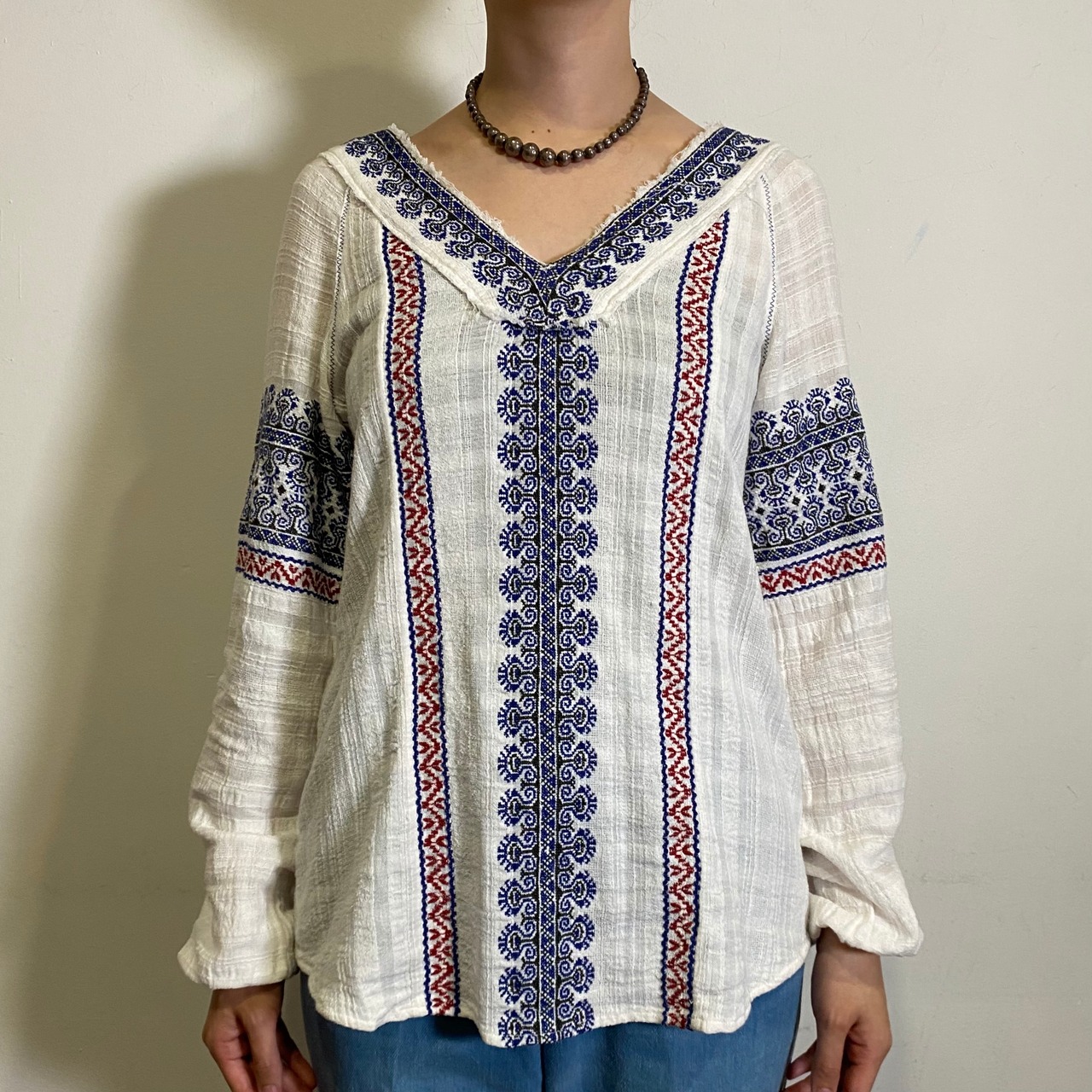 ネイビーとレッドの刺繍が素敵な、チュニックトップです。