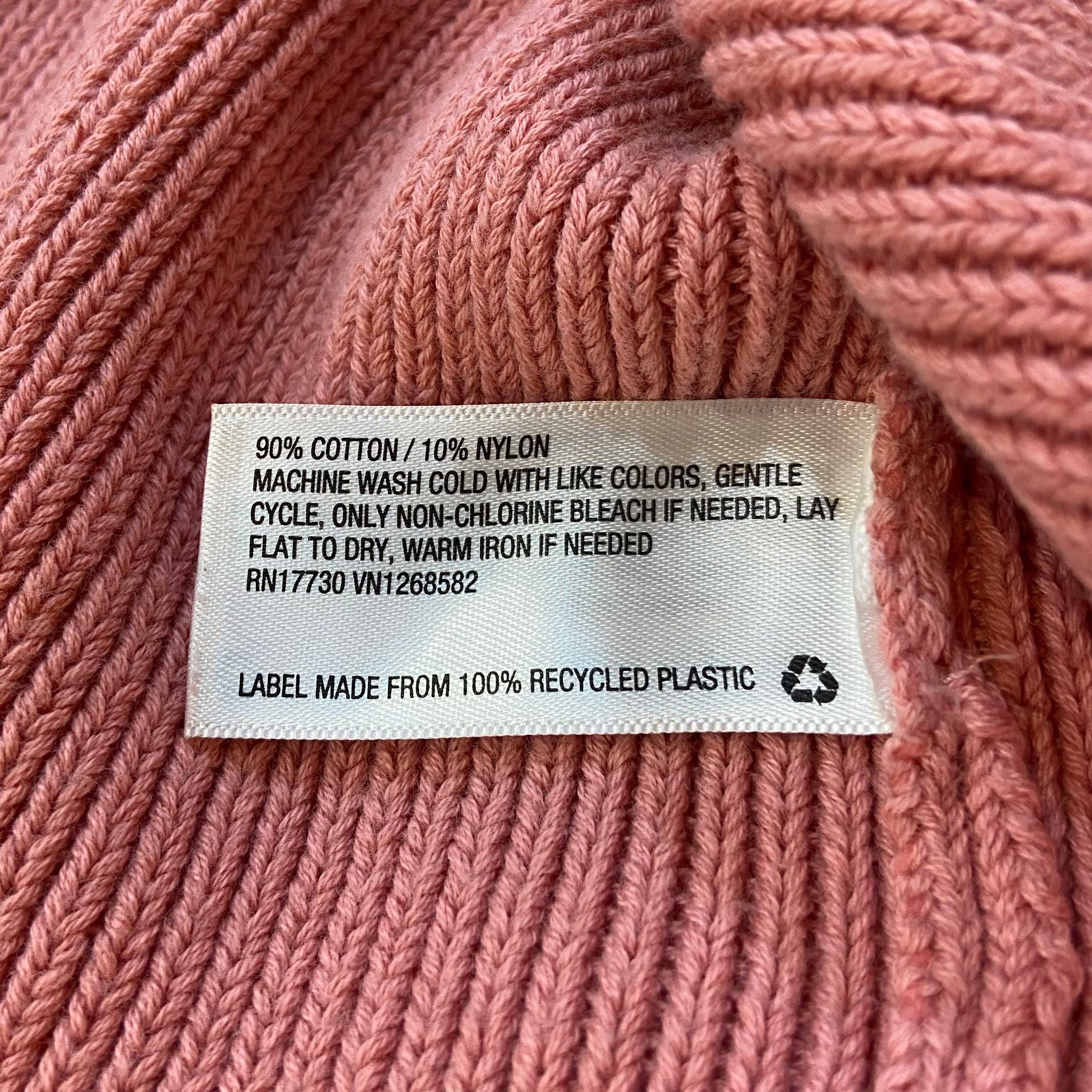 コットンベースのちくちくしない素材でデイリーに着こなしやすい、ピンクのハイネックトップです。