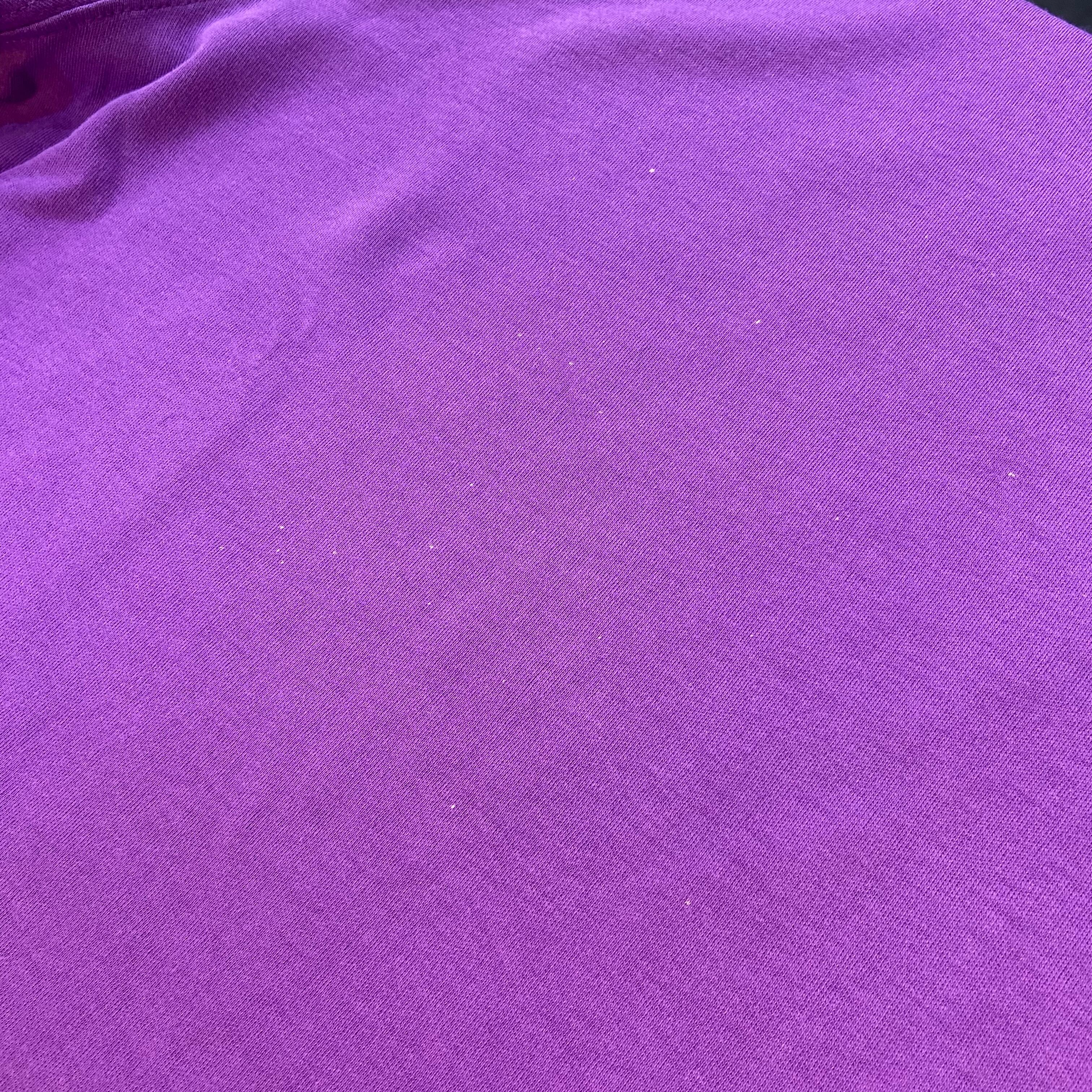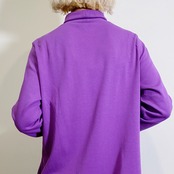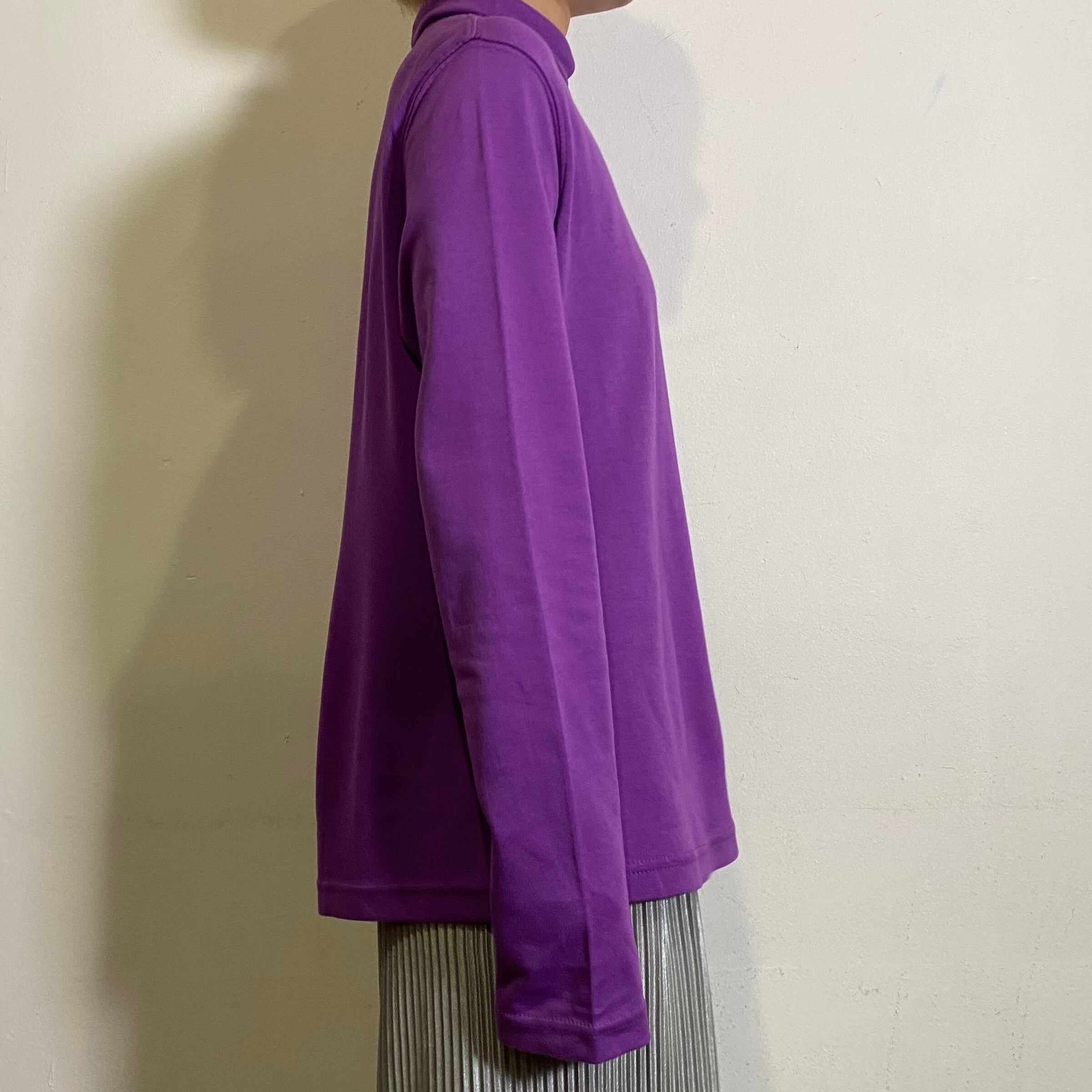 ちくちくしないコットン100%地で着こなしやすい、紫のハイネックトップです。