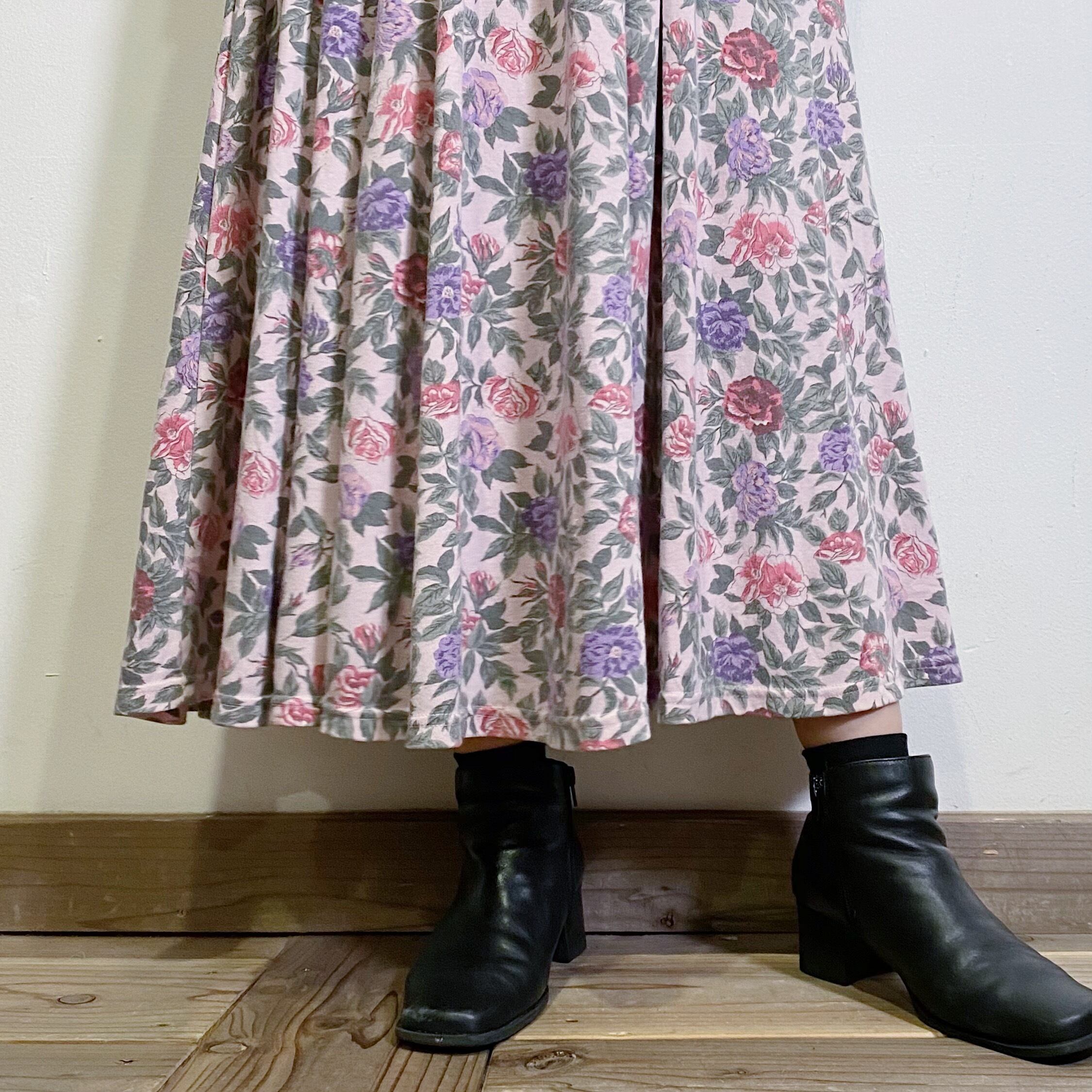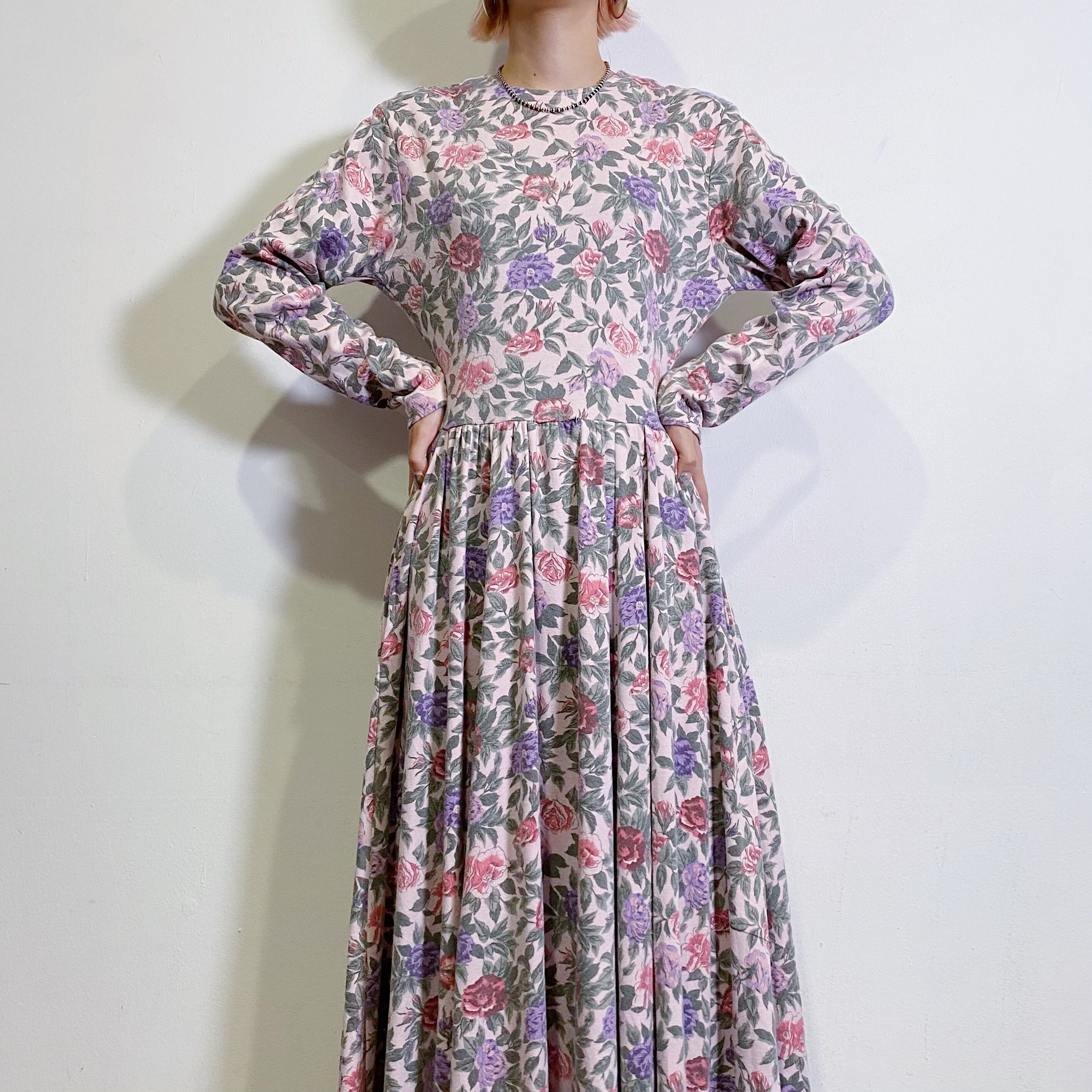 ベビーピンクベースの花柄が可愛い、80年代のワンピースです。