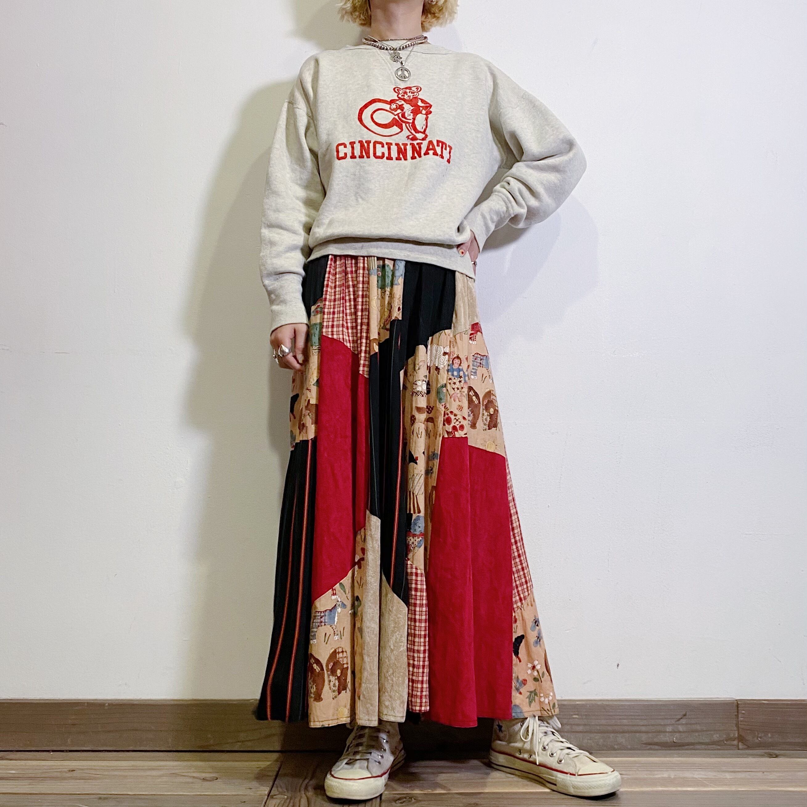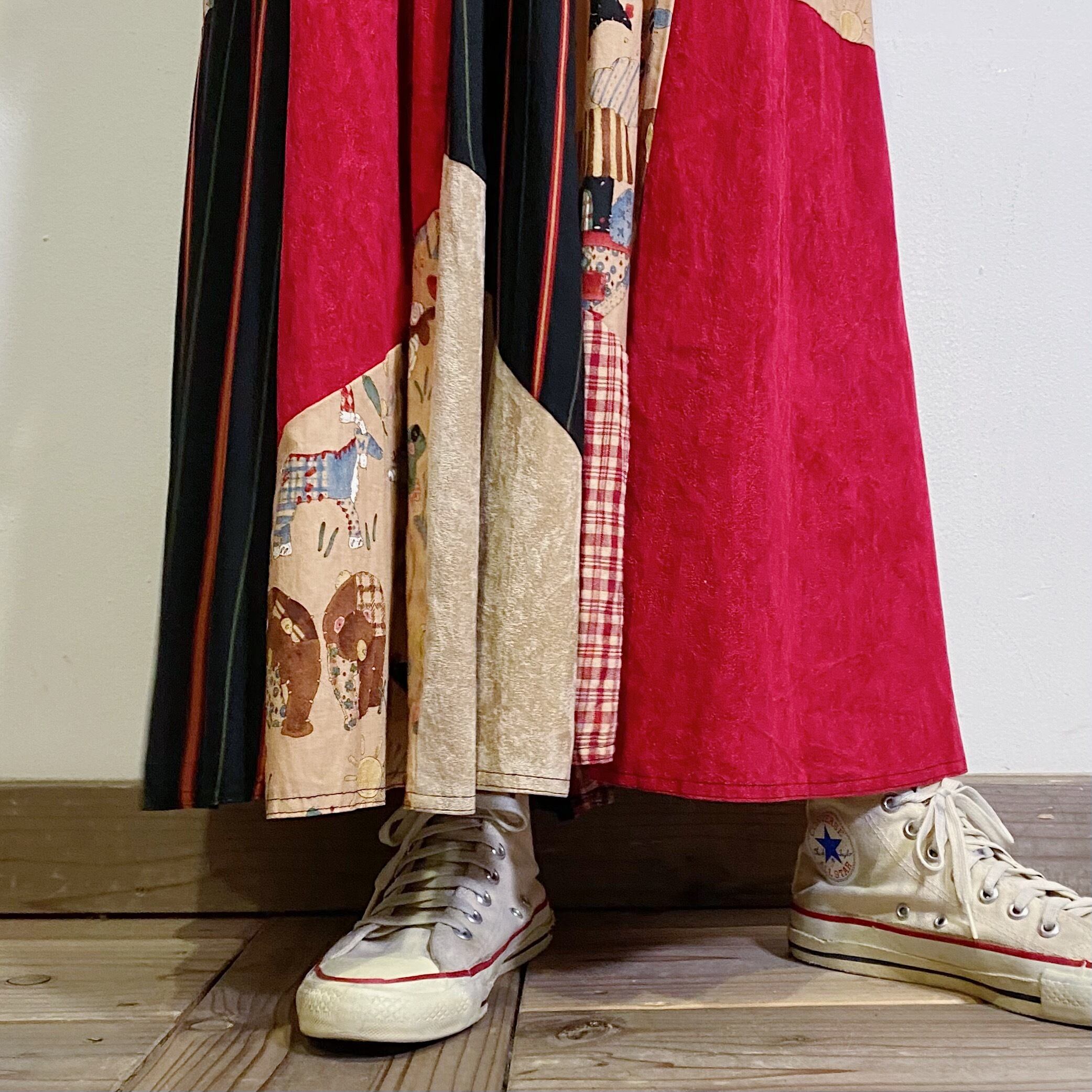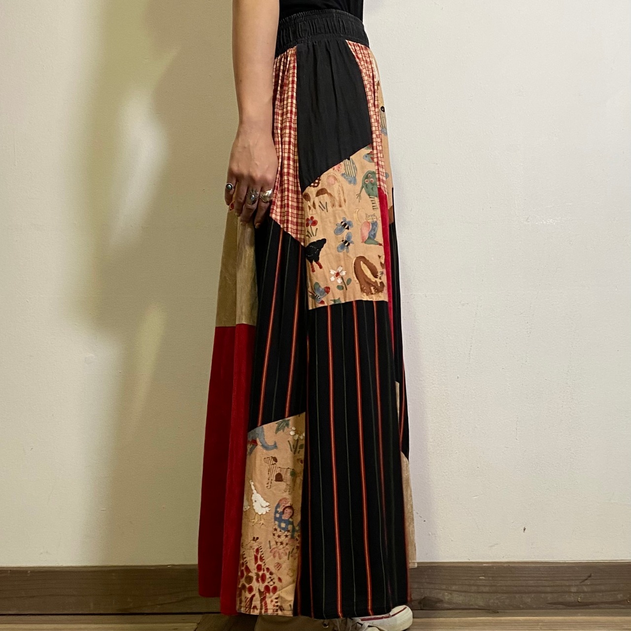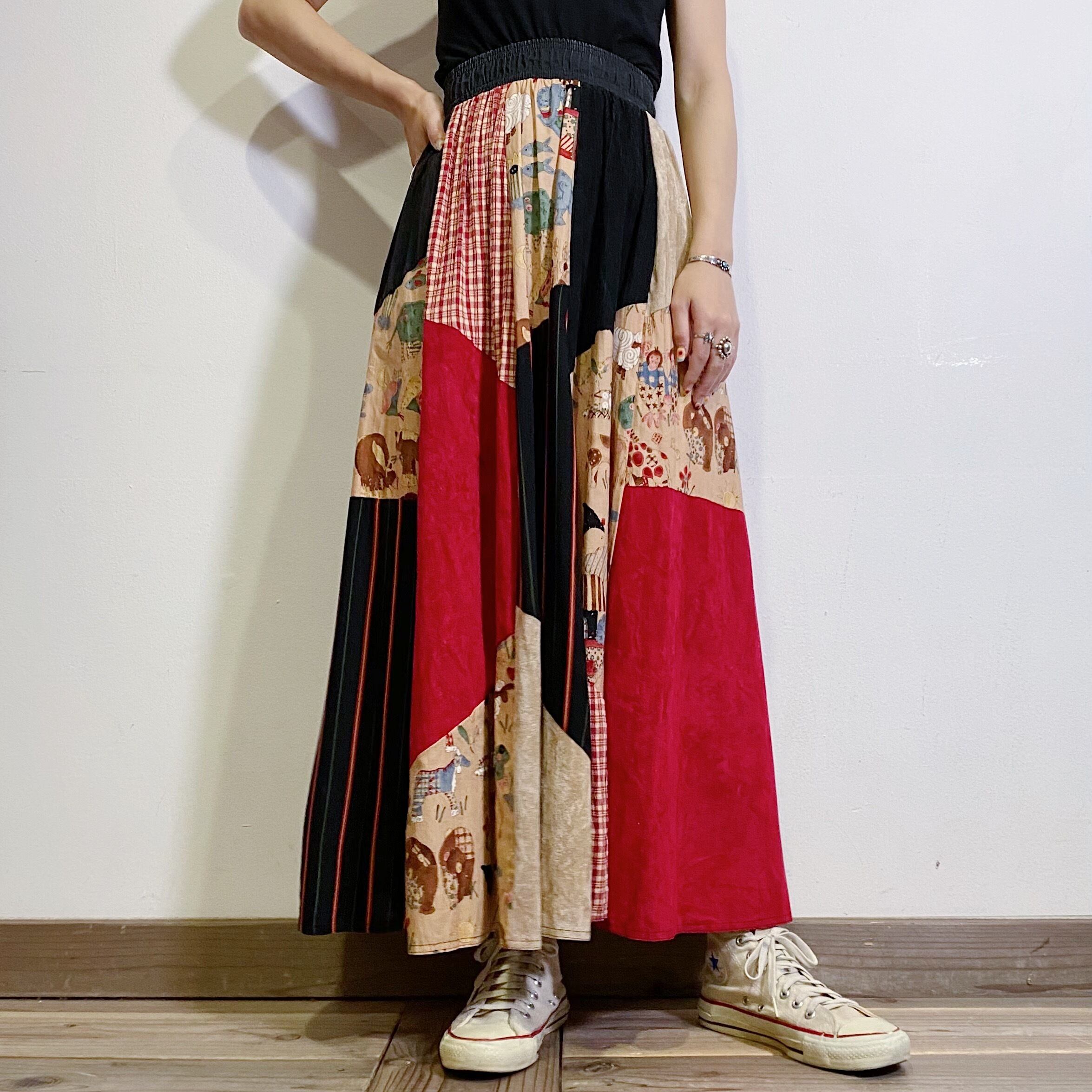 いろんな生地のパッチワークがとても可愛い、80年代のロングスカートです。
