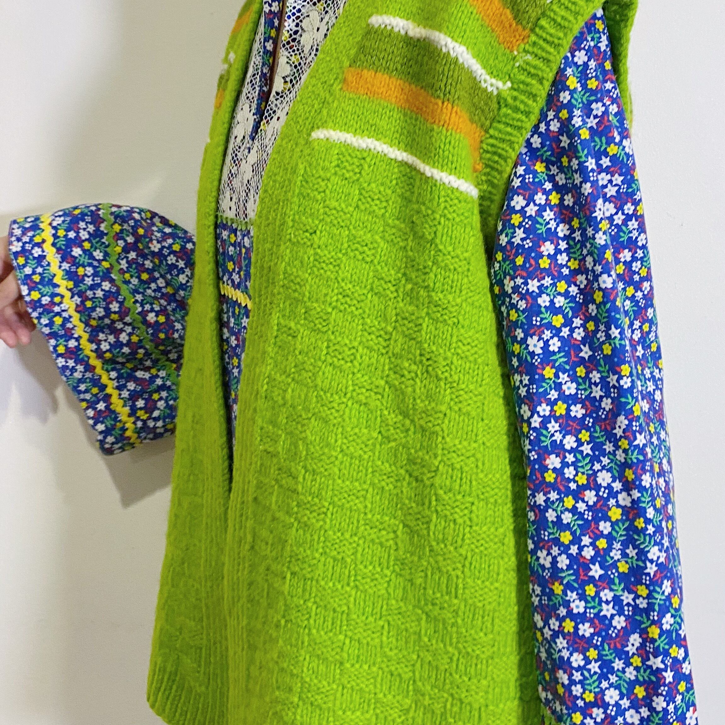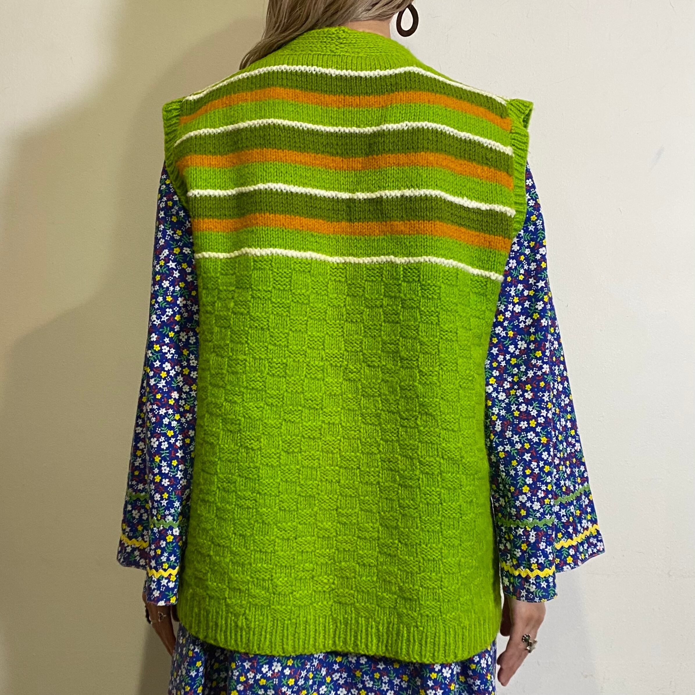 黄緑の色合いが可愛い、70年代の手編みのベストです。