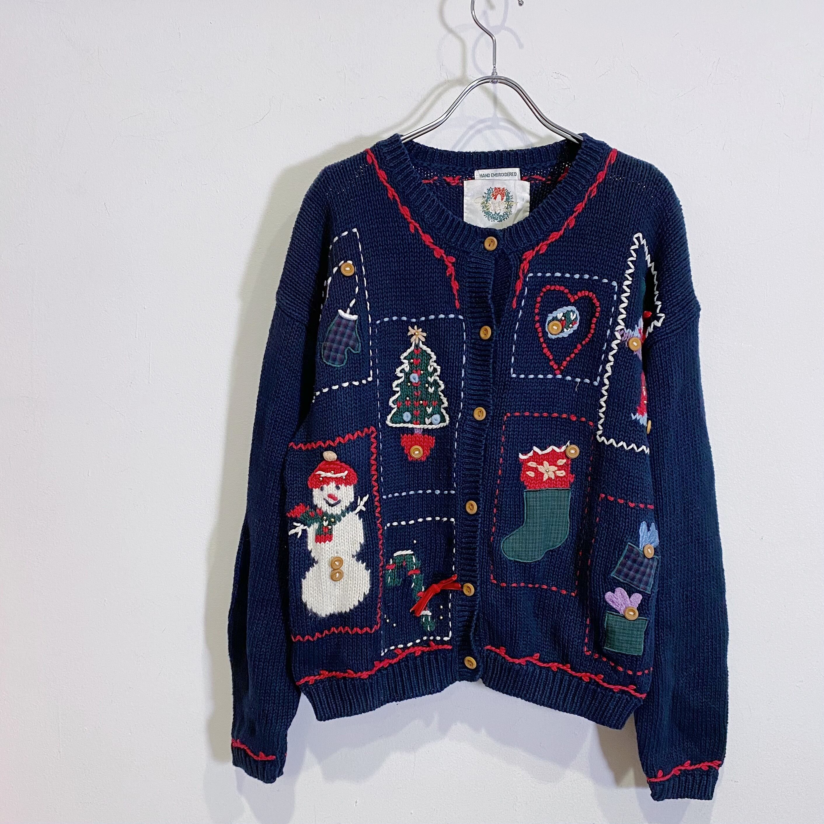 Xmas motif cotton knit cardigan