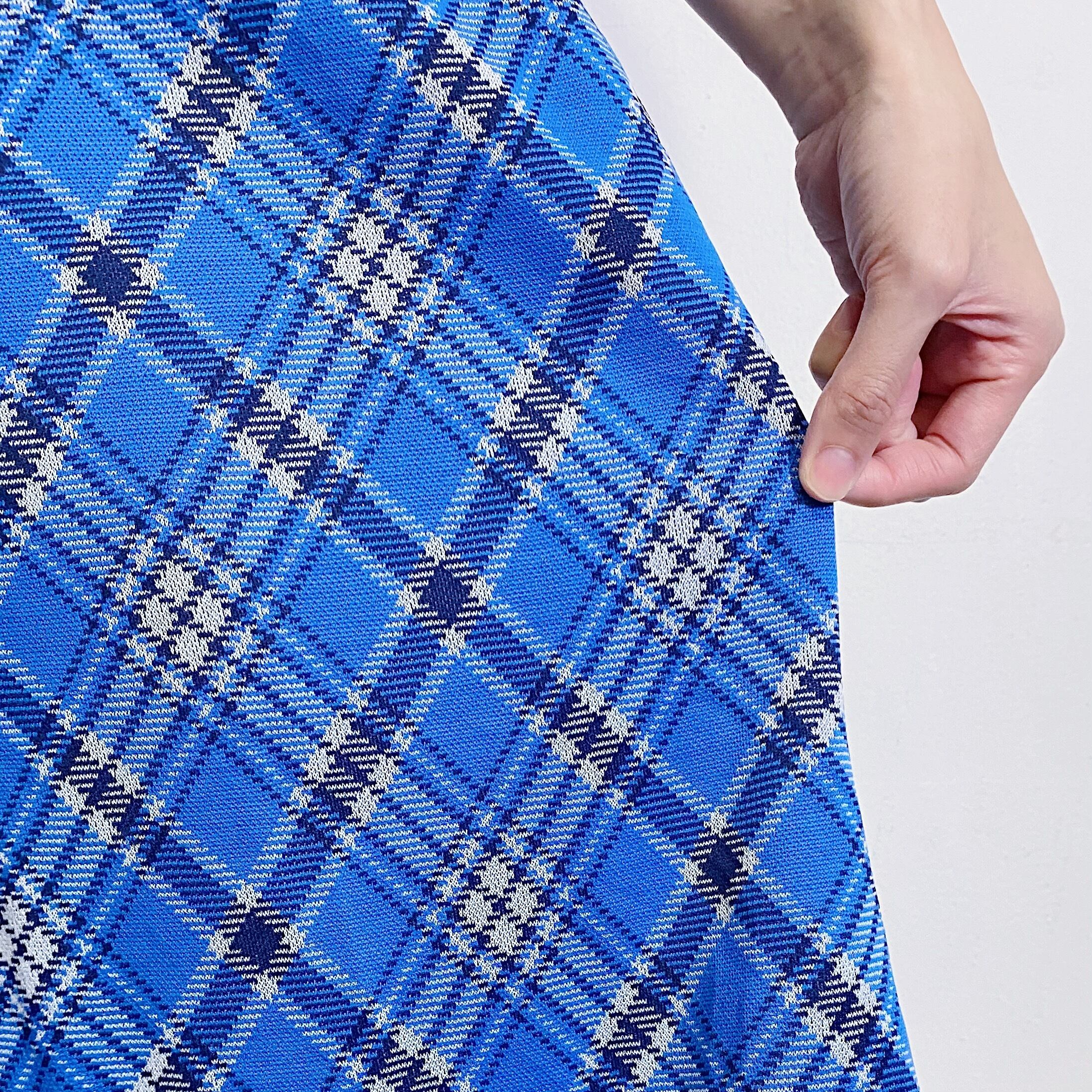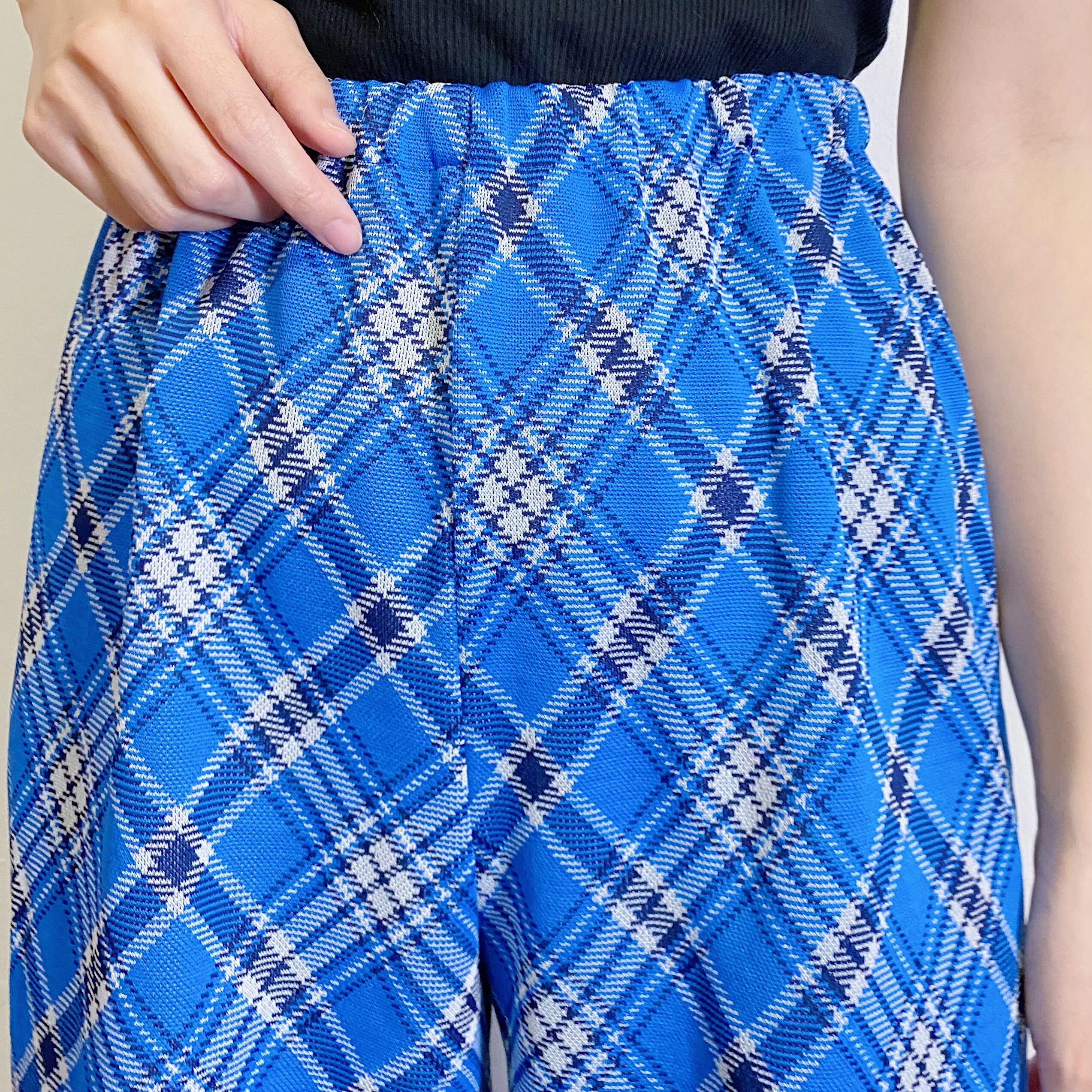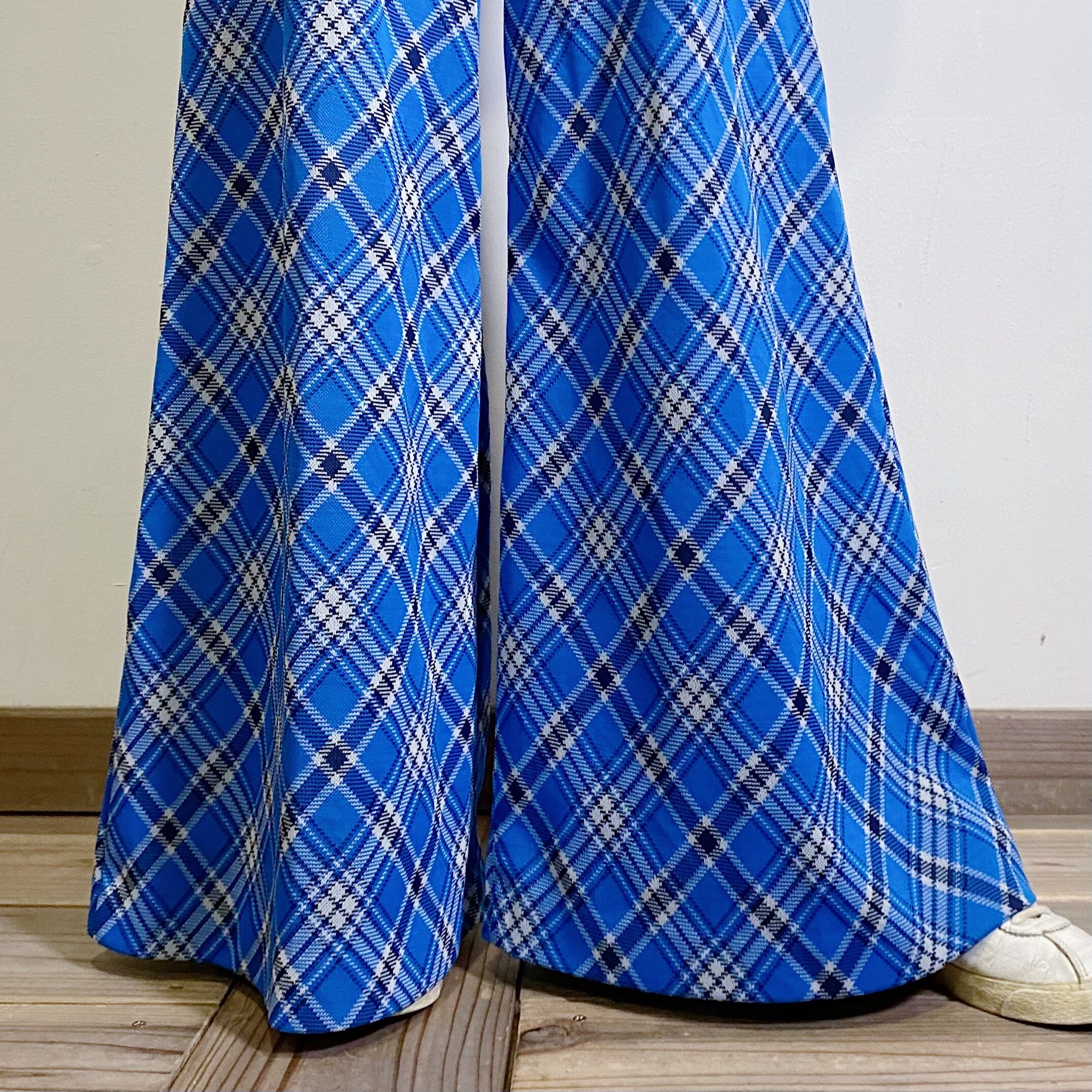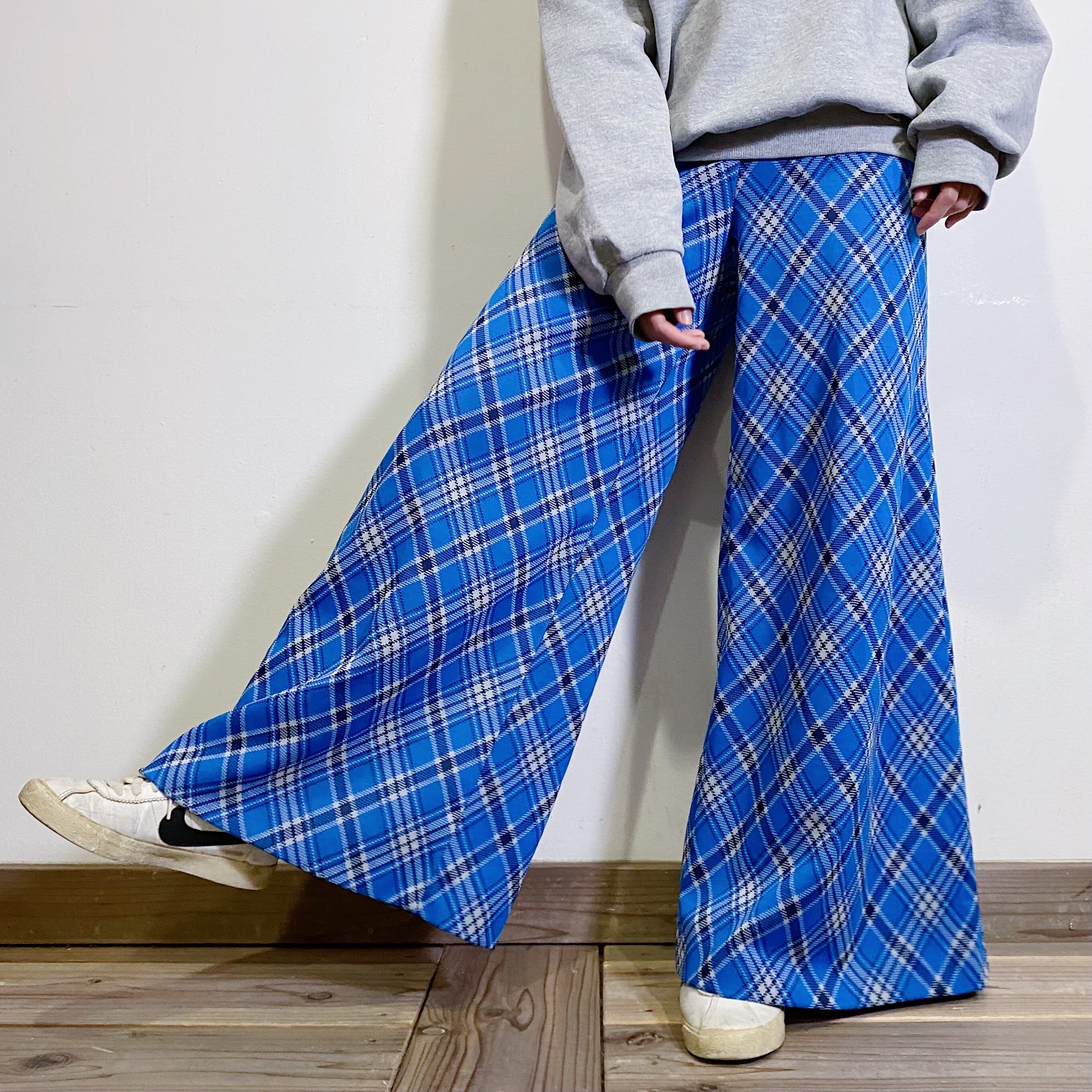 ブルーとブラックのチェック柄が可愛い、70年代のワイドパンツです。