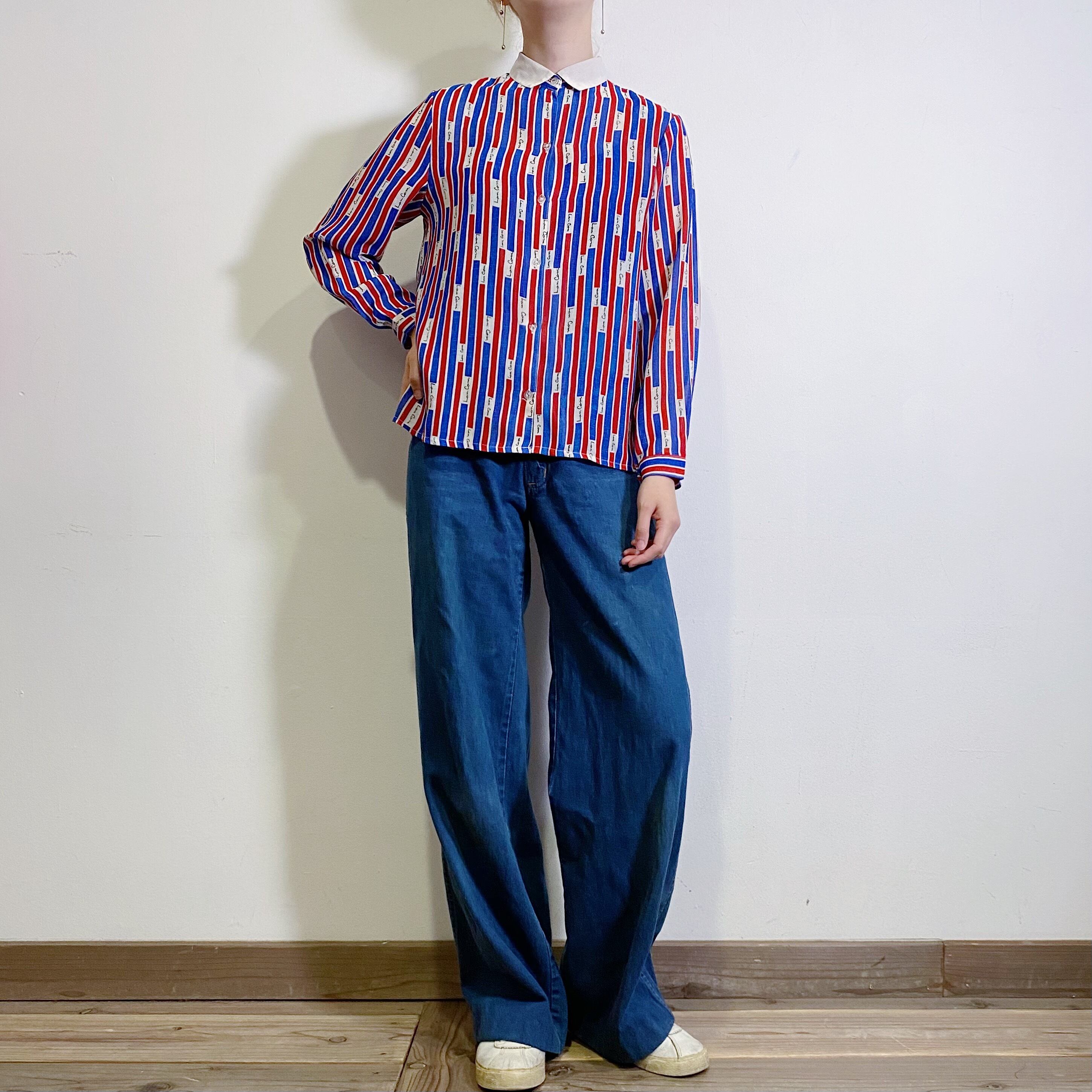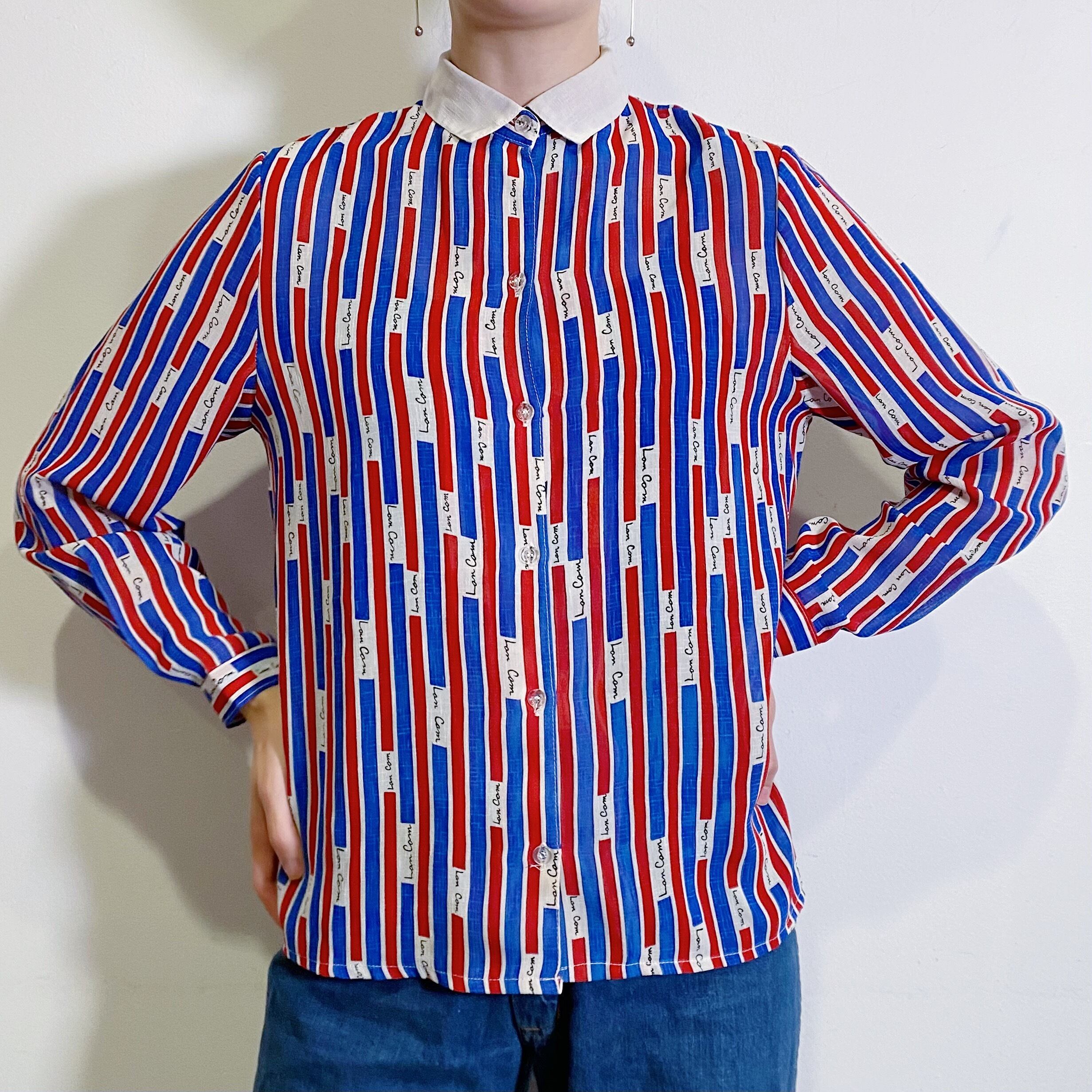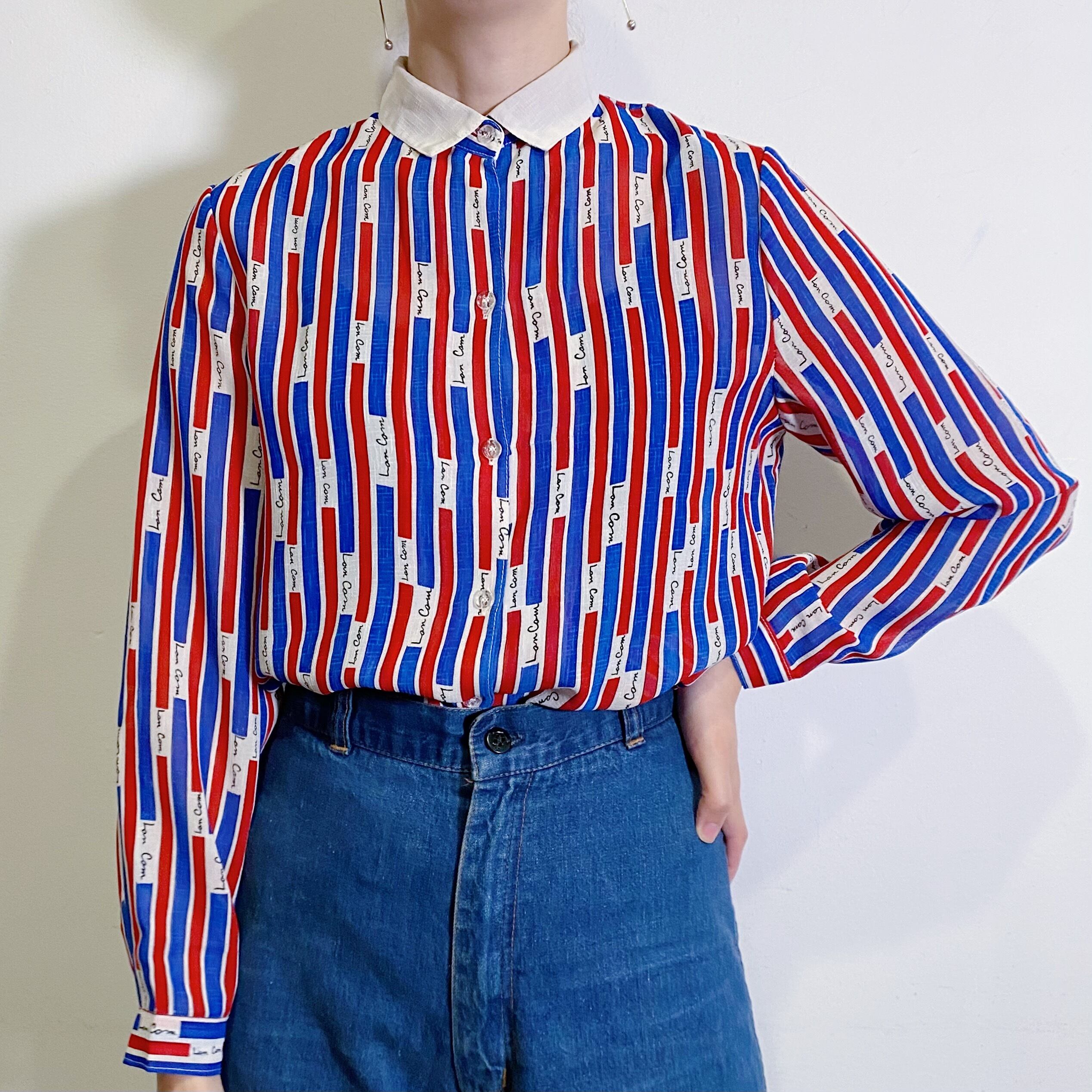 レッドとブルーのストライプ柄が可愛い、80年代のシャツです。