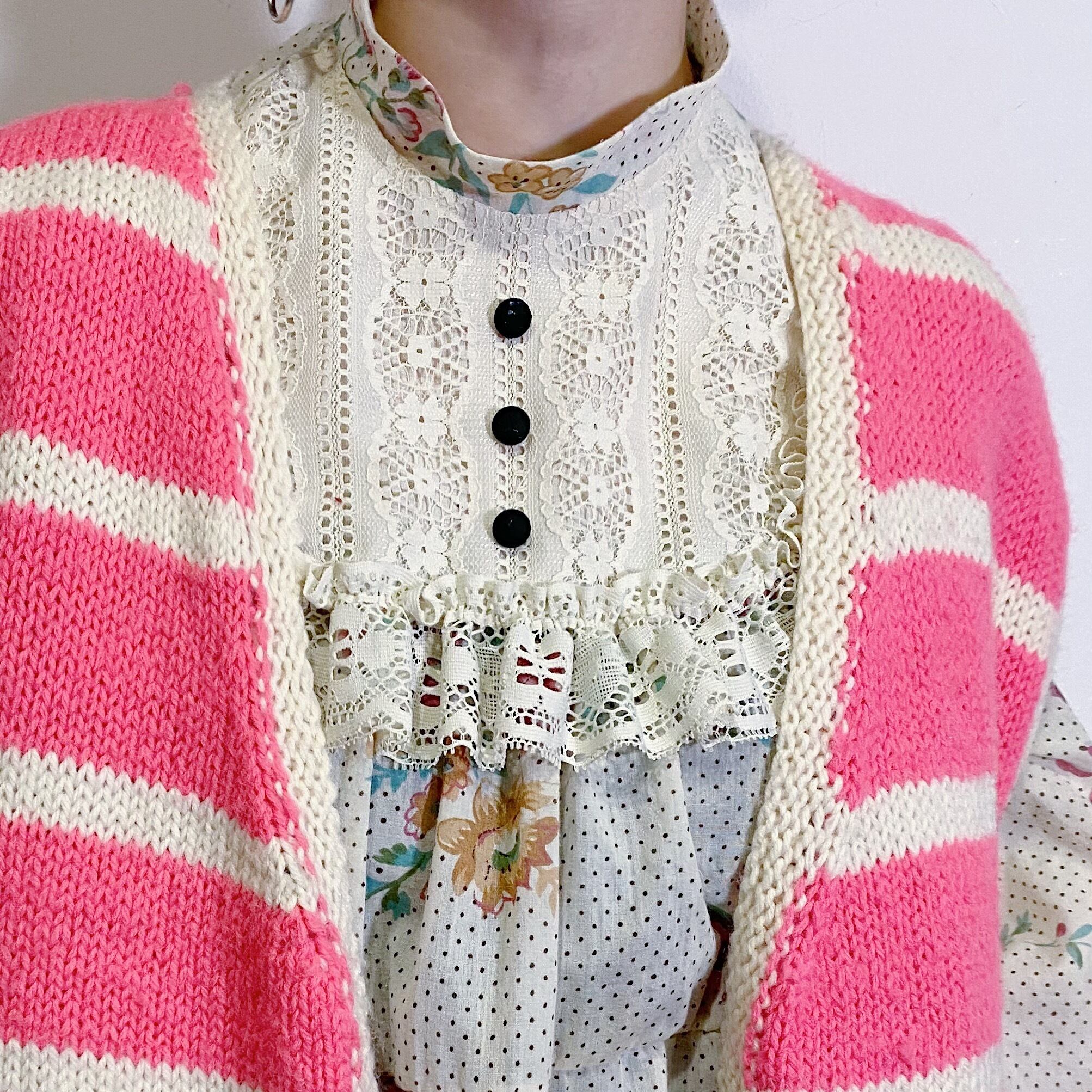 こちらは当時の手編みのもので、ゆったりとした大きめのサイズ感がキュートな一枚。