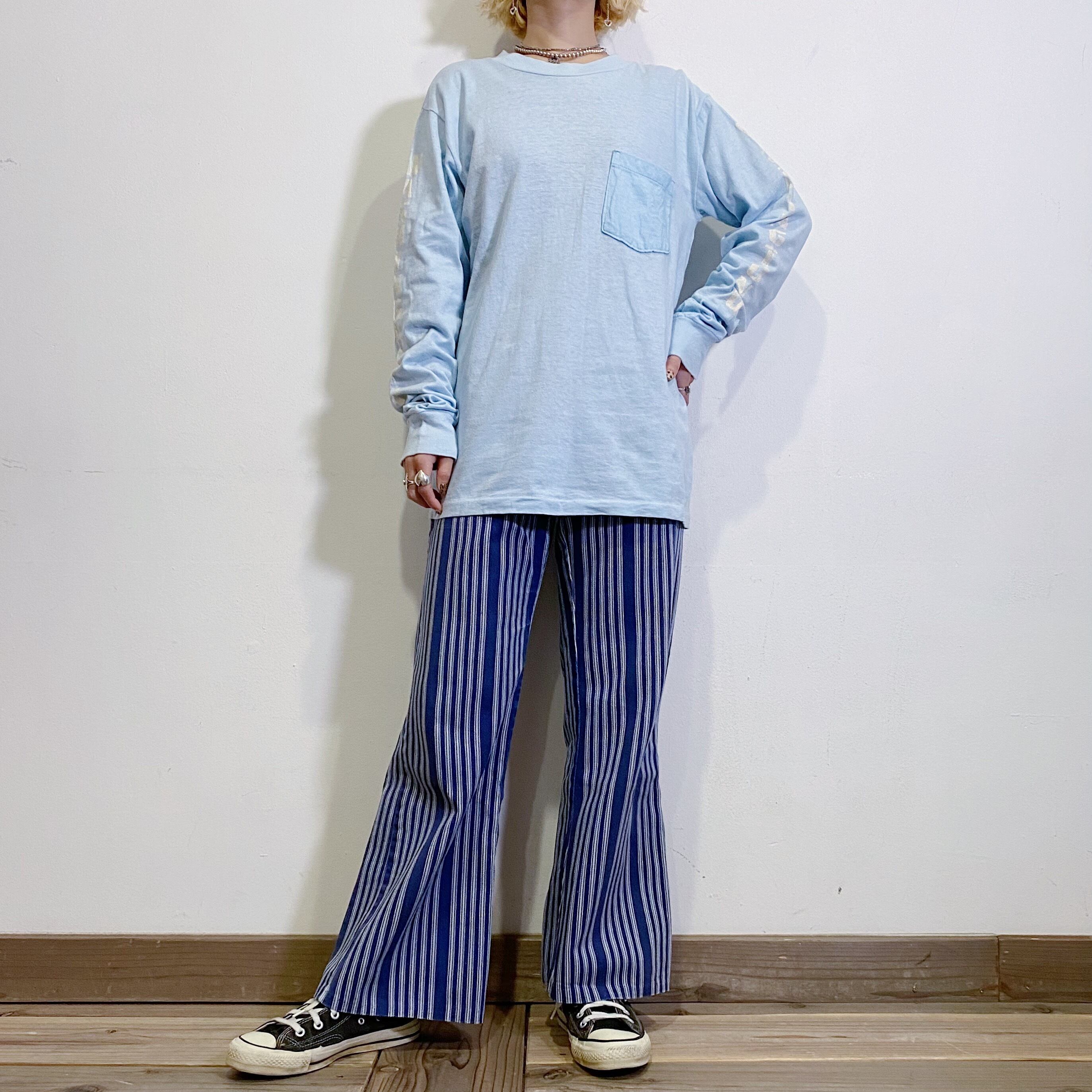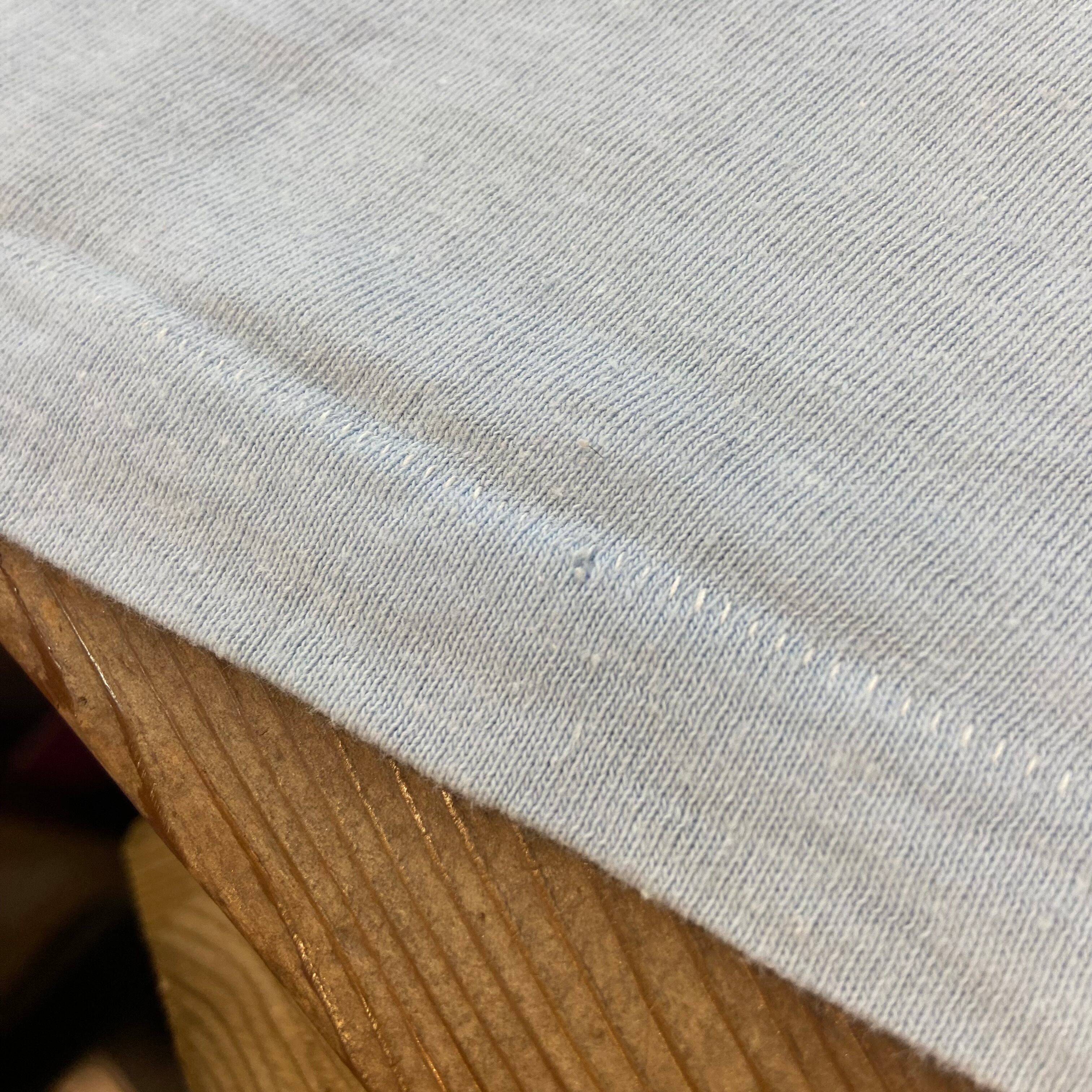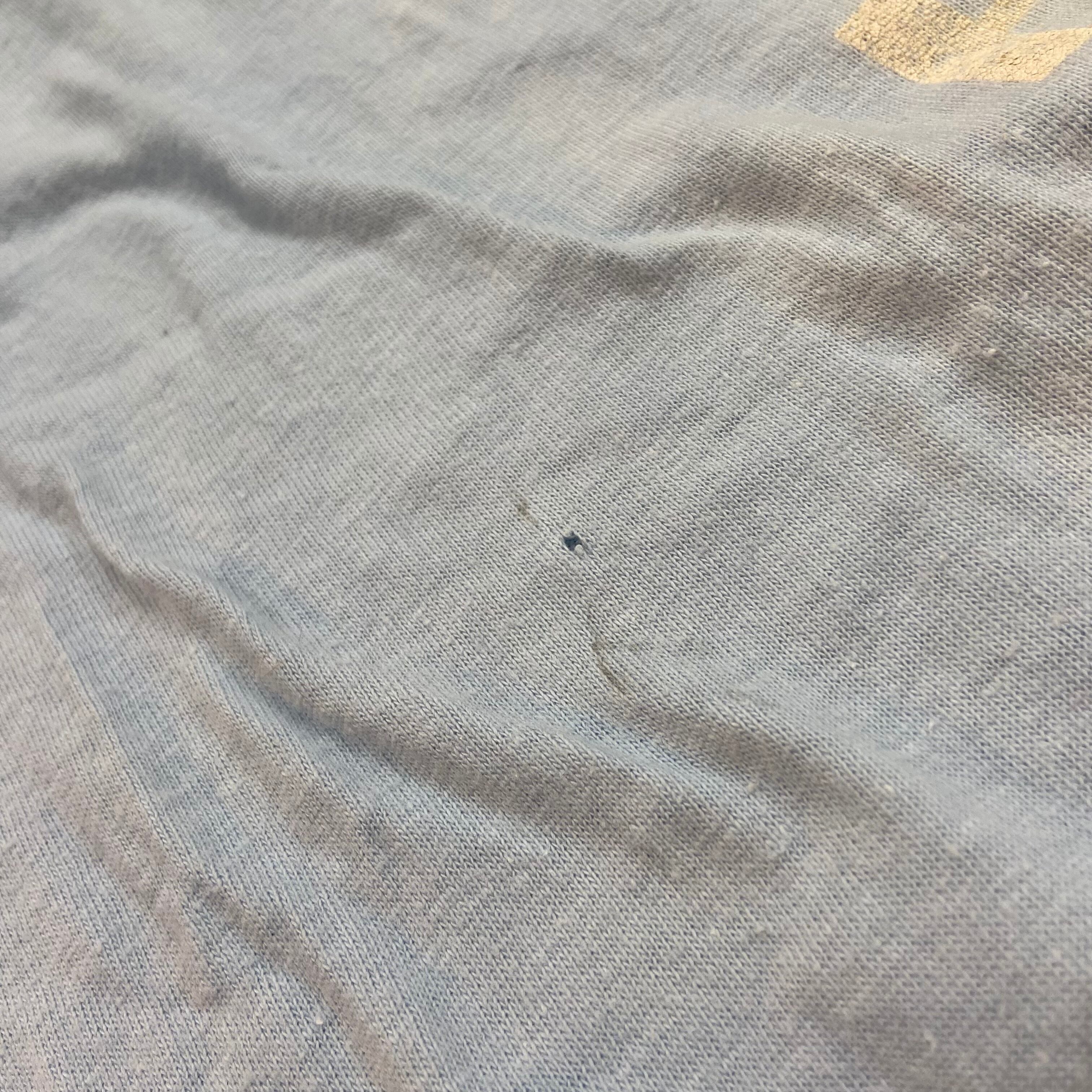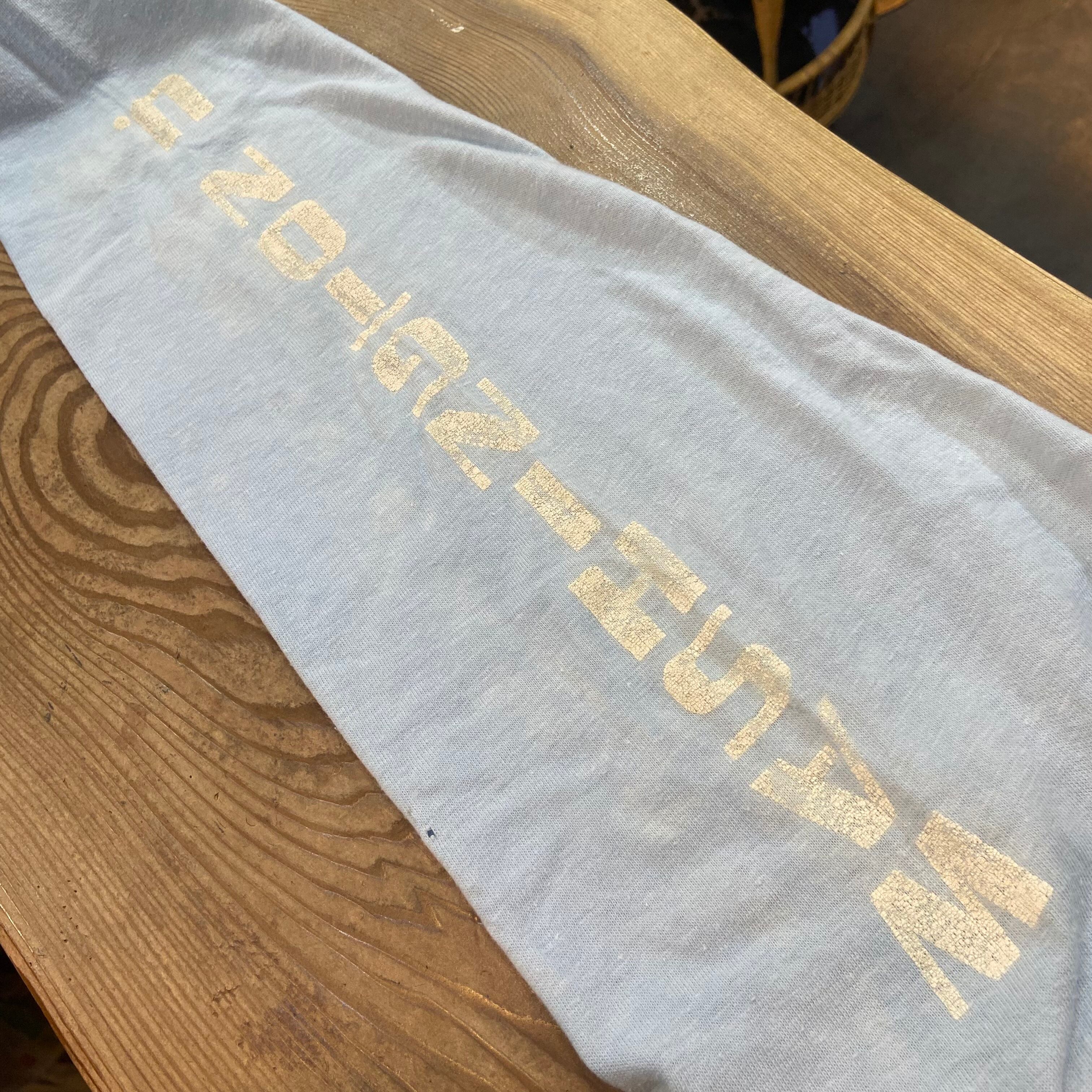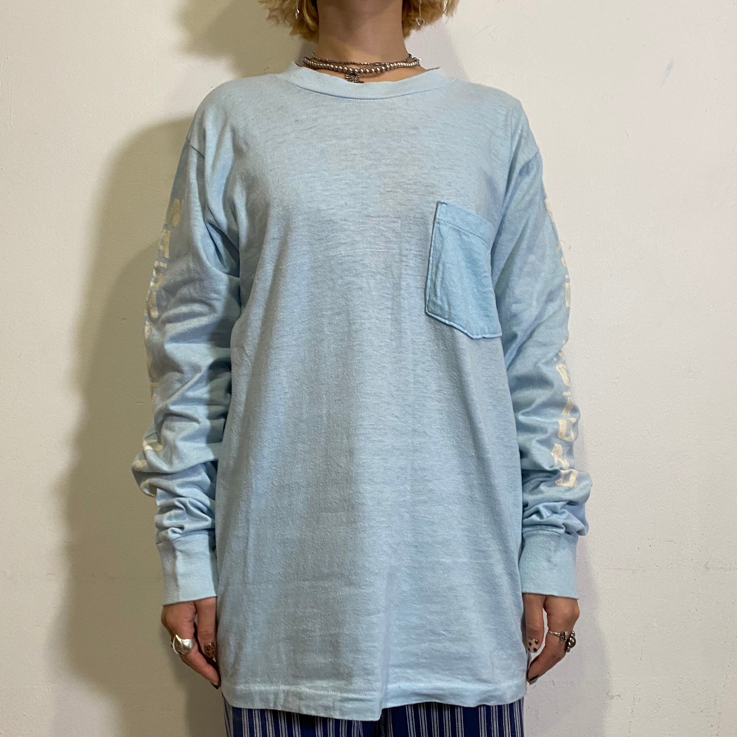 淡いサックスブルーの色合いが可愛い、80年代のChampionのロンTです。