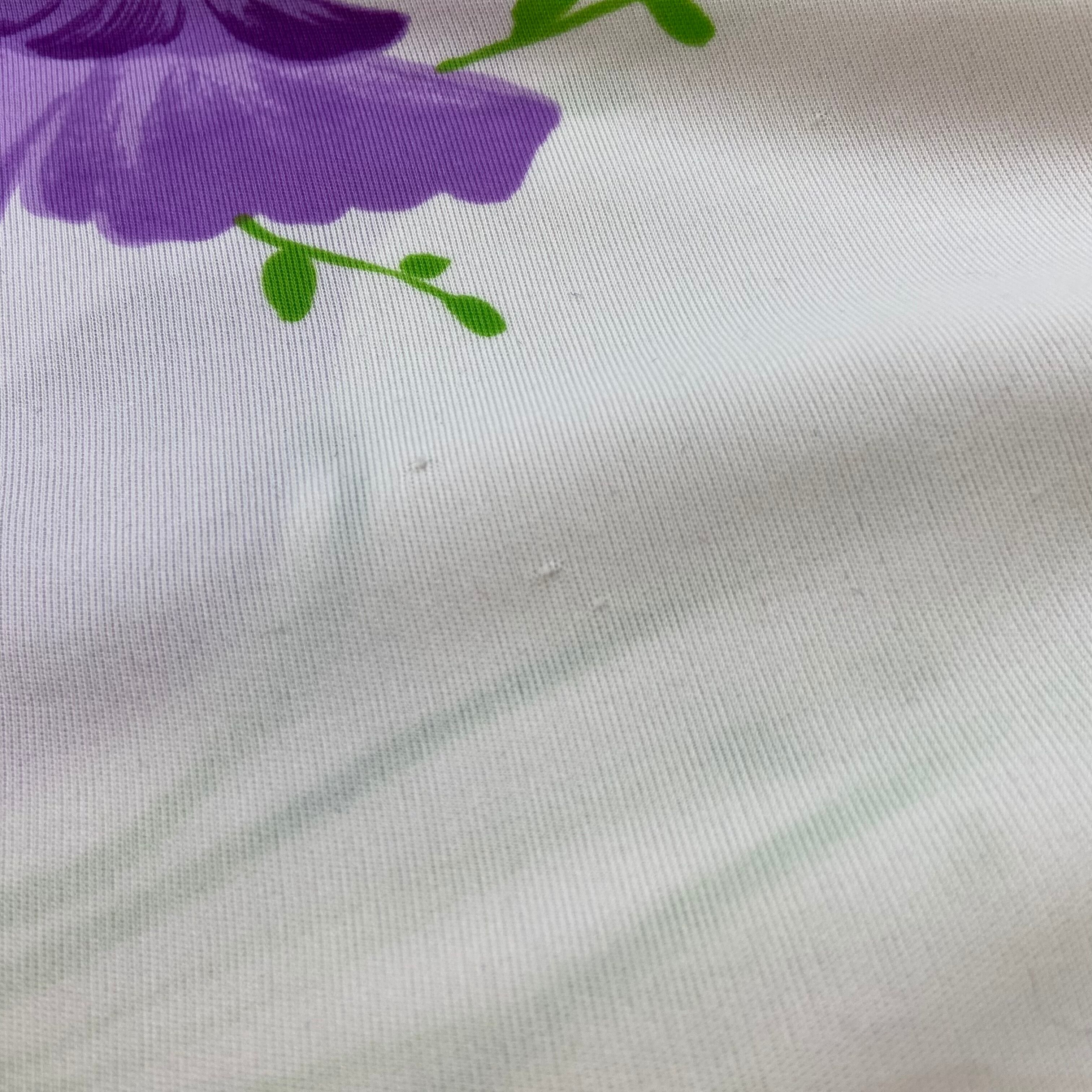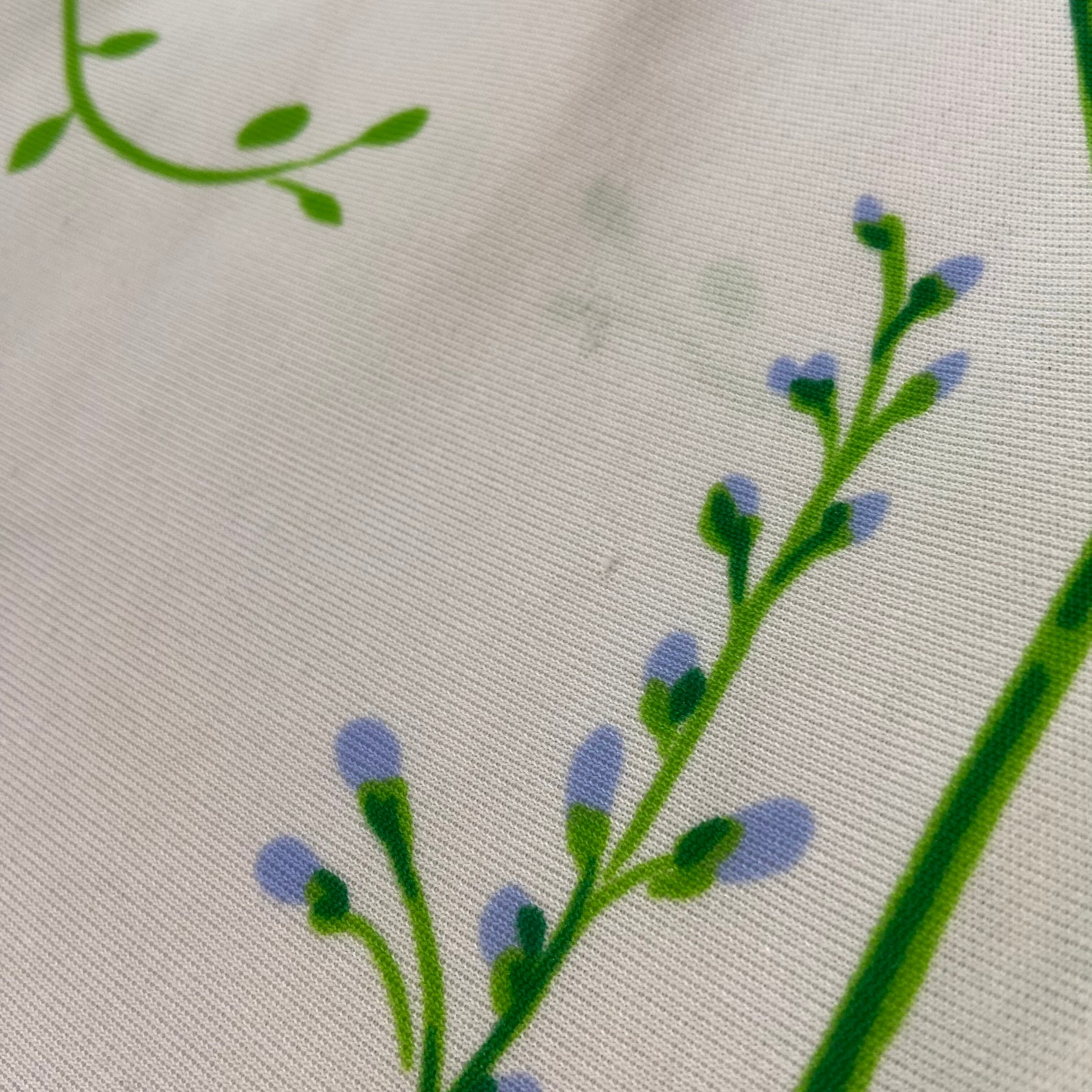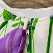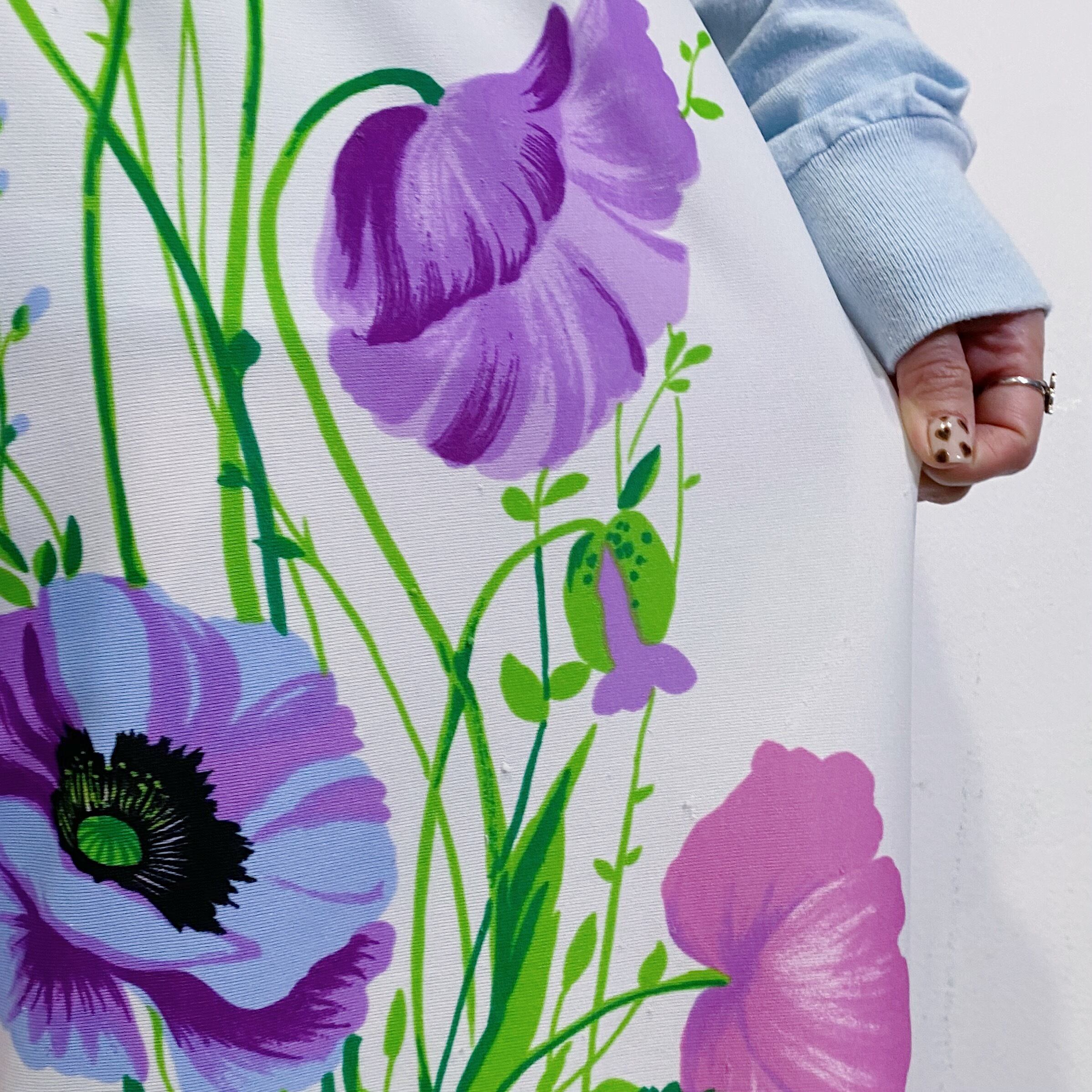 紫やオレンジのお花が咲いたテキスタイルが可愛い、70年代のジャンプスーツです。