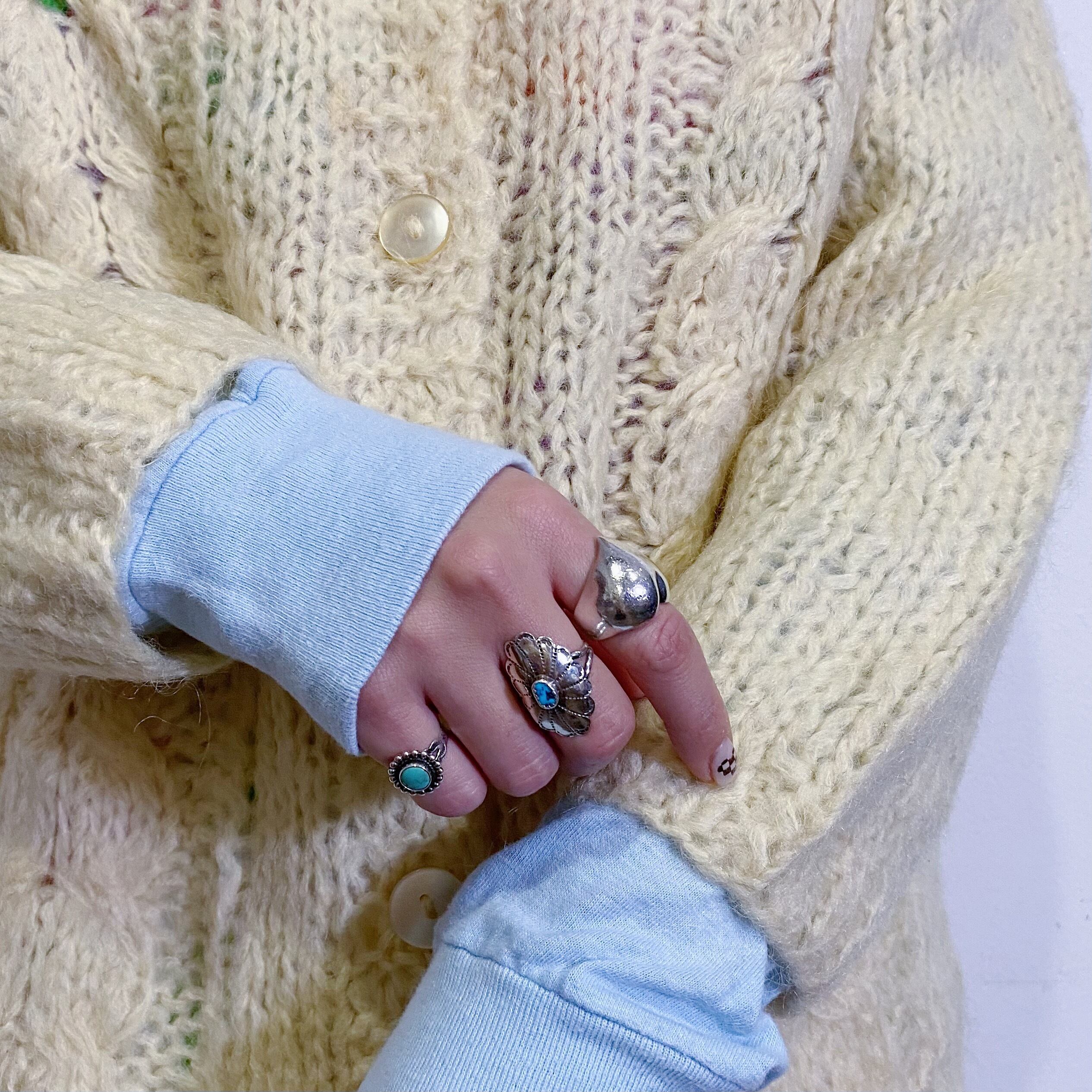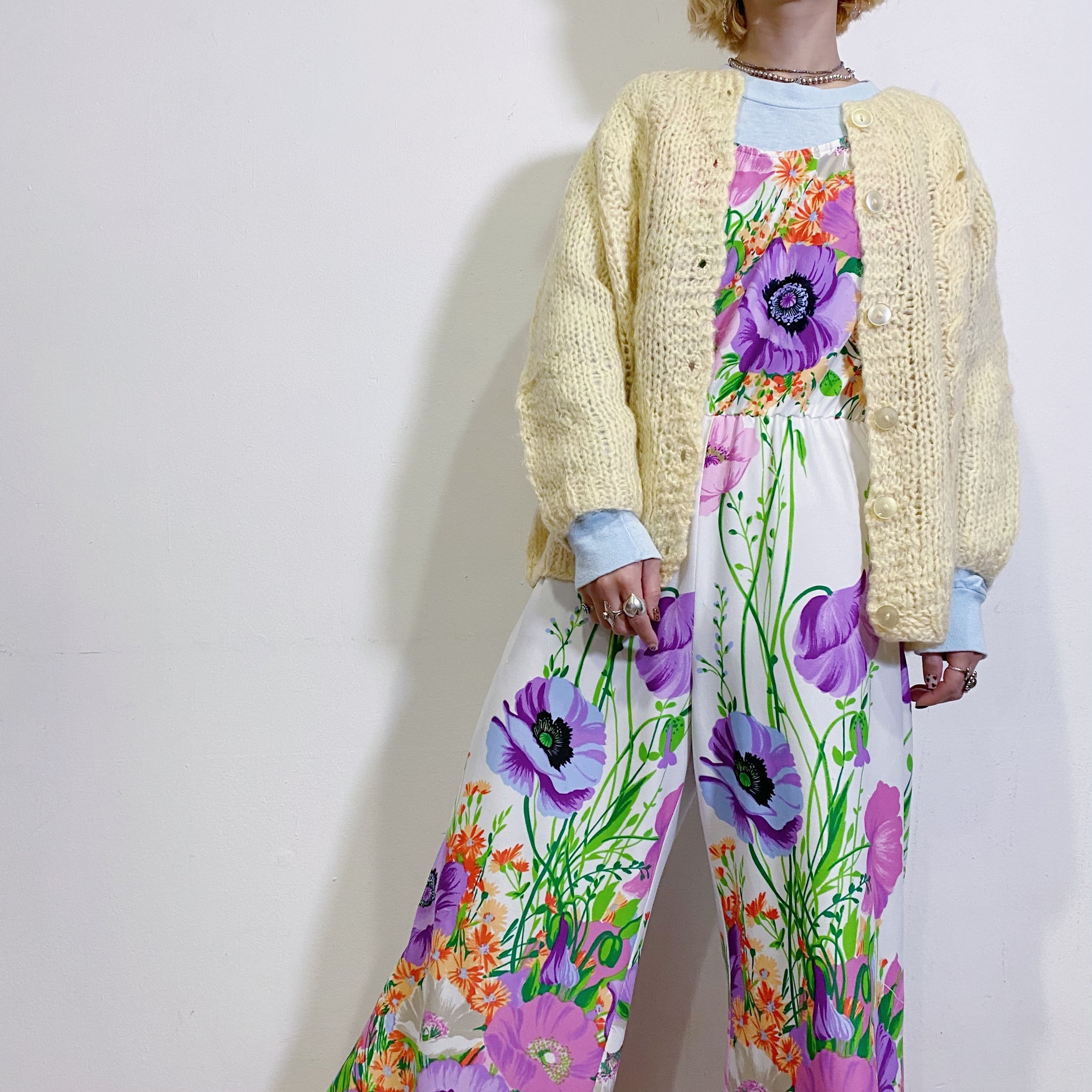 ホワイトベースで大変使い勝手の良い、60年代の手編みのカーディガンです。