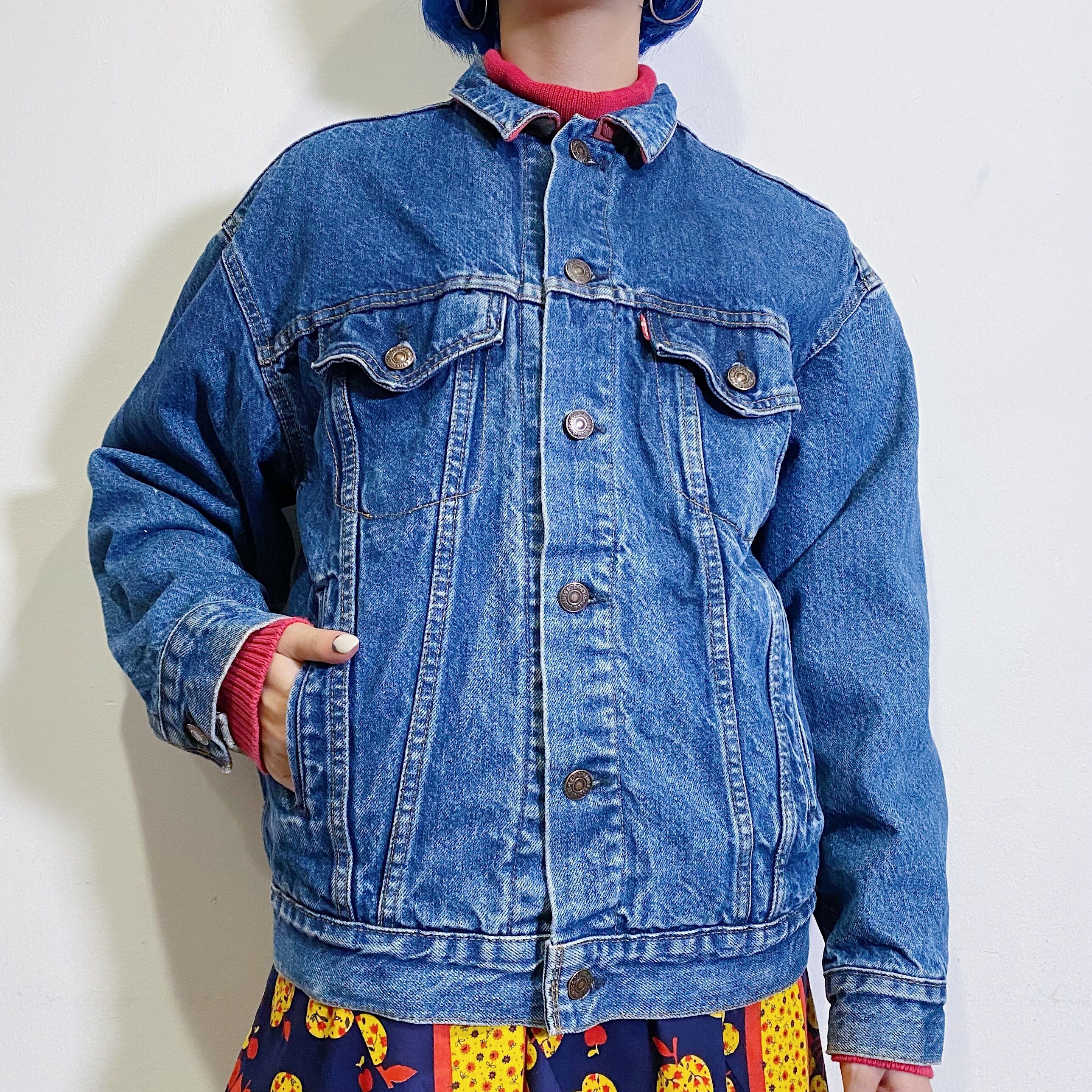 赤チェックネルの裏地が可愛い、80年代のLevi'sのデニムジャケットです。