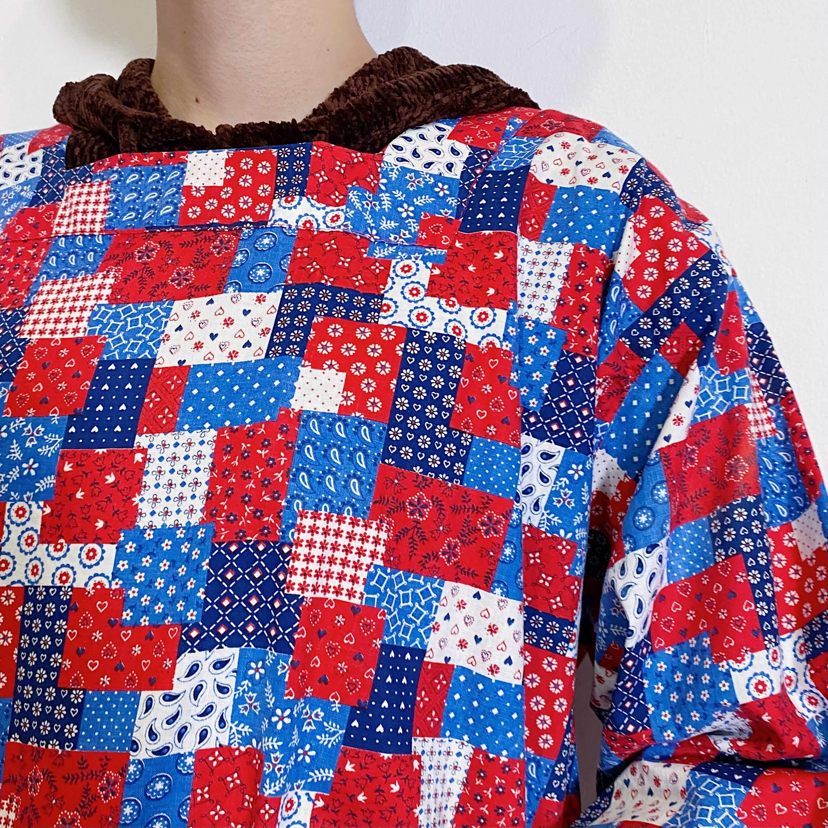ブルーとレッドのパッチワーク柄が可愛い、70年代のトップスです。