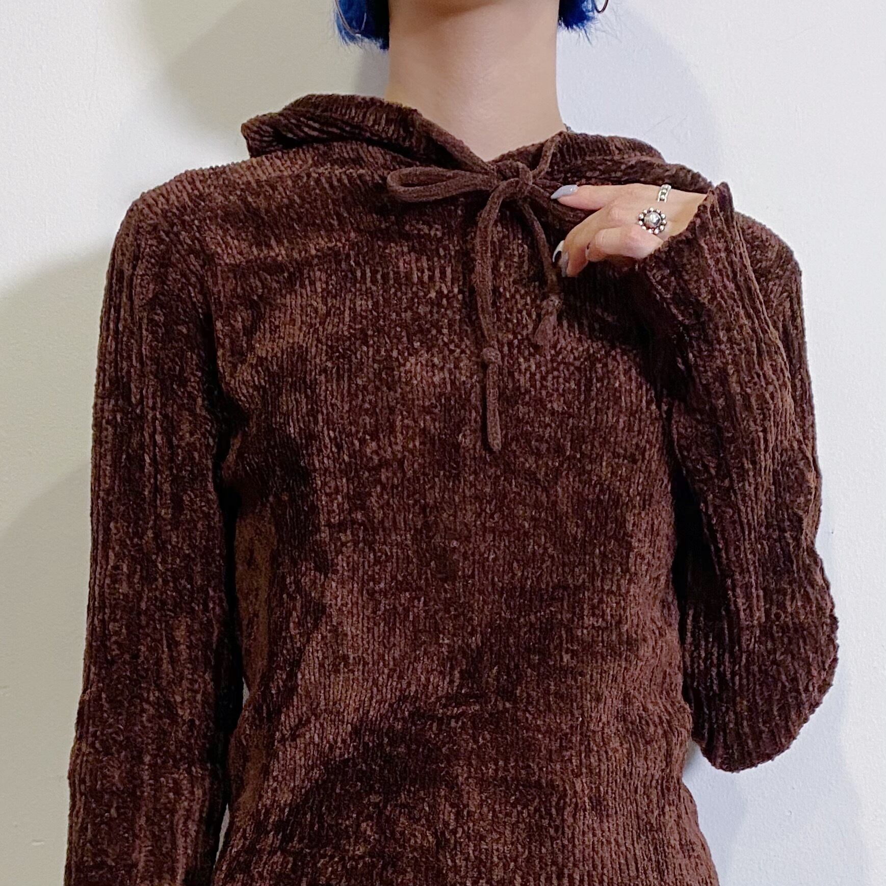 もこもことしたモールのような素材感が可愛い、90年代のフーディーです。