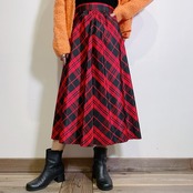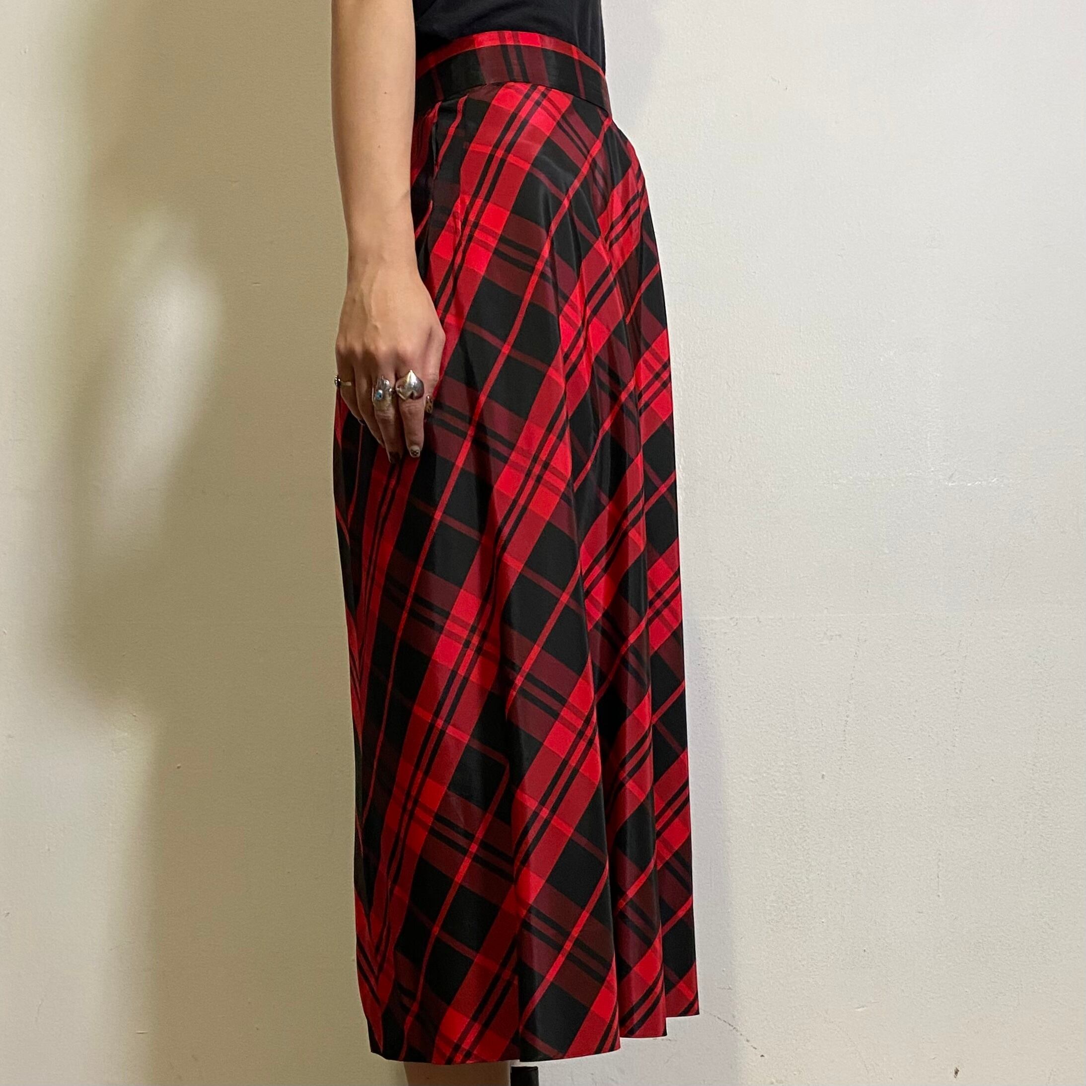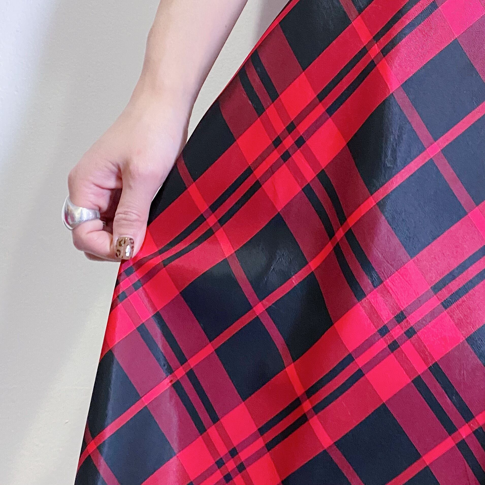 程よい光沢感とハリのあるシャンタン素材に赤×黒チェックが可愛い、50年代のスカートです。