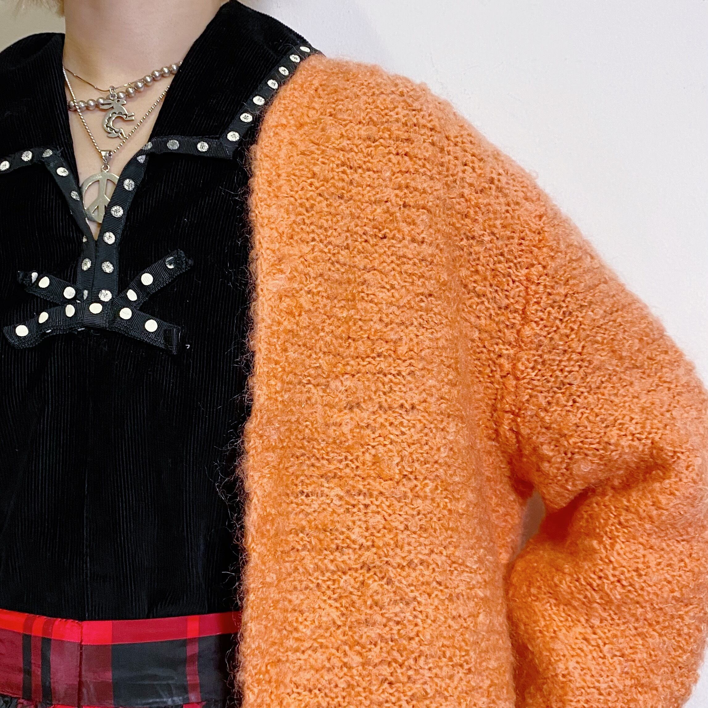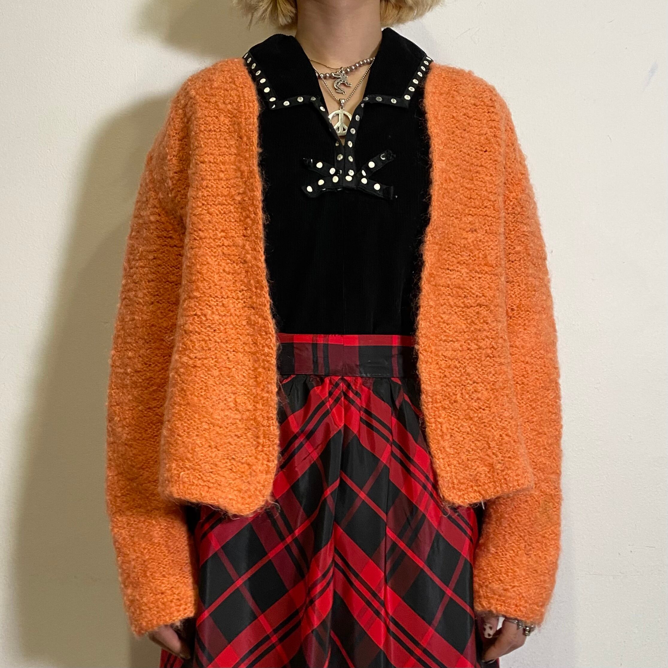 オレンジの色合いが可愛い、60年代のニットカーディガンです。