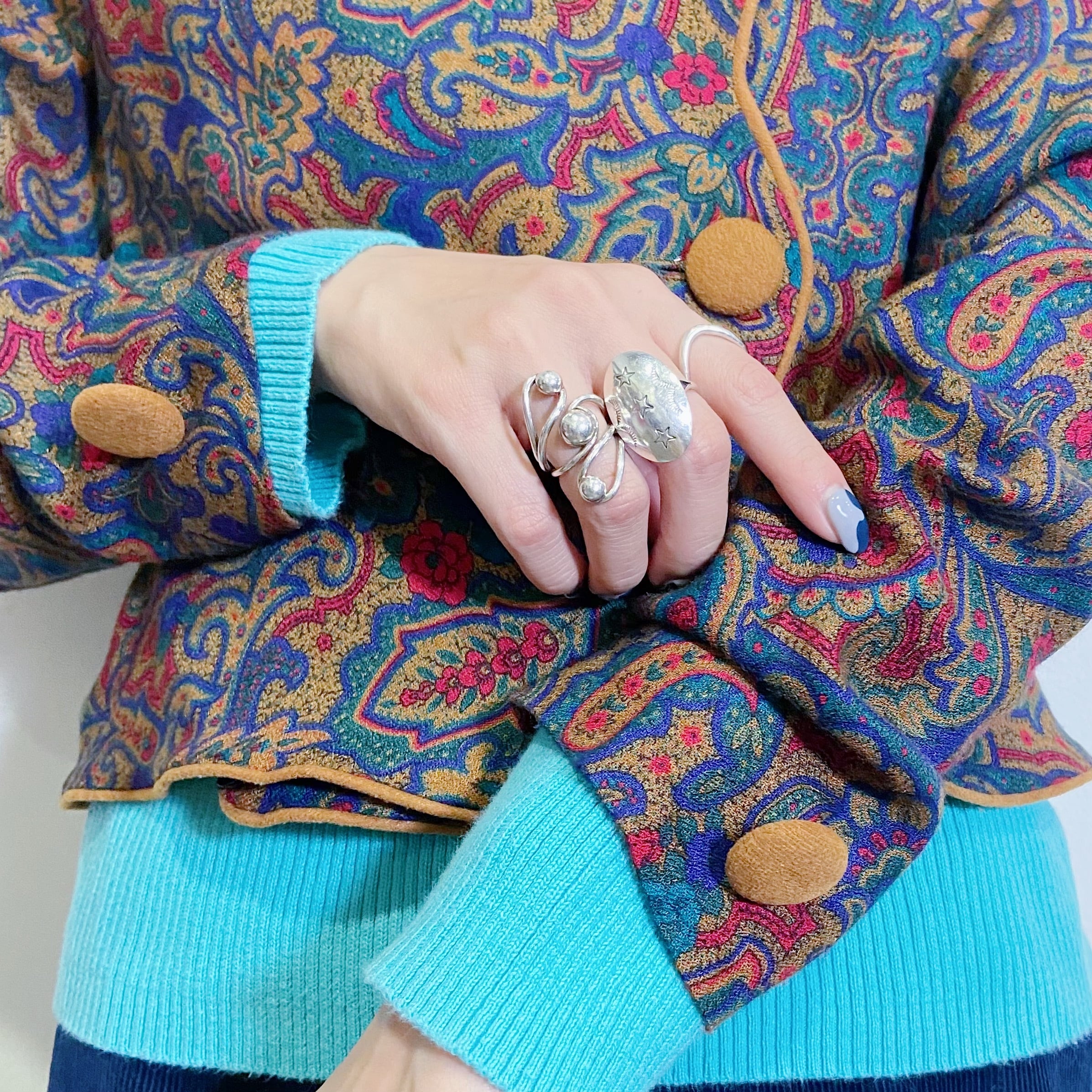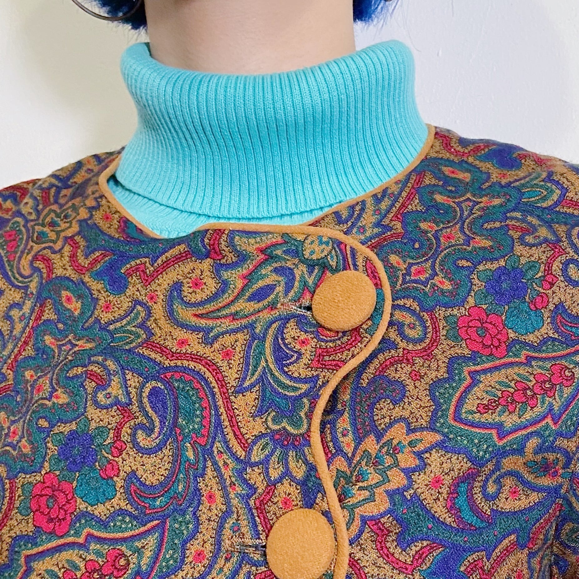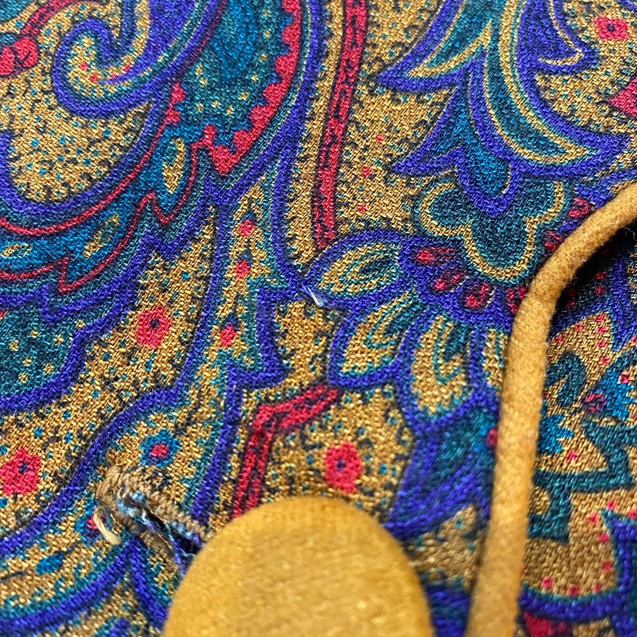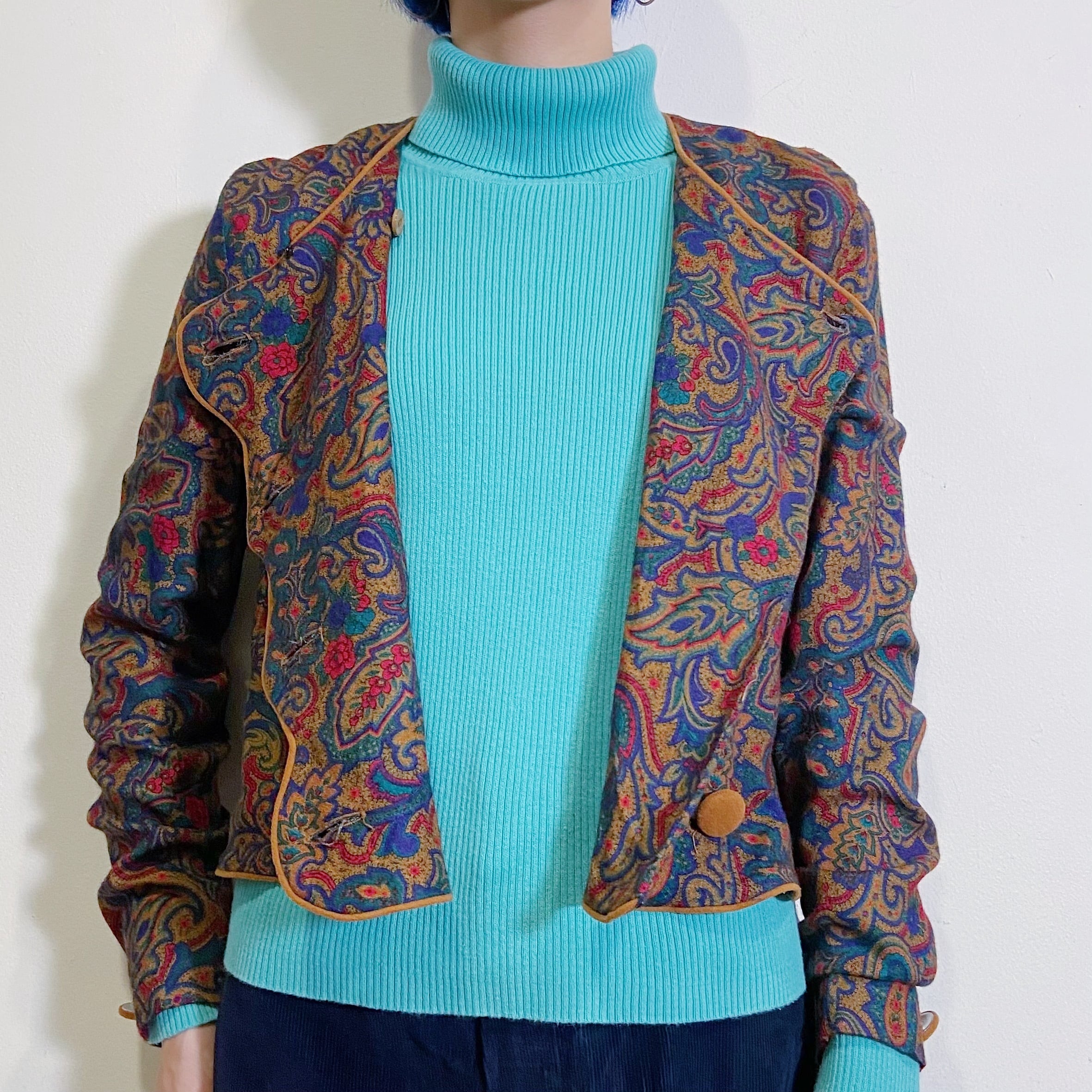 ブラウン・ネイビー・レッドの色合いのペイズリー柄がとても素敵な、80年代のトップスです。
