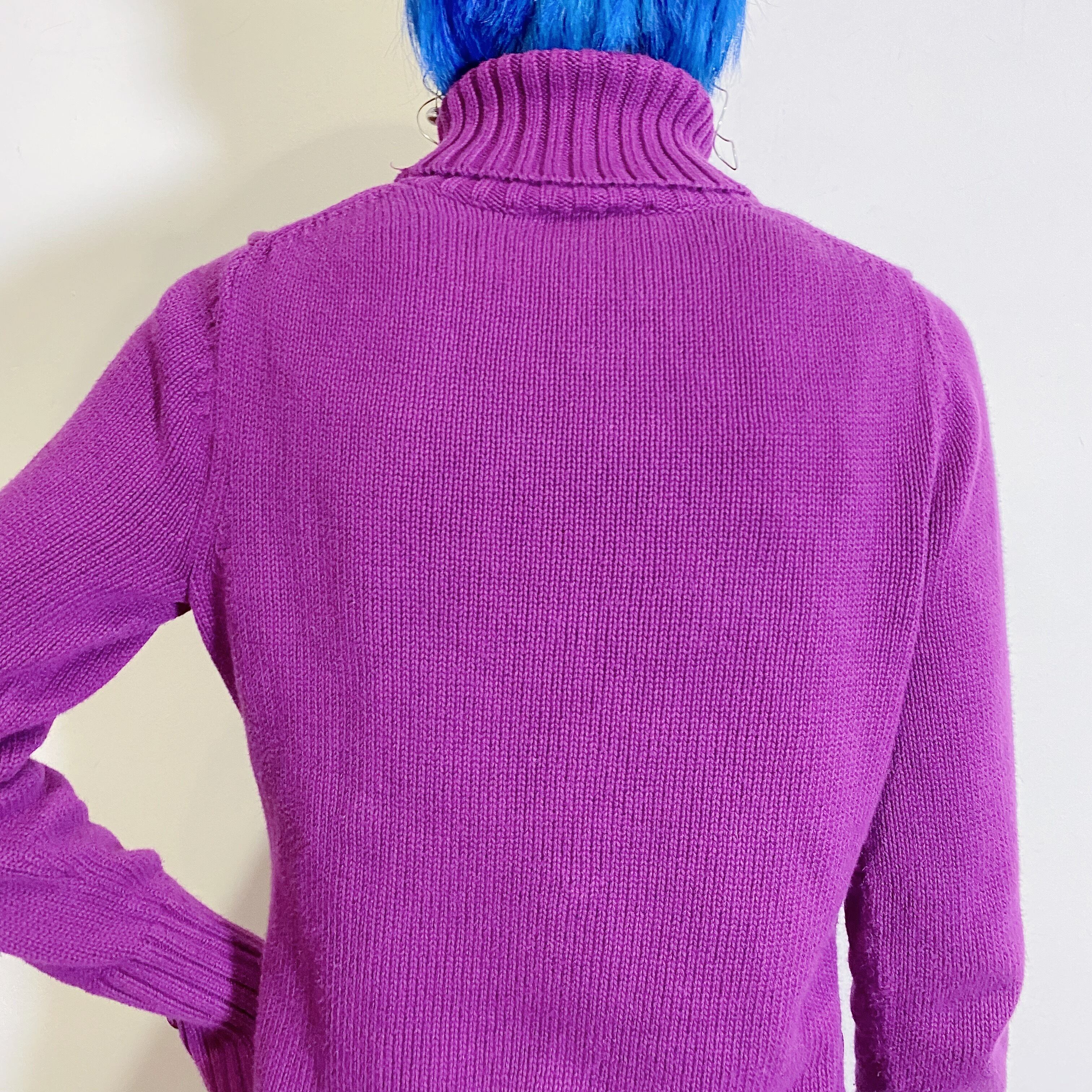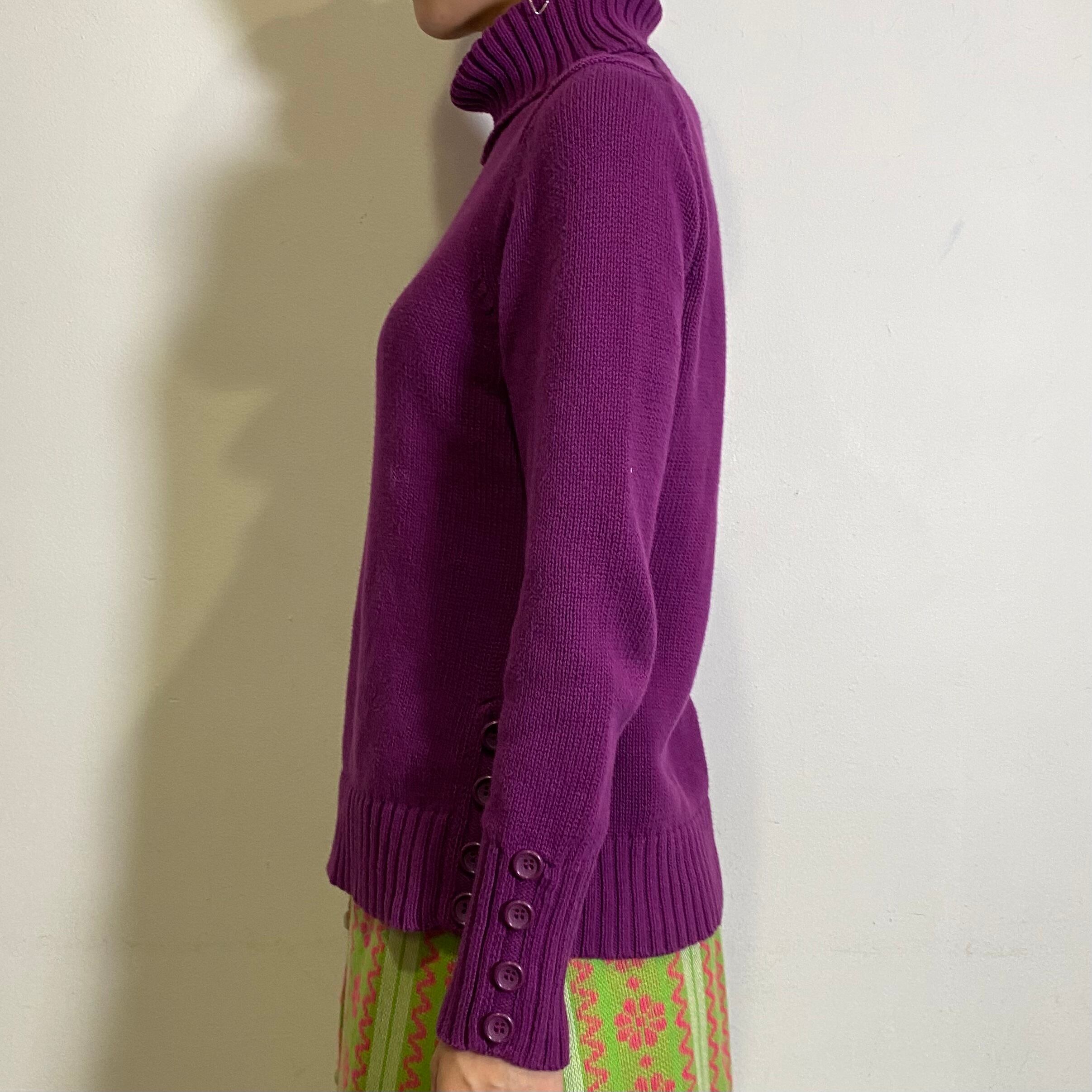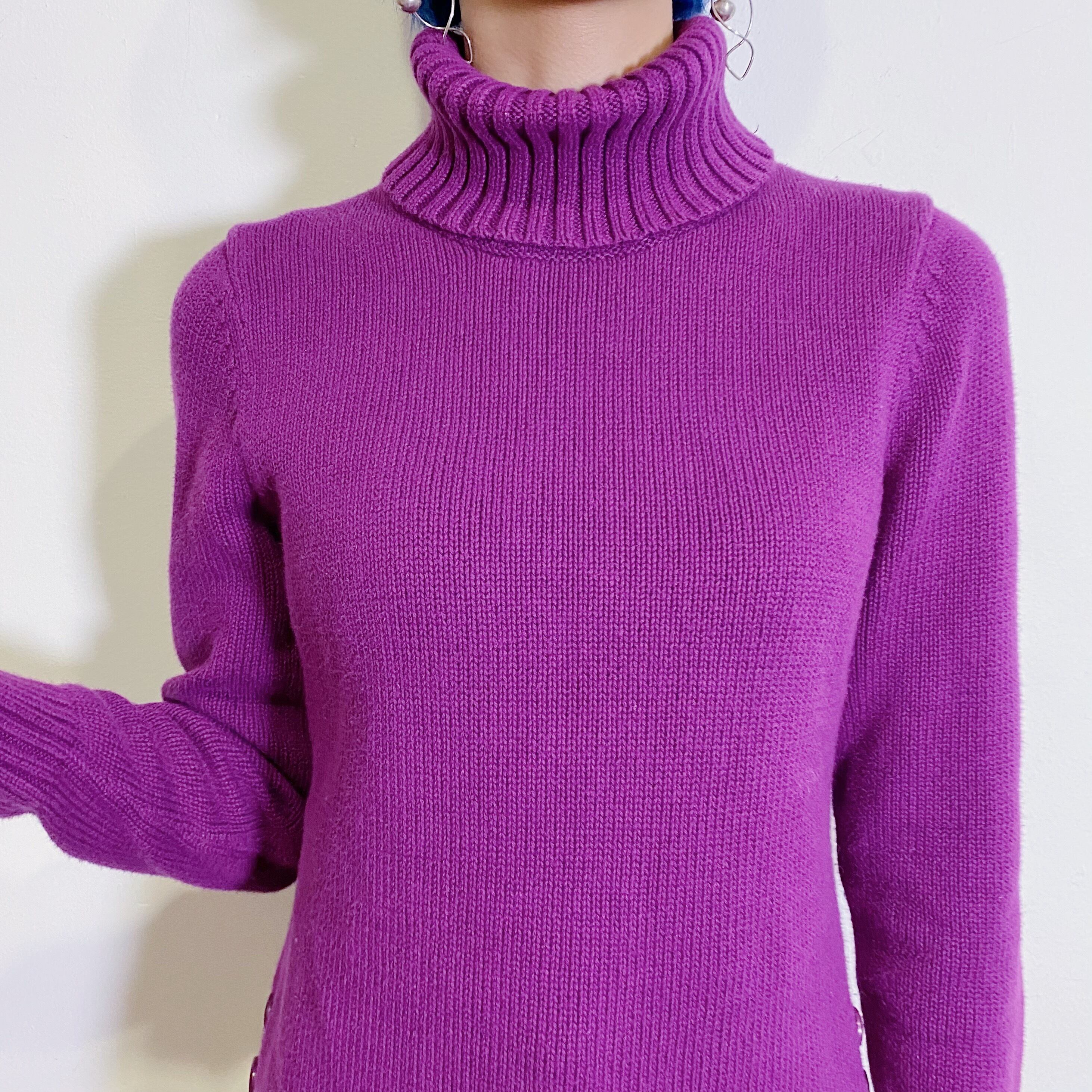 鮮やかなパープルカラーが可愛い、コットン素材のハイネックトップです。
