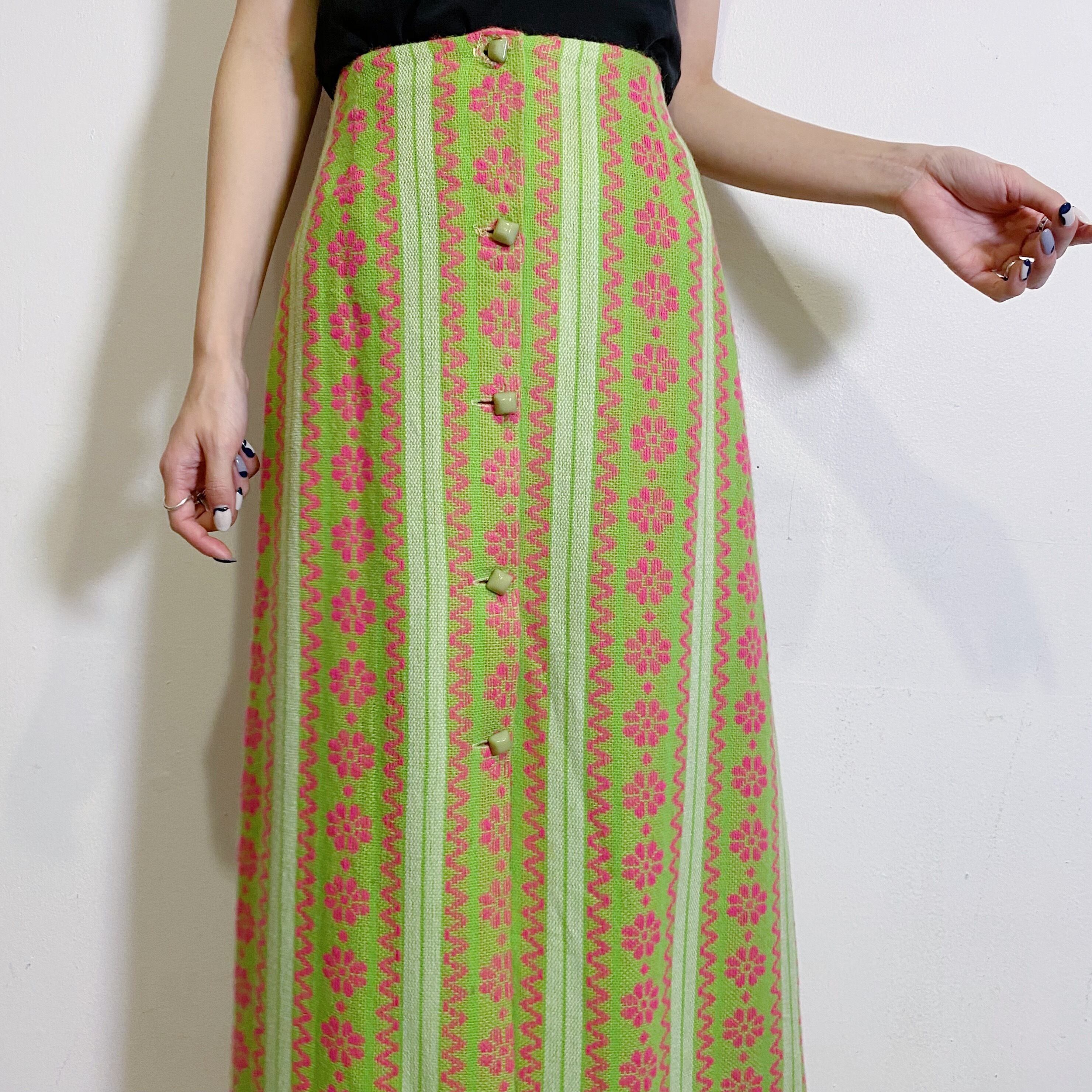 黄緑とピンクの組み合わせが可愛い、70年代のロングスカートです。