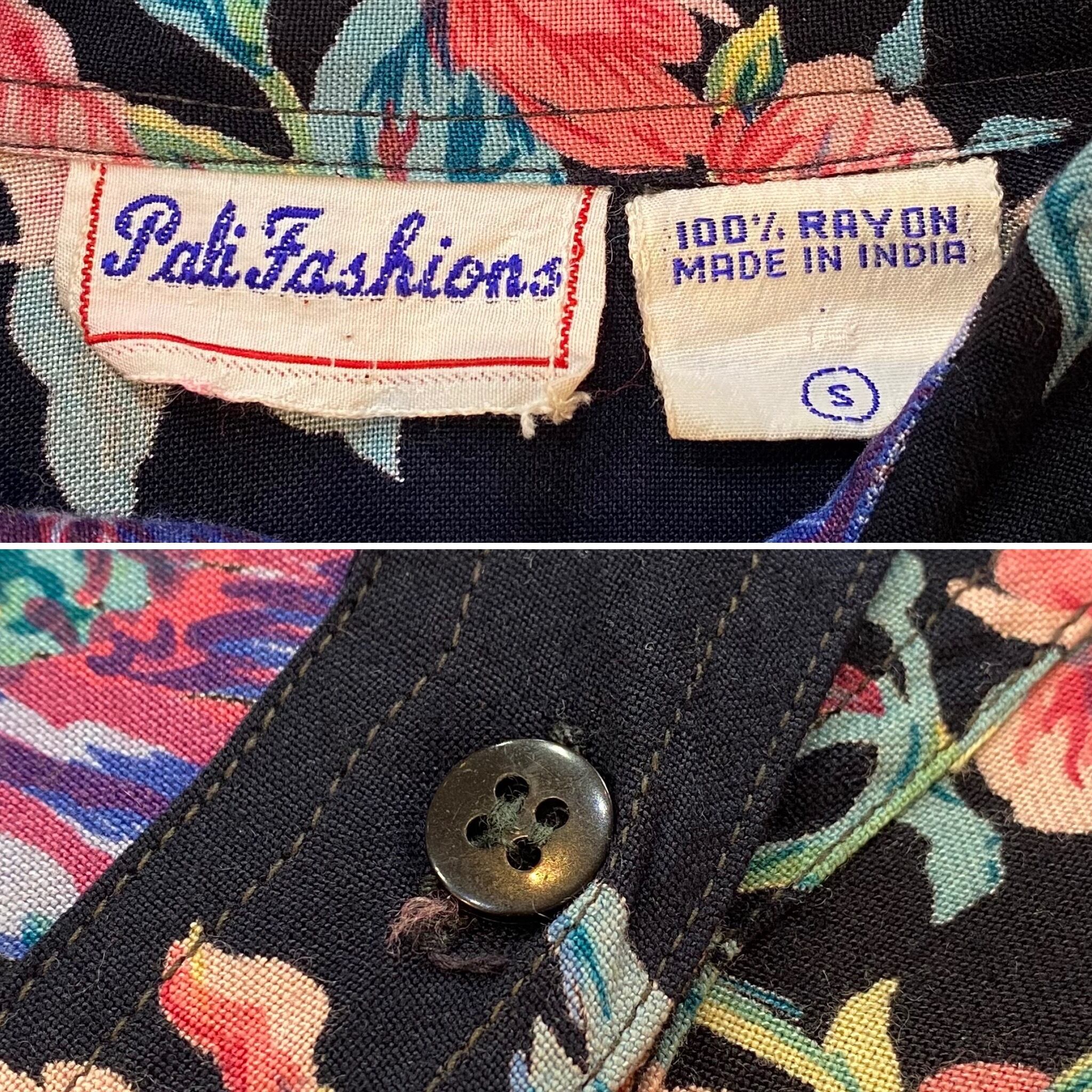80s black flower rayon shirt pullover