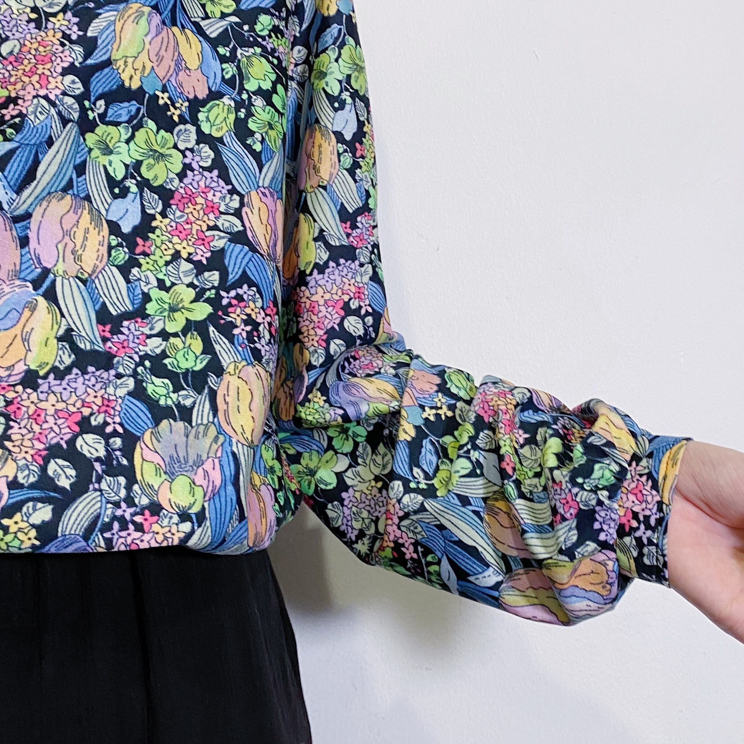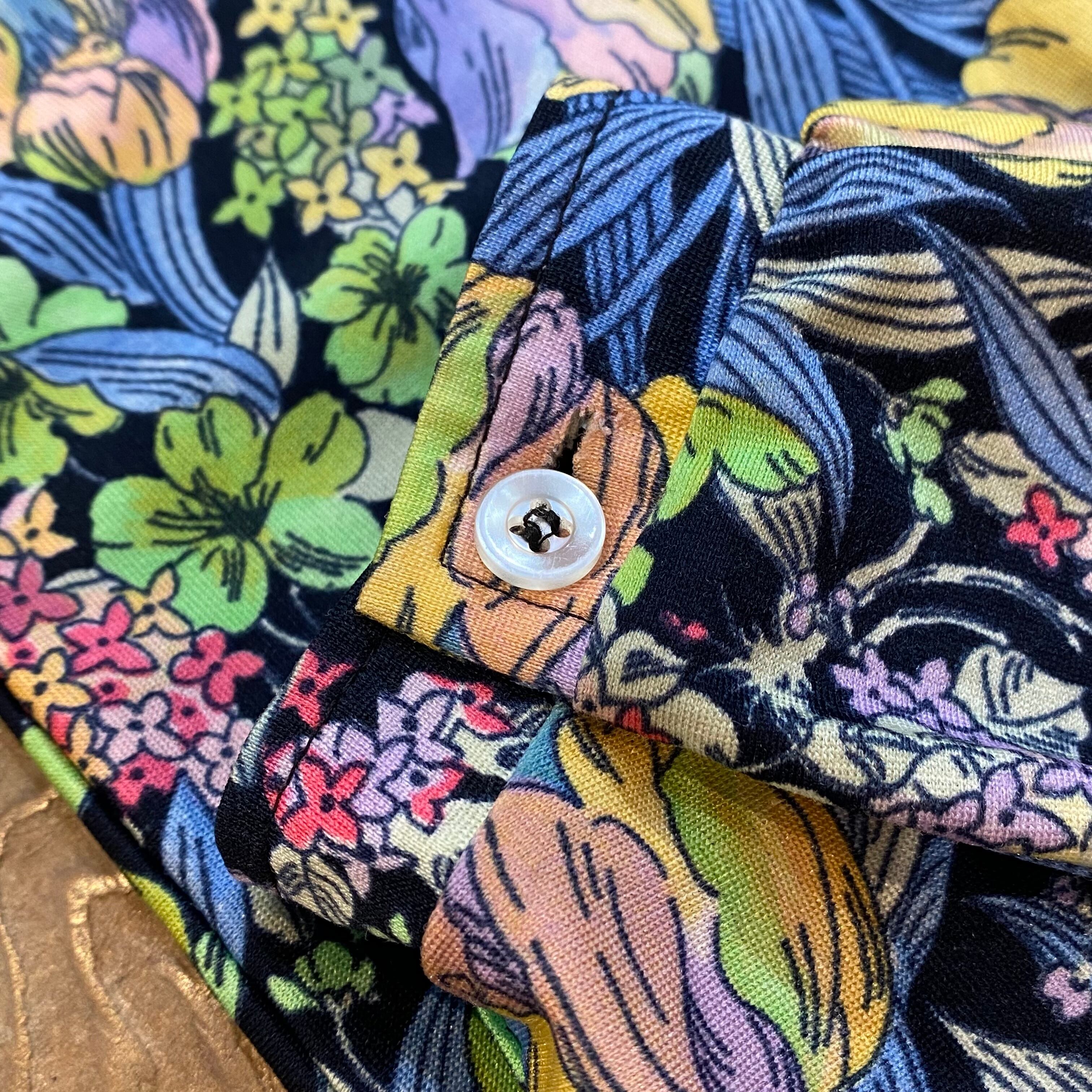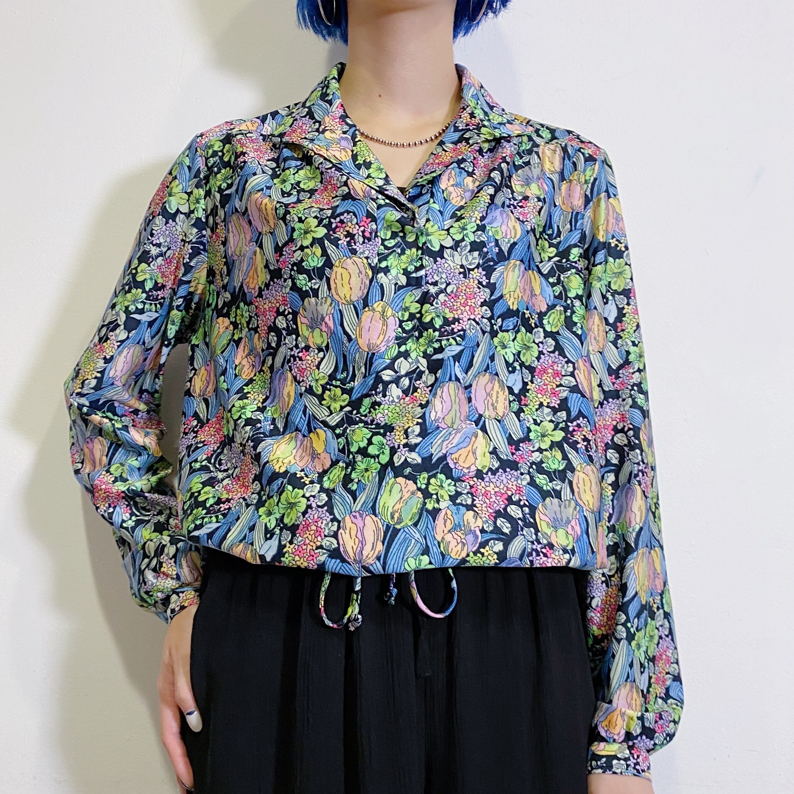 カラフルで色鮮やかな花々が素敵な、70年代のシャツプルオーバーです。