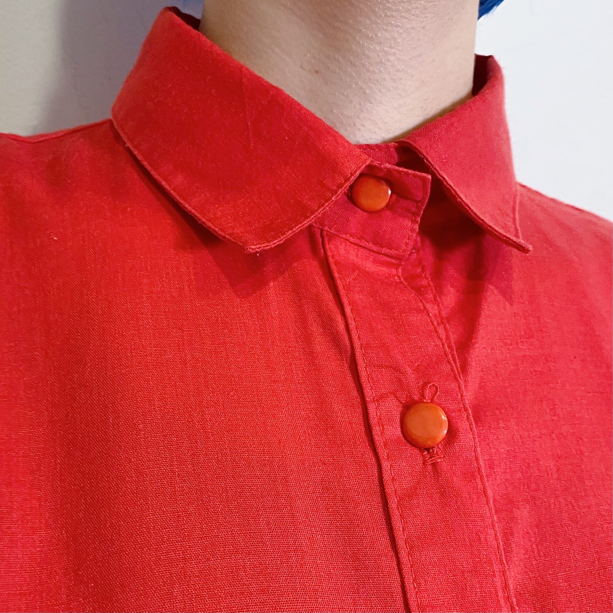 ぱっきりレッドが可愛い、80年代のシャツワンピースです。