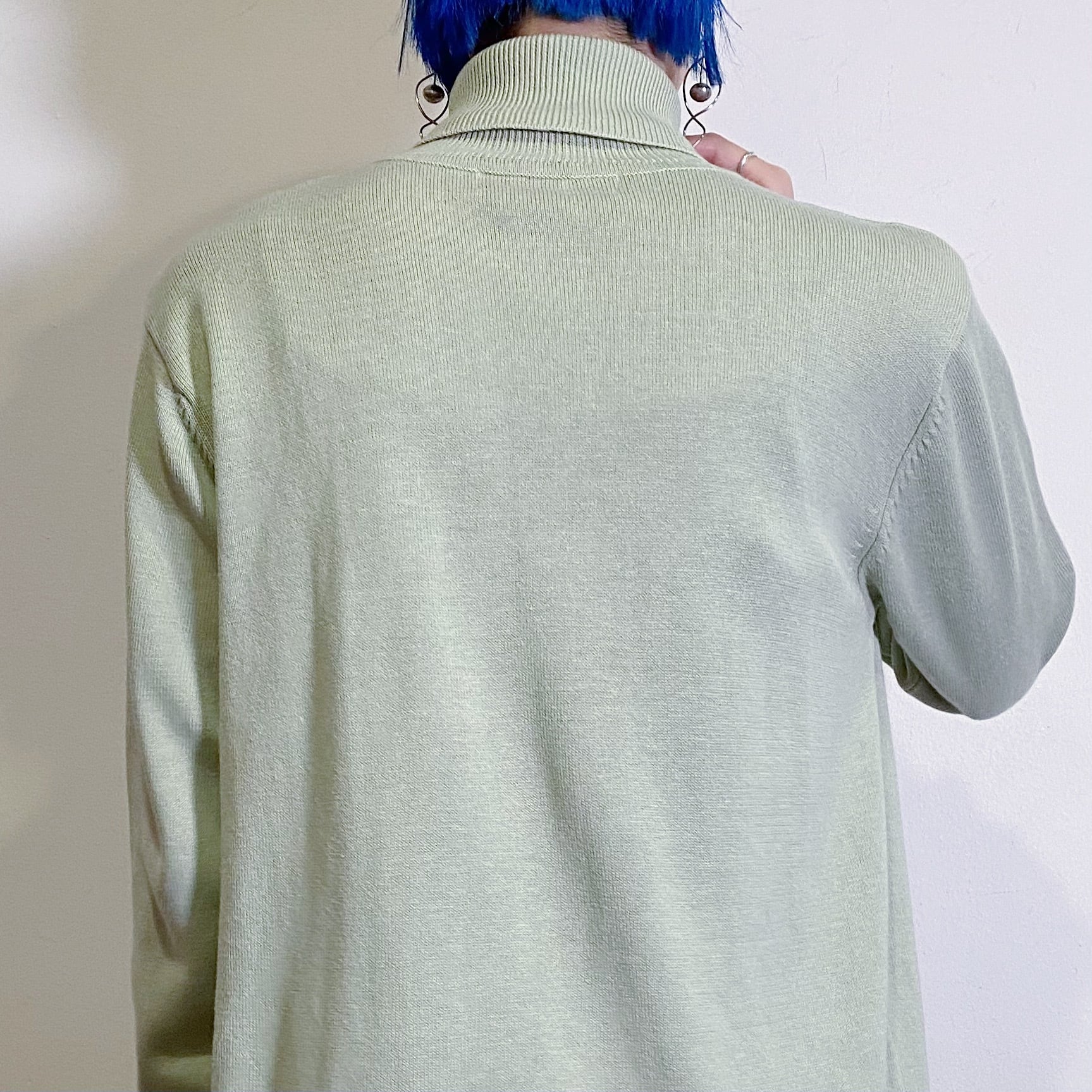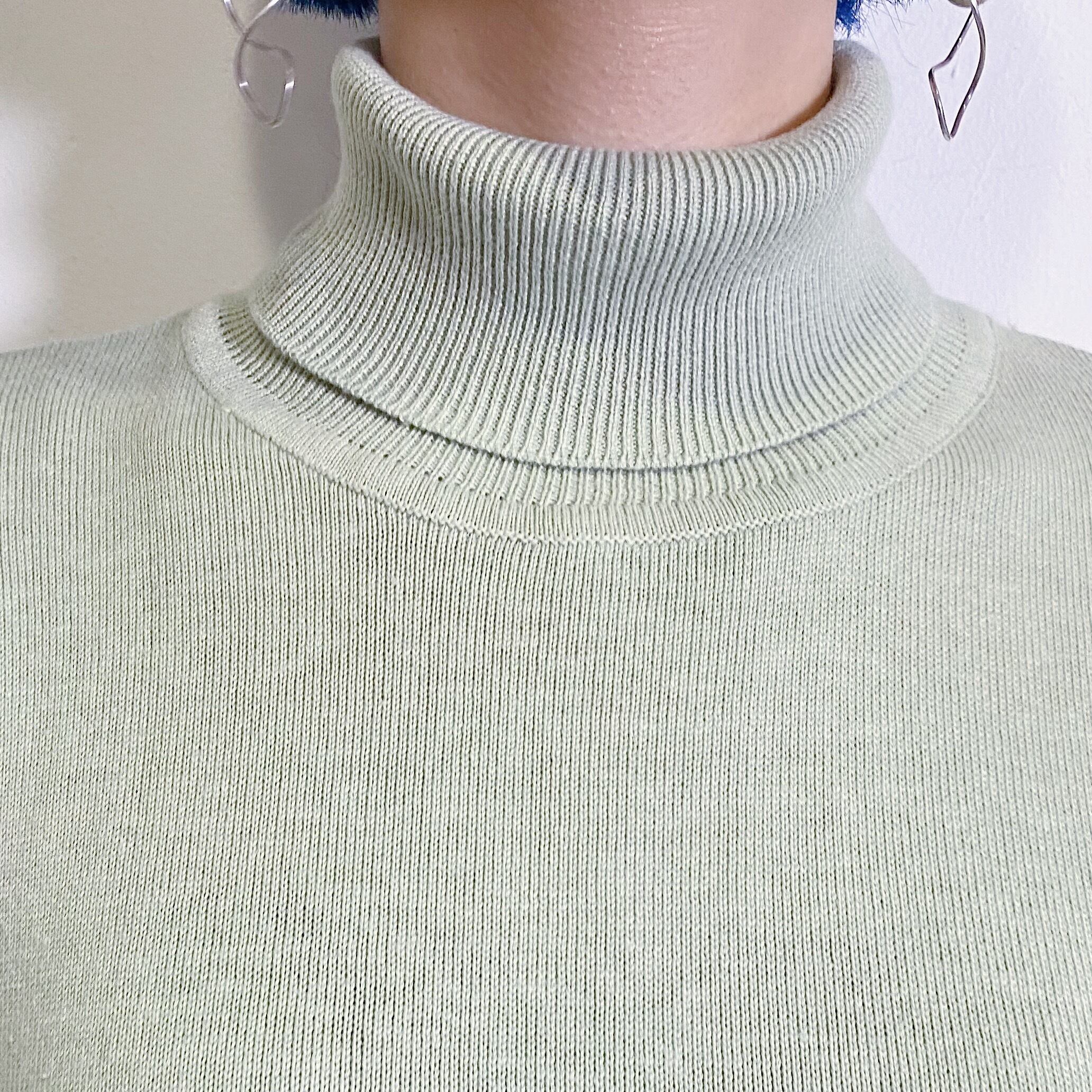 スモーキーなペールグリーンが可愛い、ハイネックトップです。