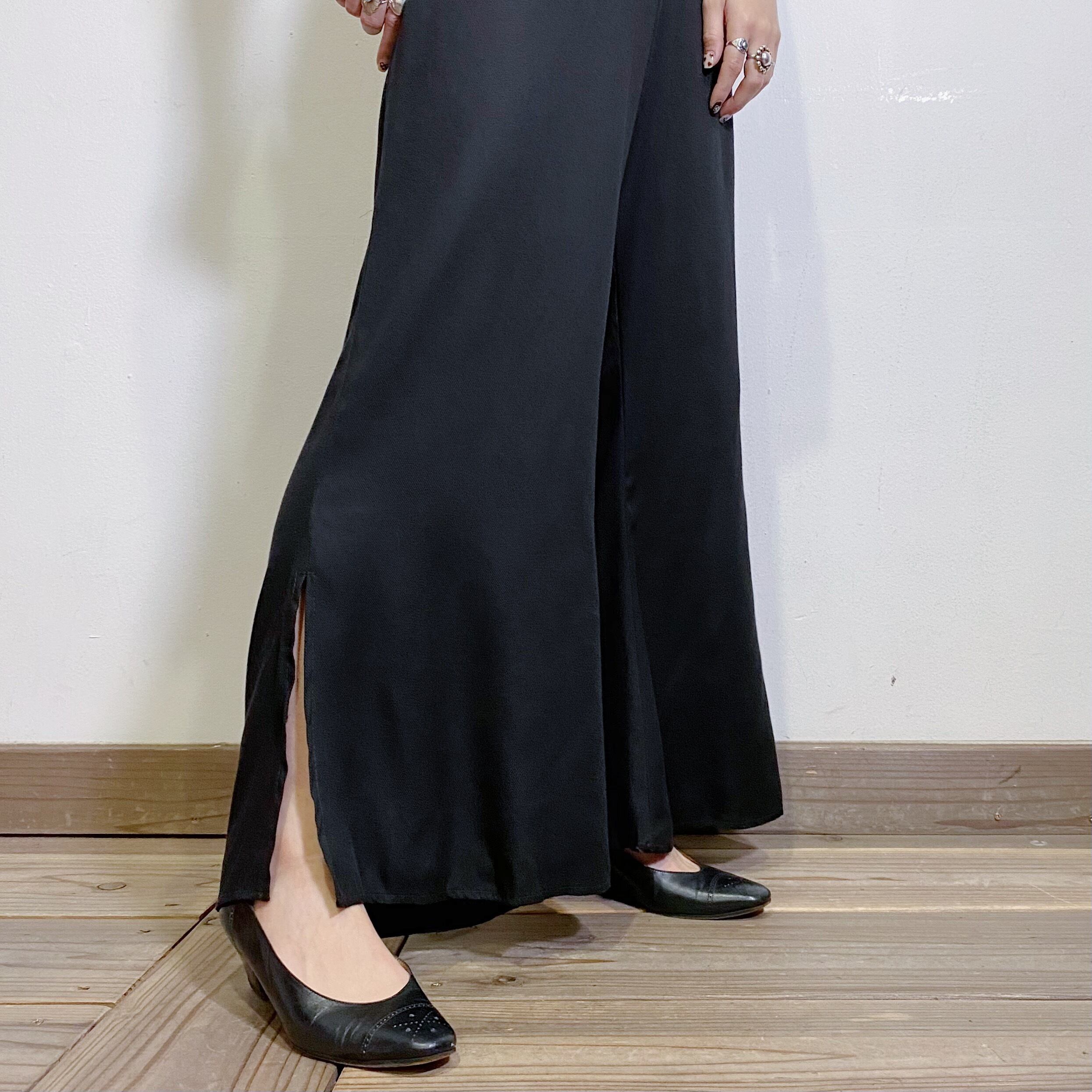 シンプルで使い勝手がいい、ブラックカラーのワイドパンツです。