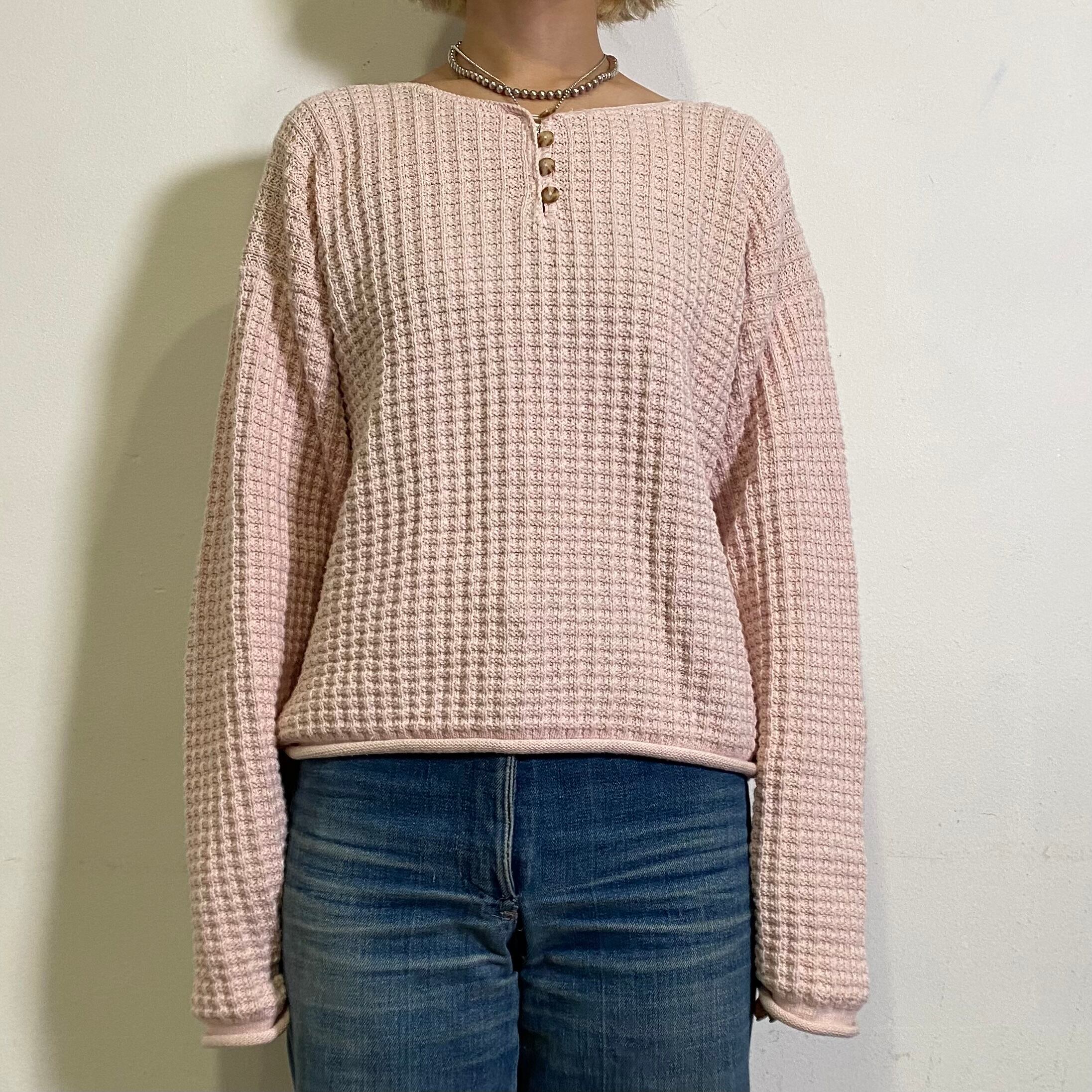 ベビーピンクの色合いが可愛い、コットンニットセーターです。