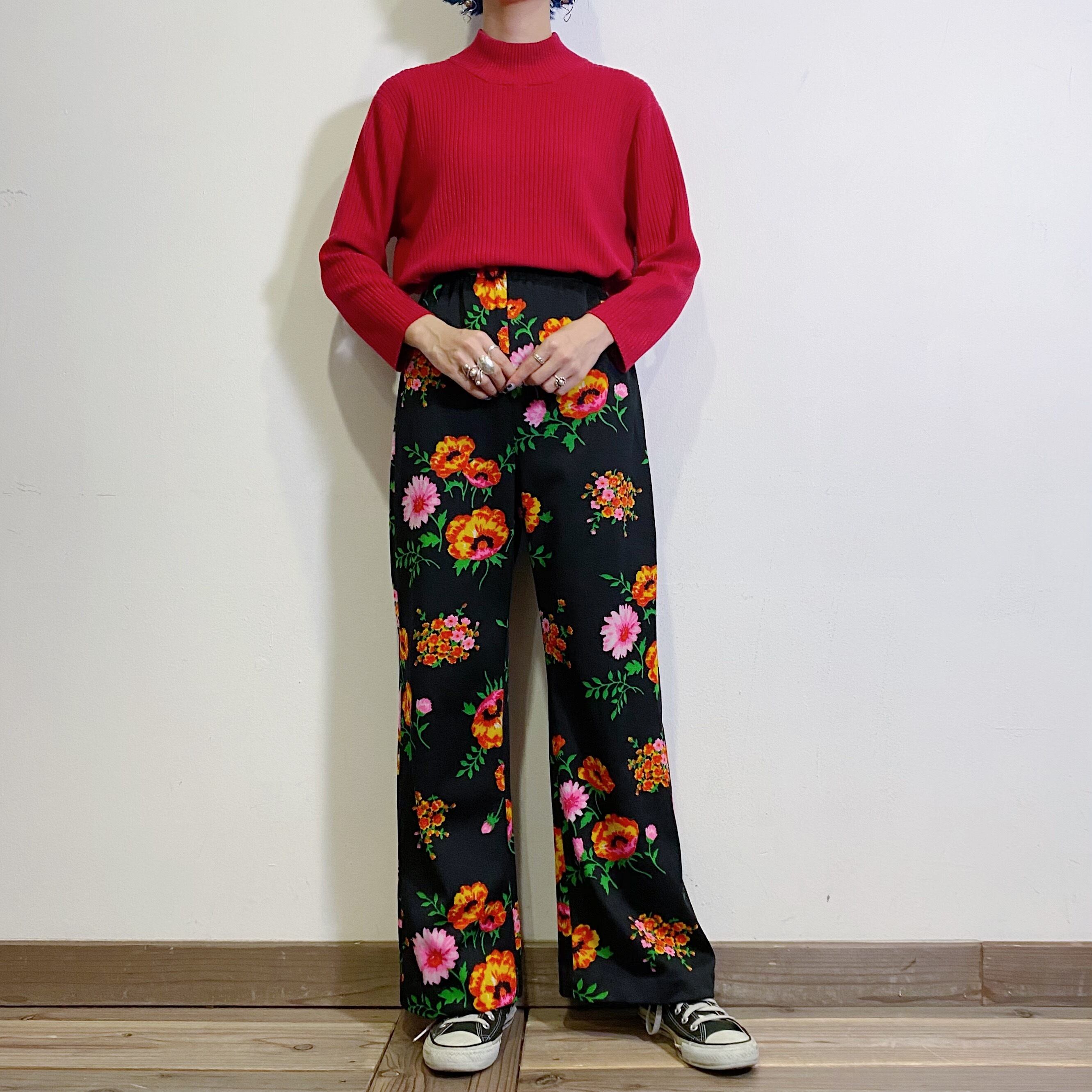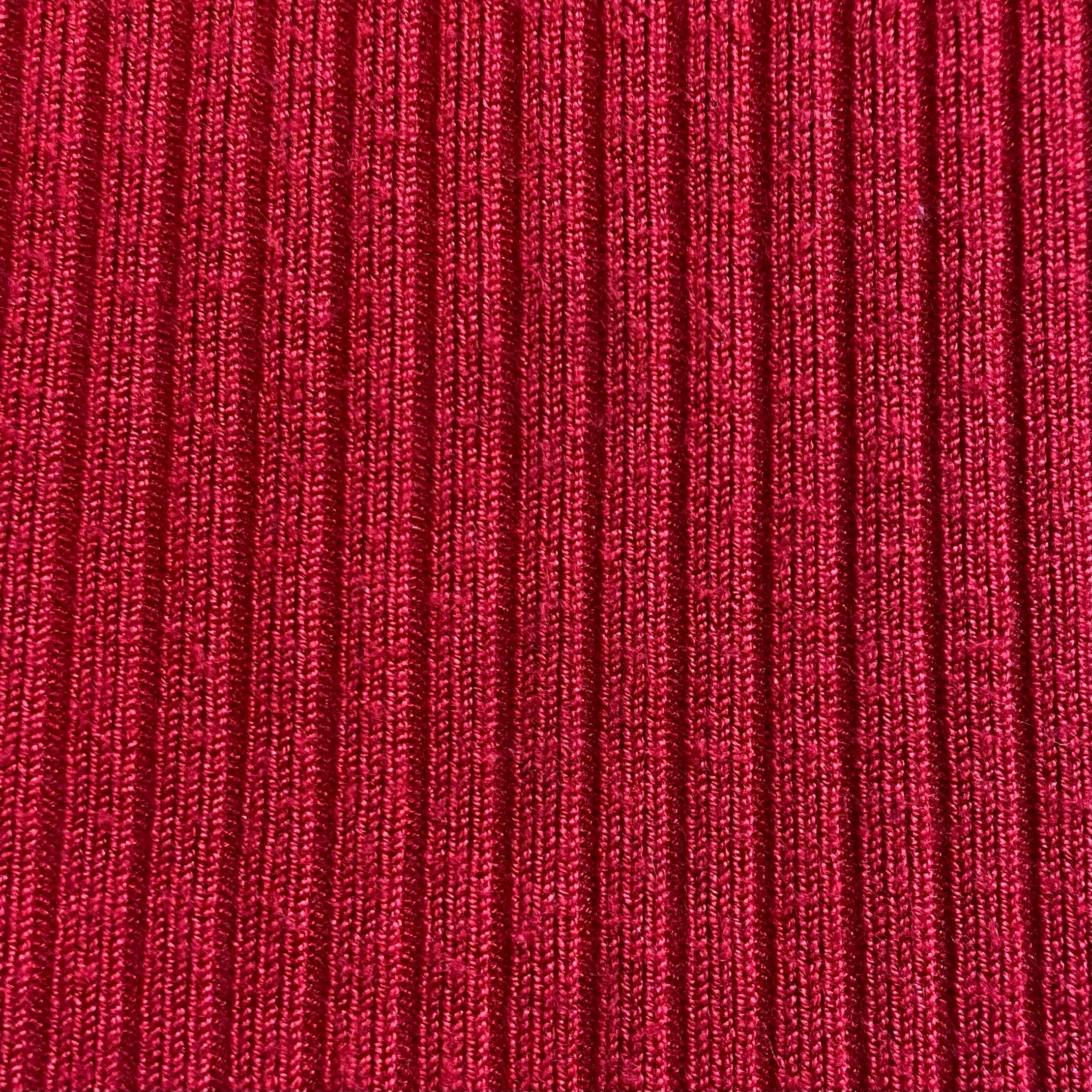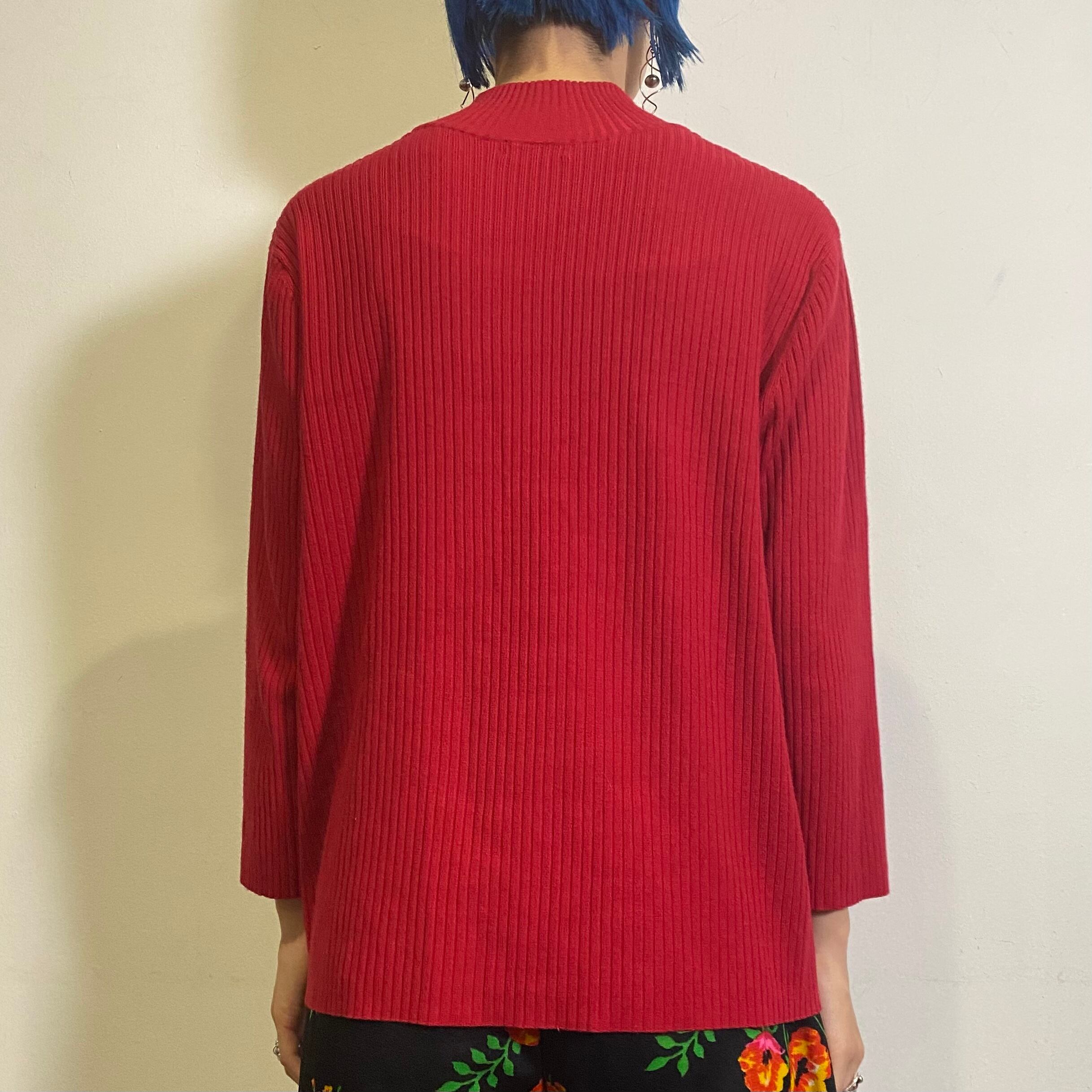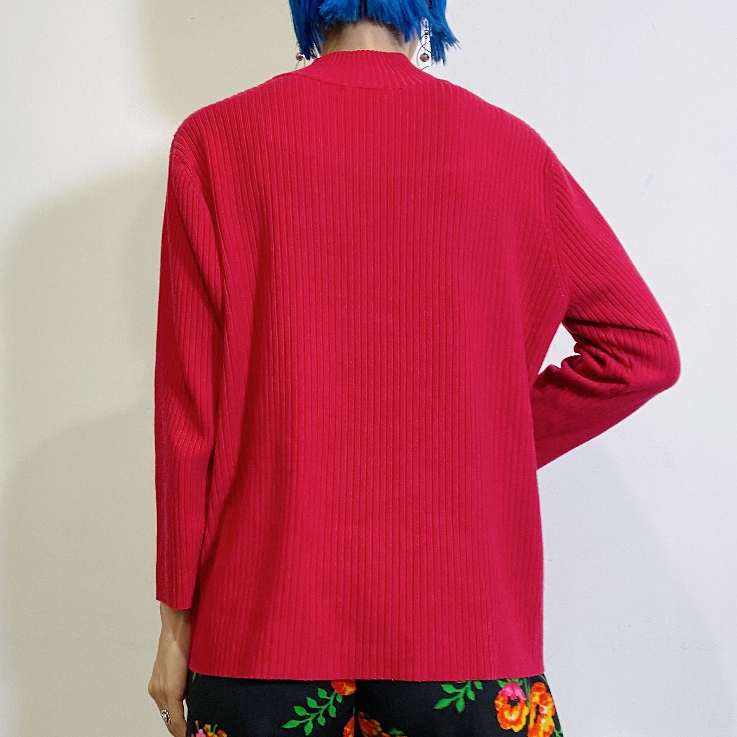 鮮やかなレッドカラーが目を惹く、ハイネックトップです。