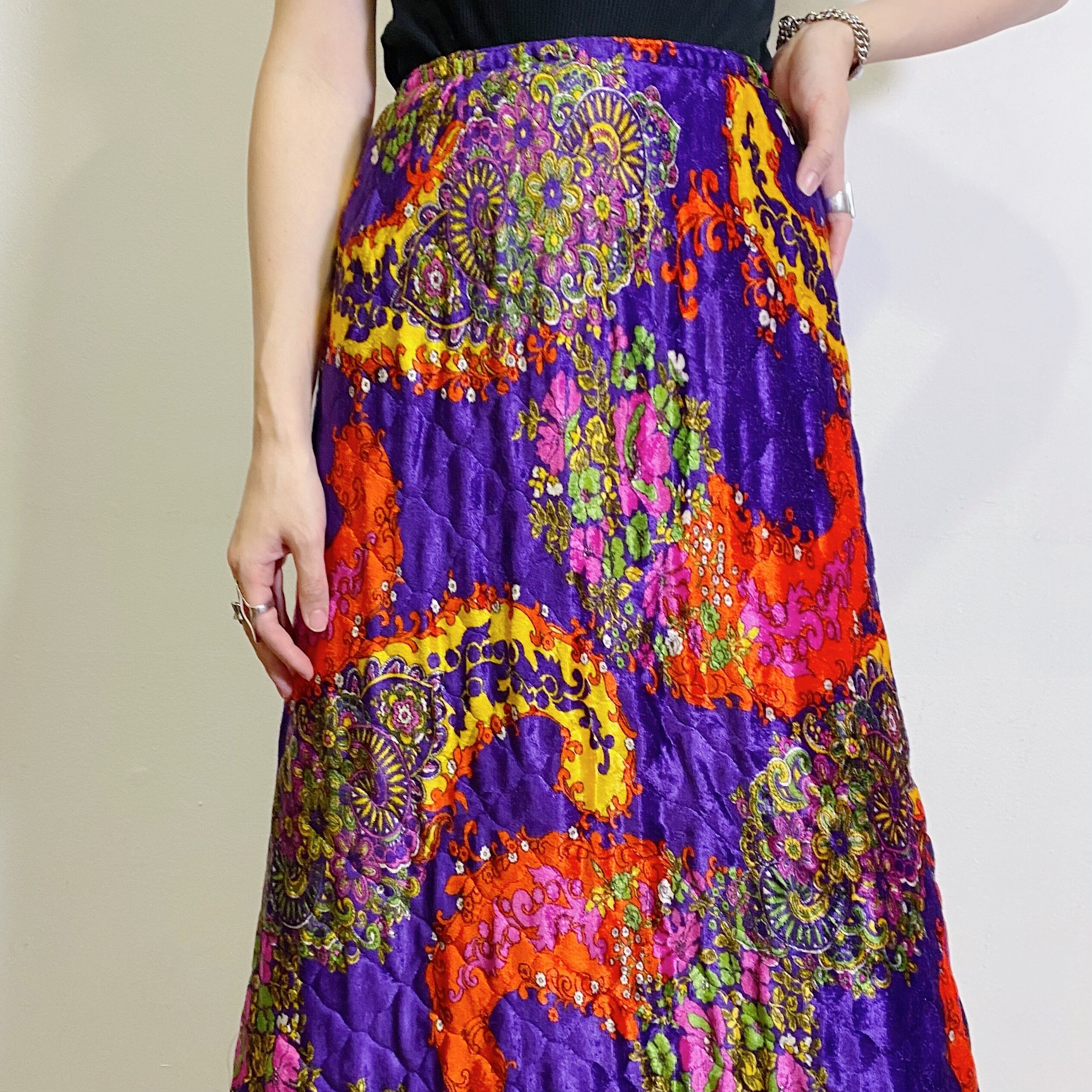 大きなペイズリー柄が可愛い、60~70年代のキルティングスカートです。