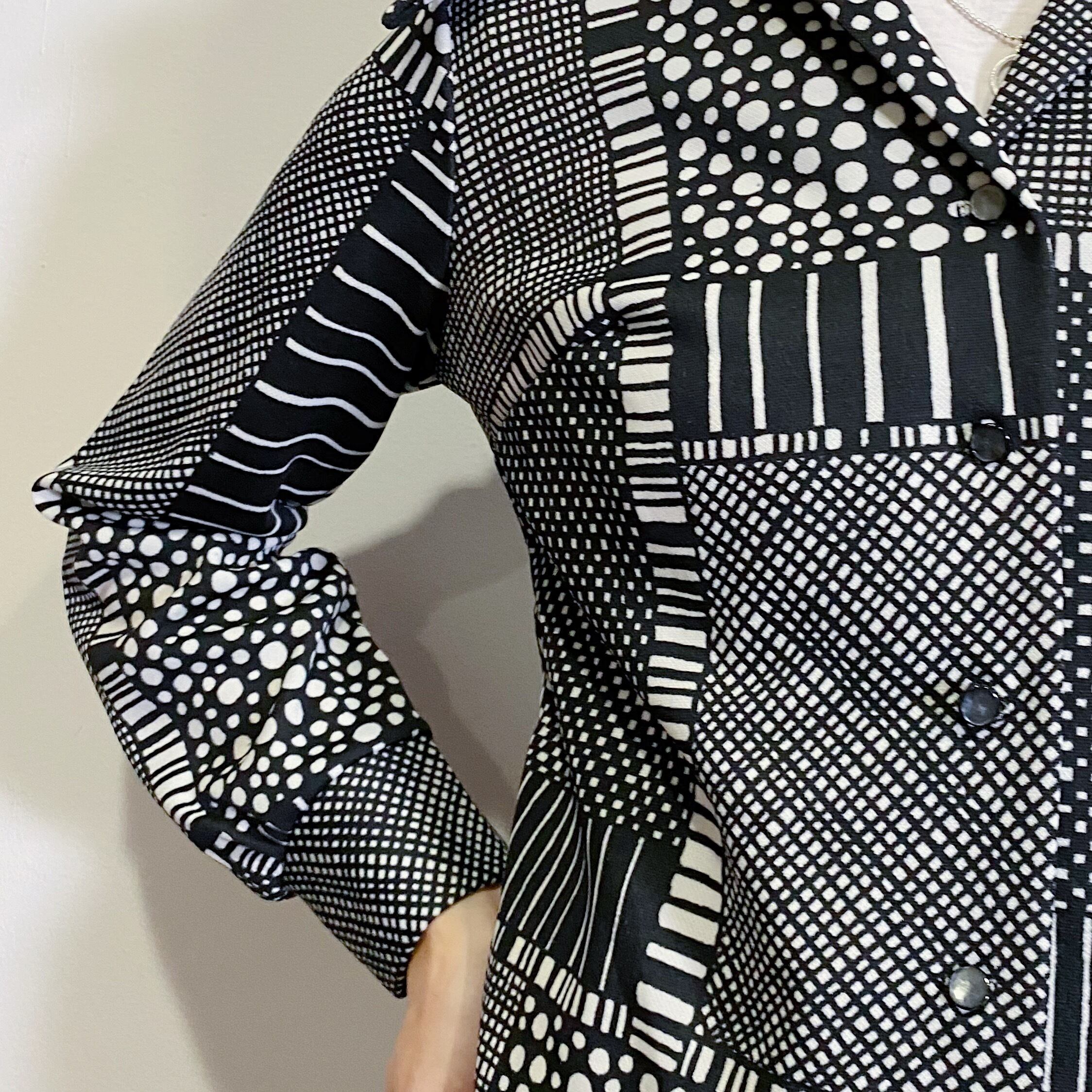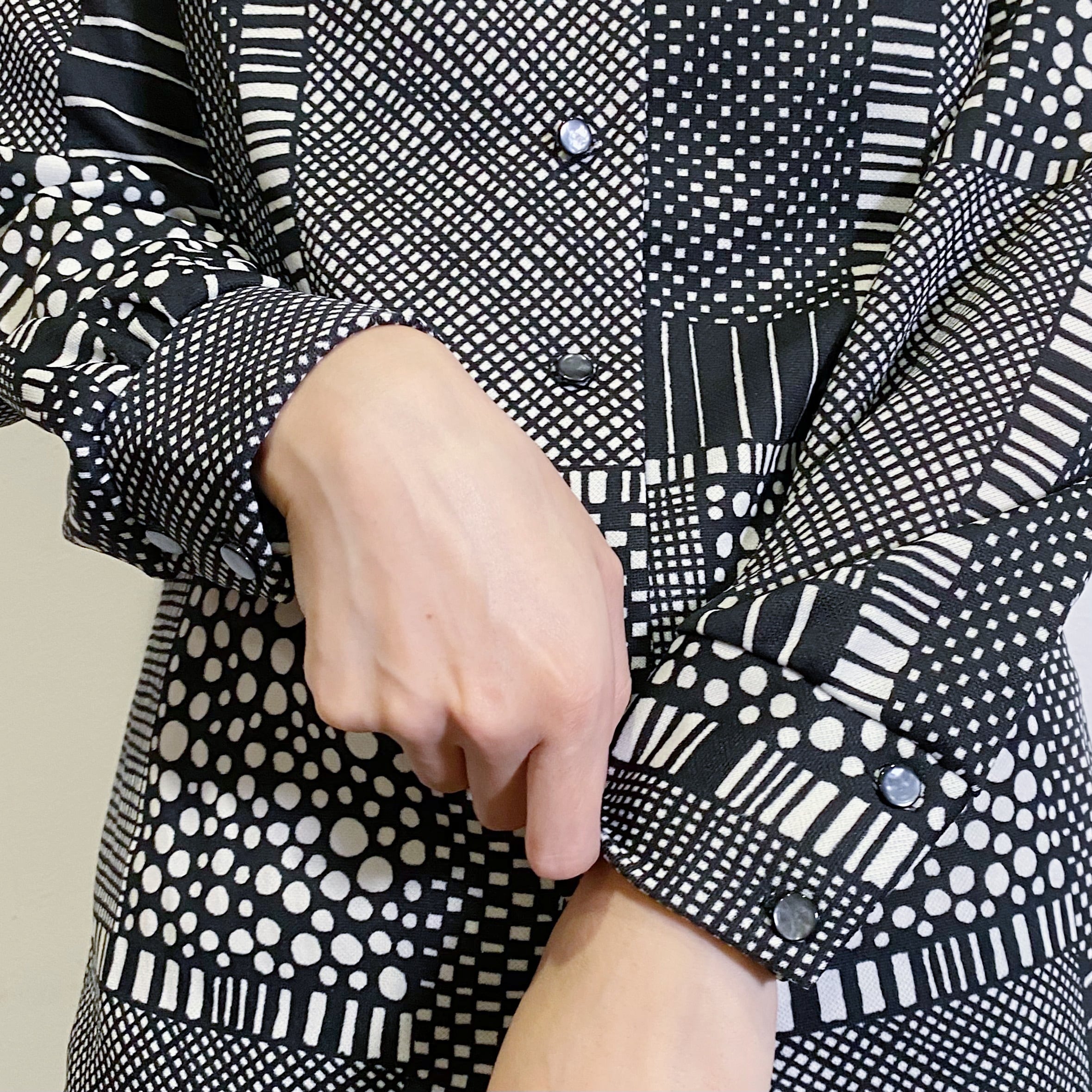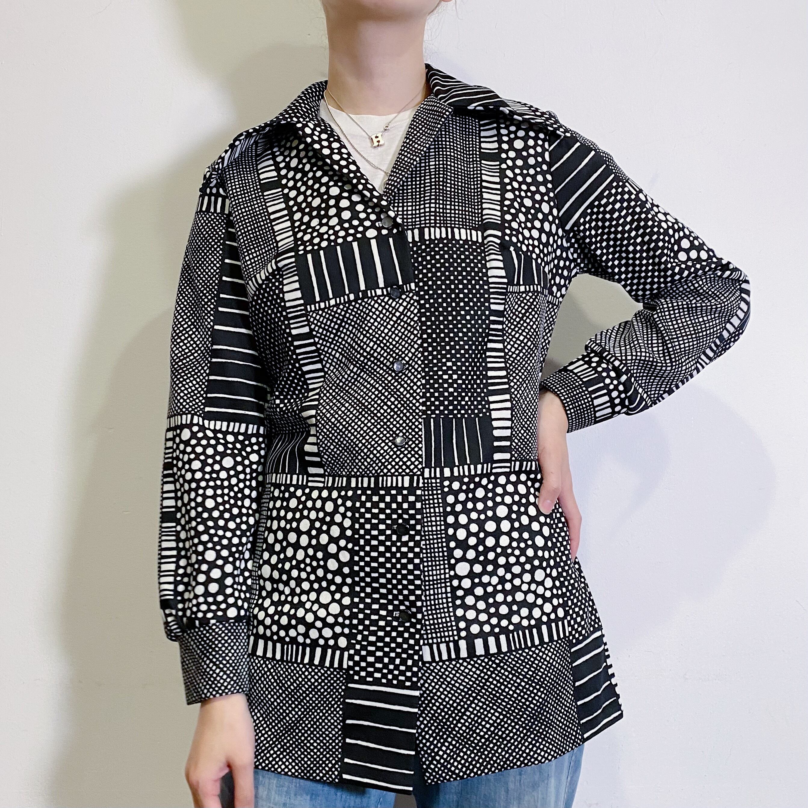 70s black and white patchwork printed long shirt