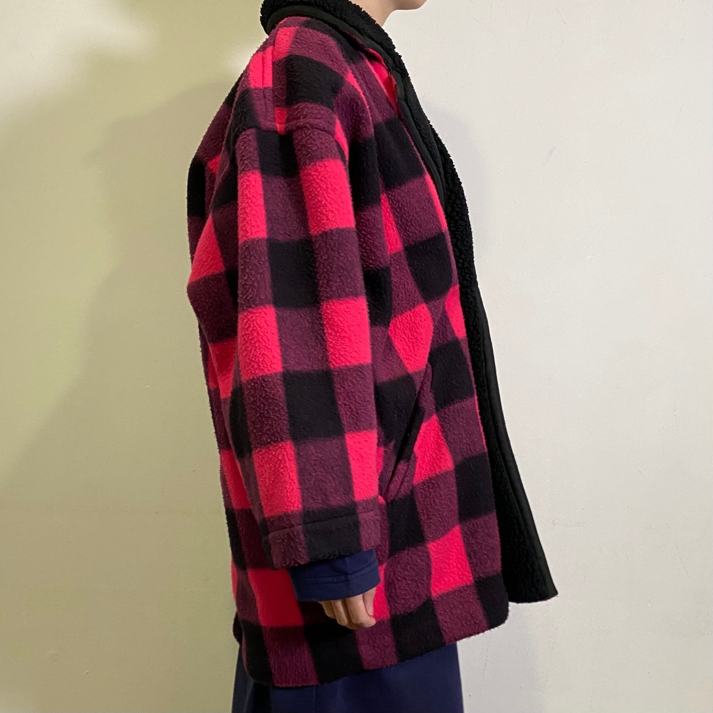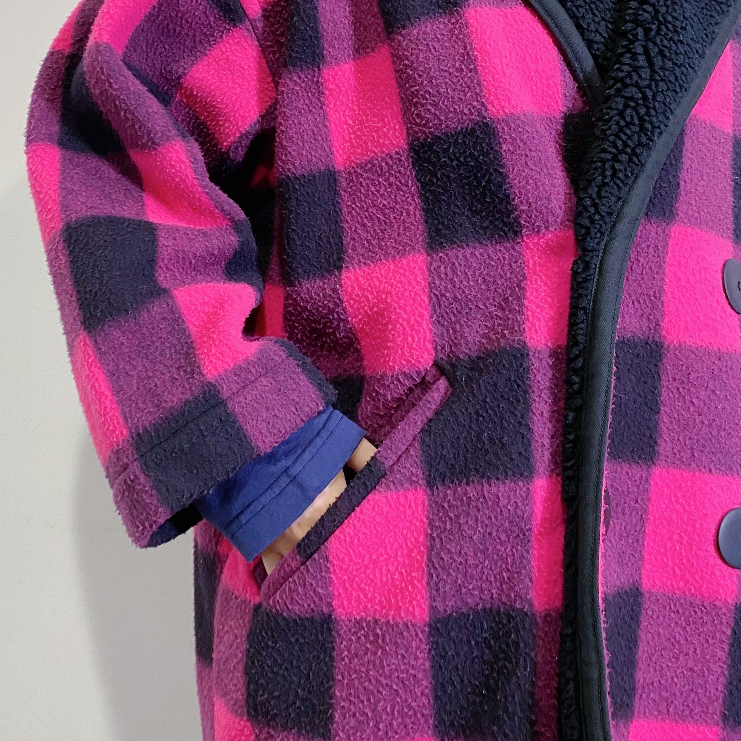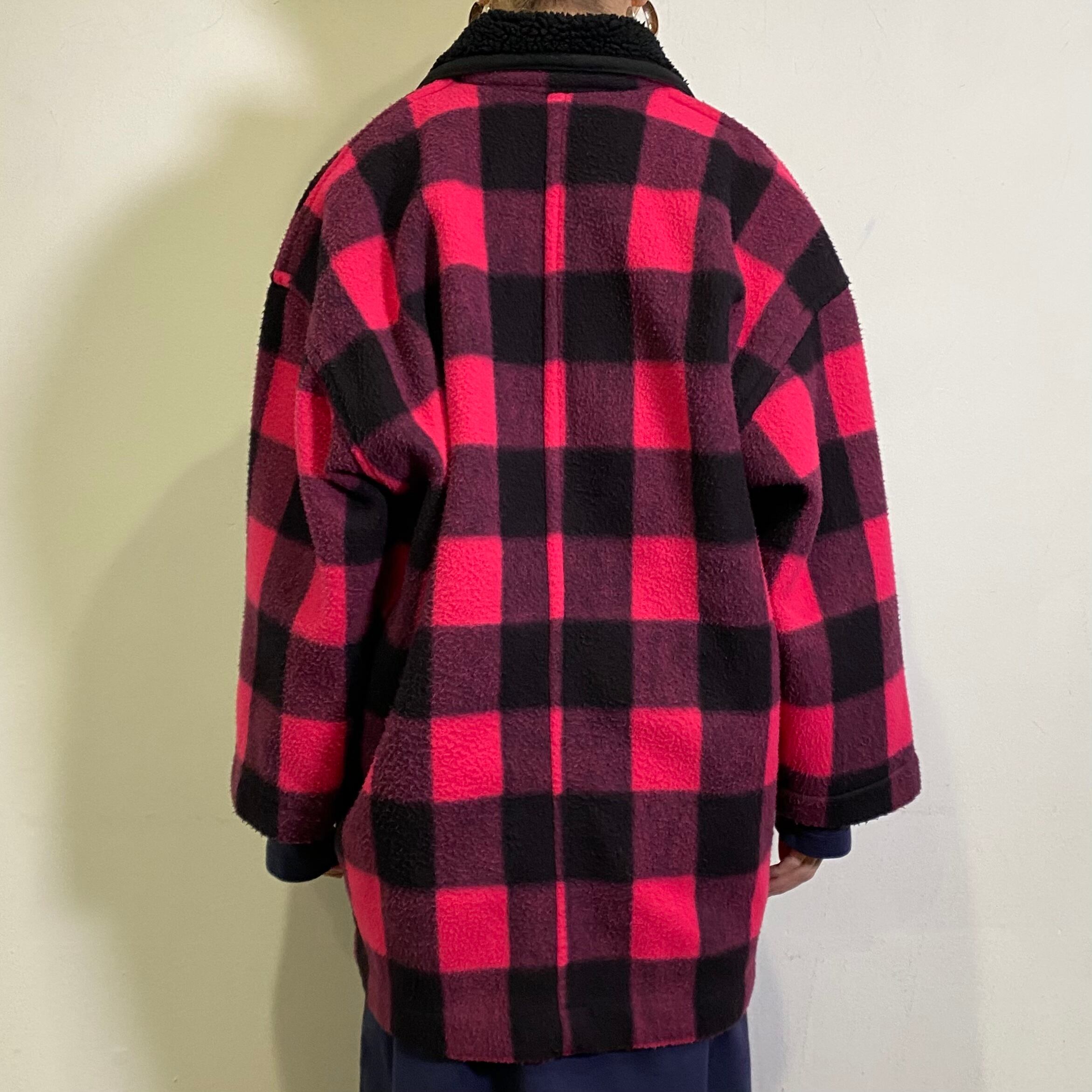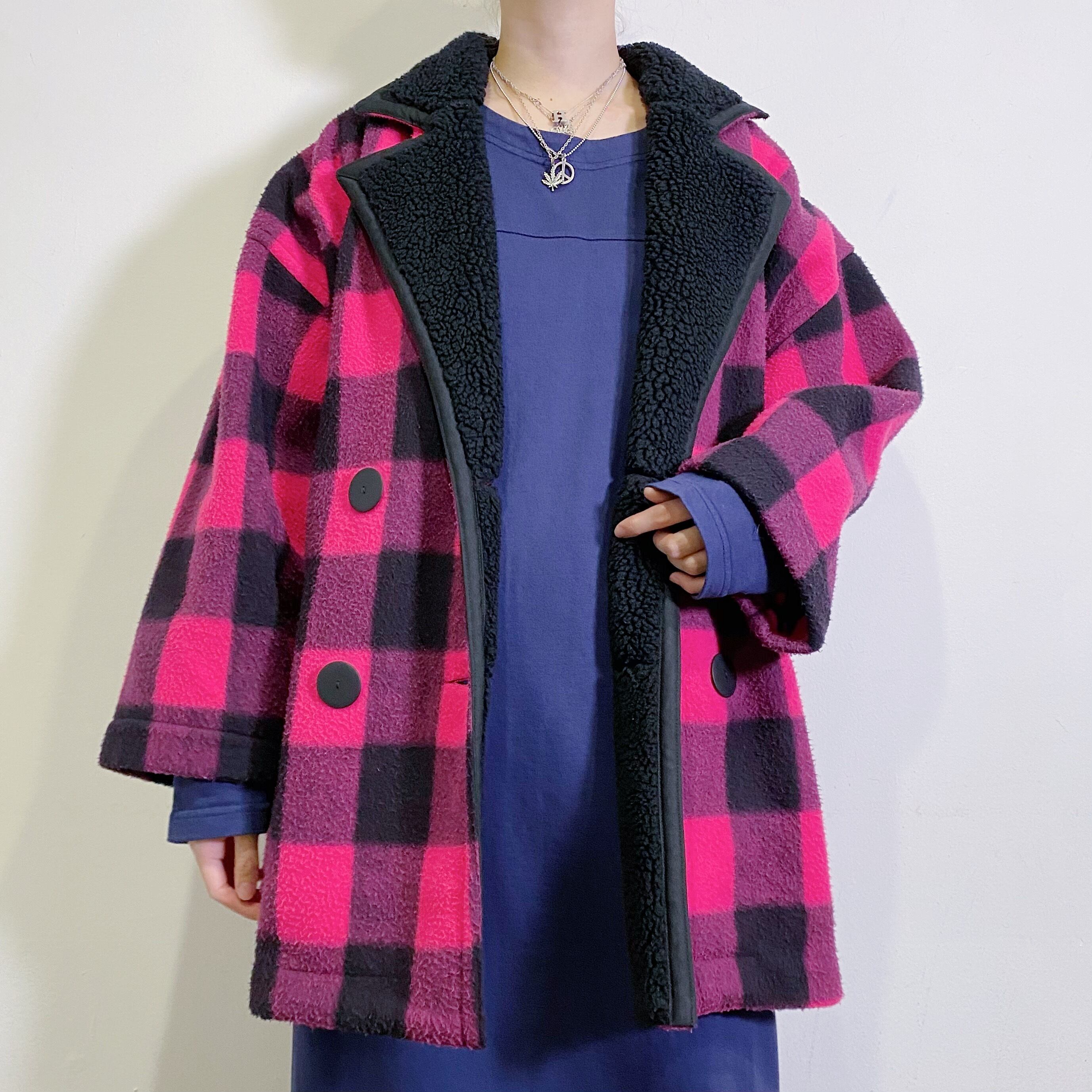ピンクと黒の組み合わせが可愛い、80年代のチェック柄コートです。