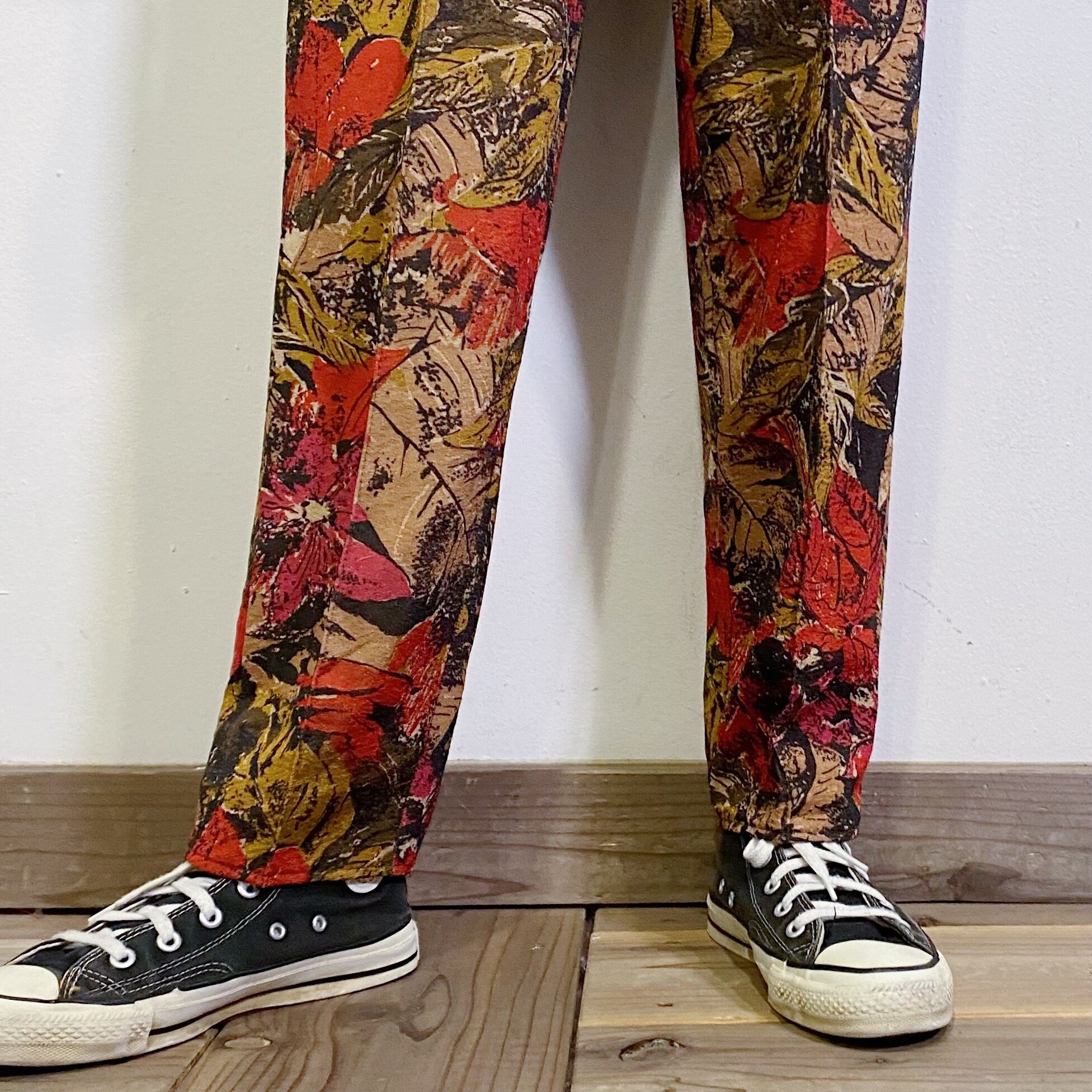アートのようなリーフモチーフ柄が素敵な、80年代のイージーパンツです。