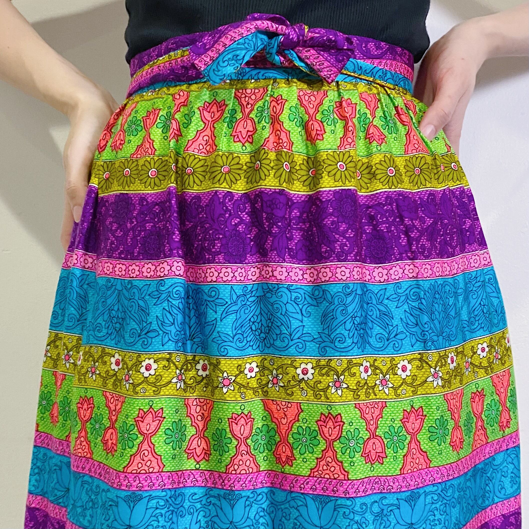 サイケデリックなテキスタイルが可愛い、70年代のスカートです。