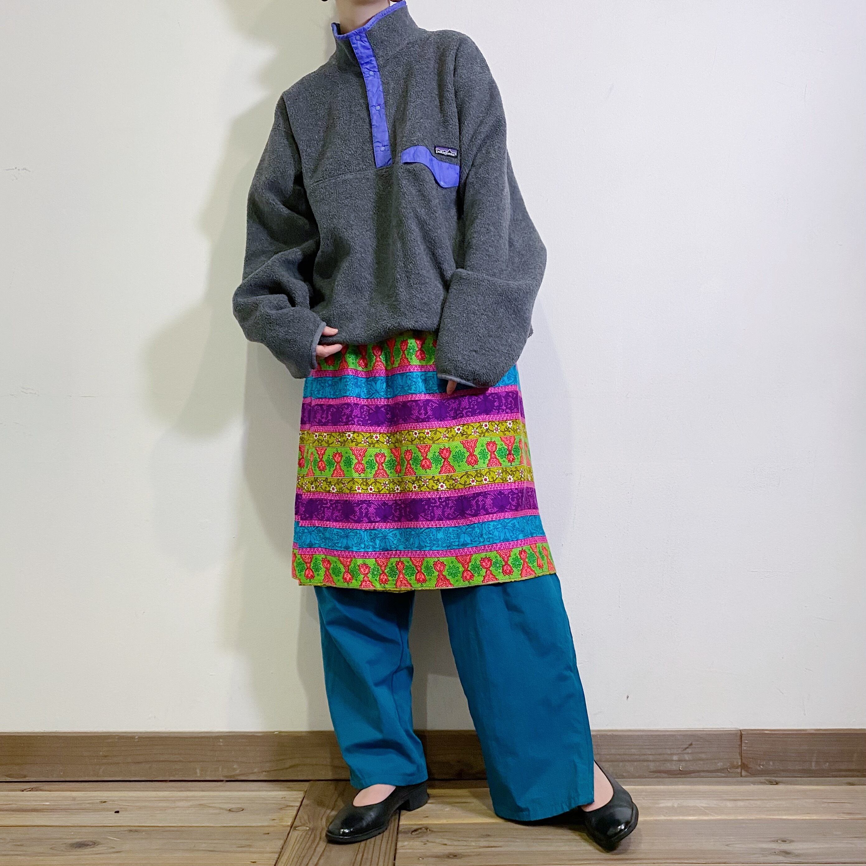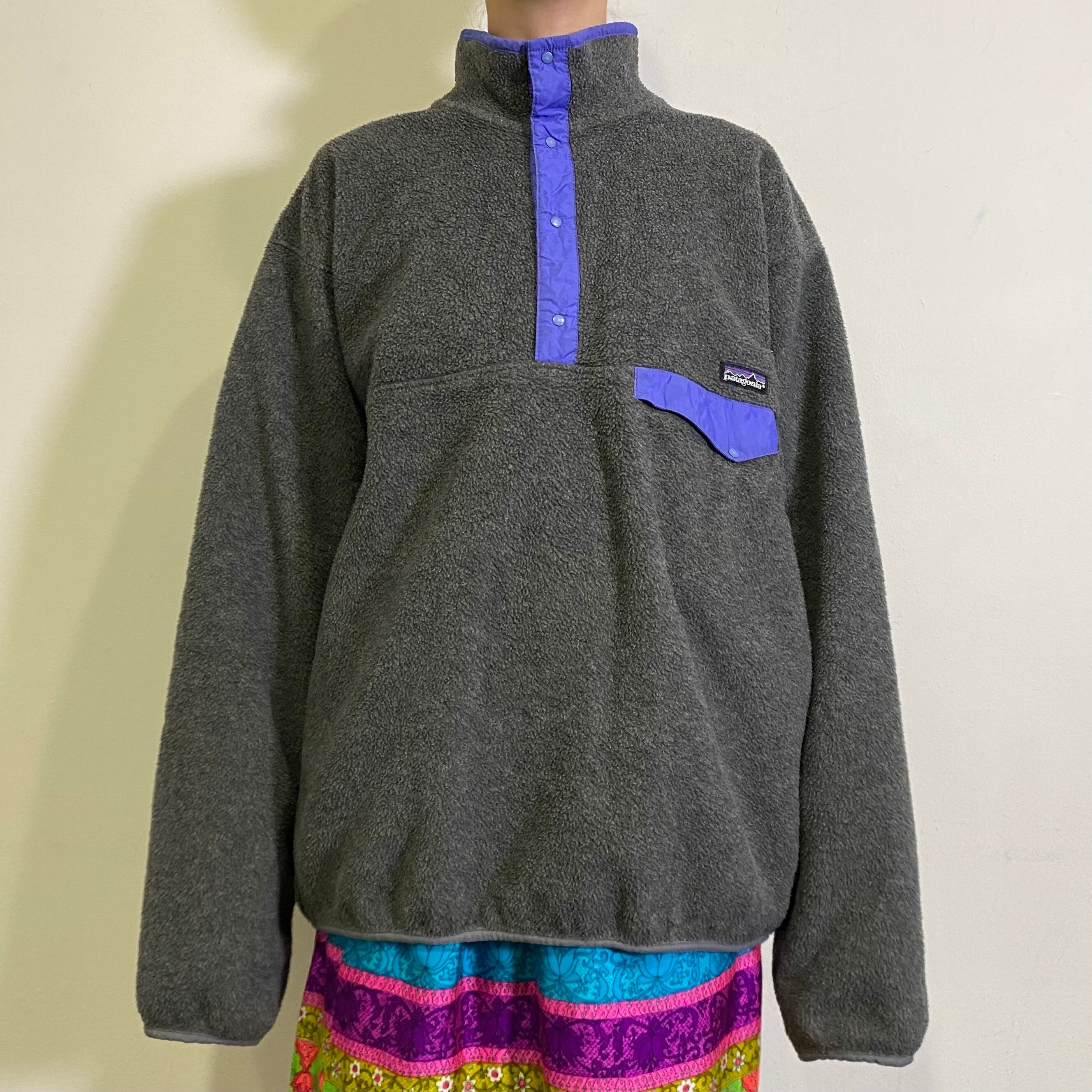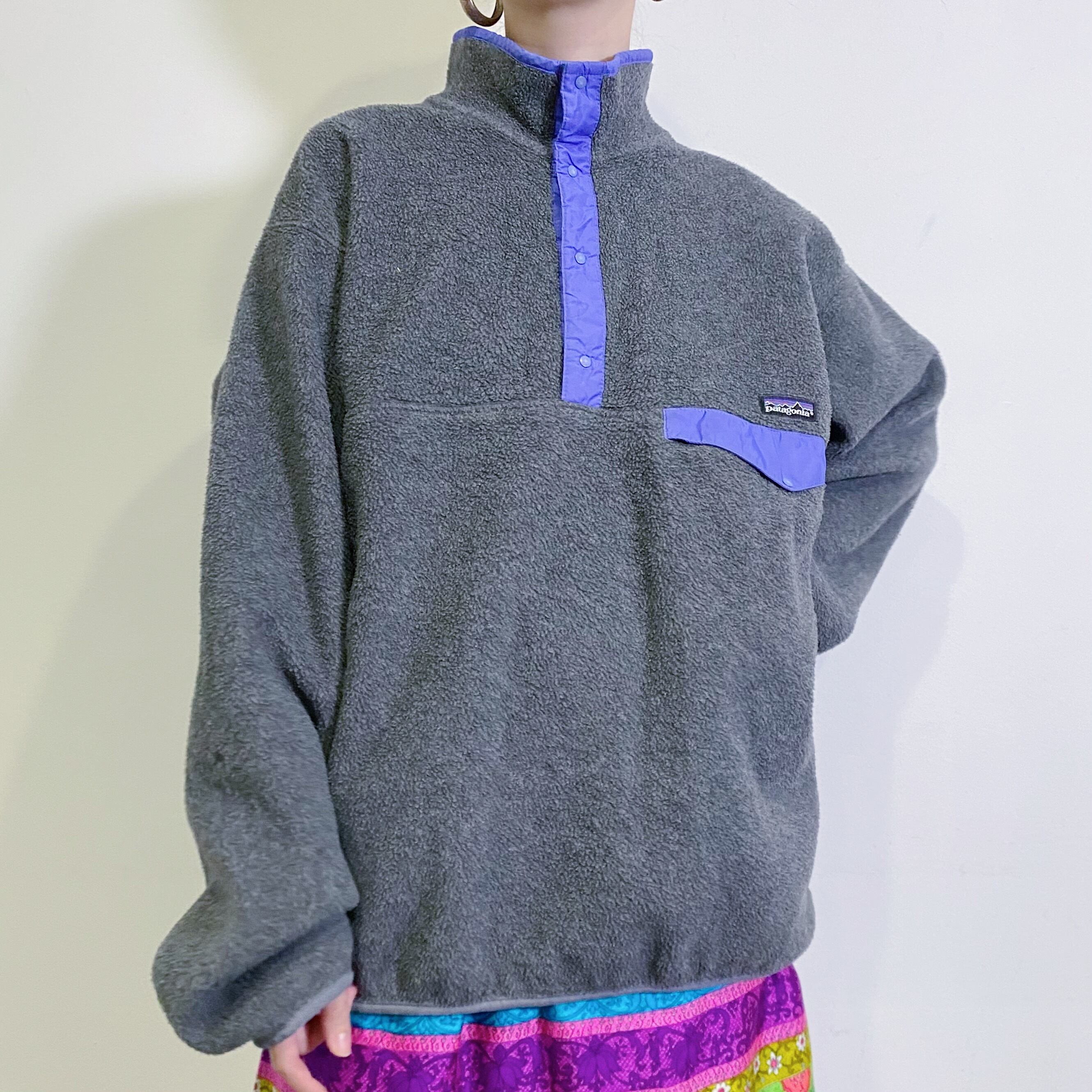 グレーカラーにパープルカラーがアクセントになった、90年代のパタゴニアのフリーストップです。