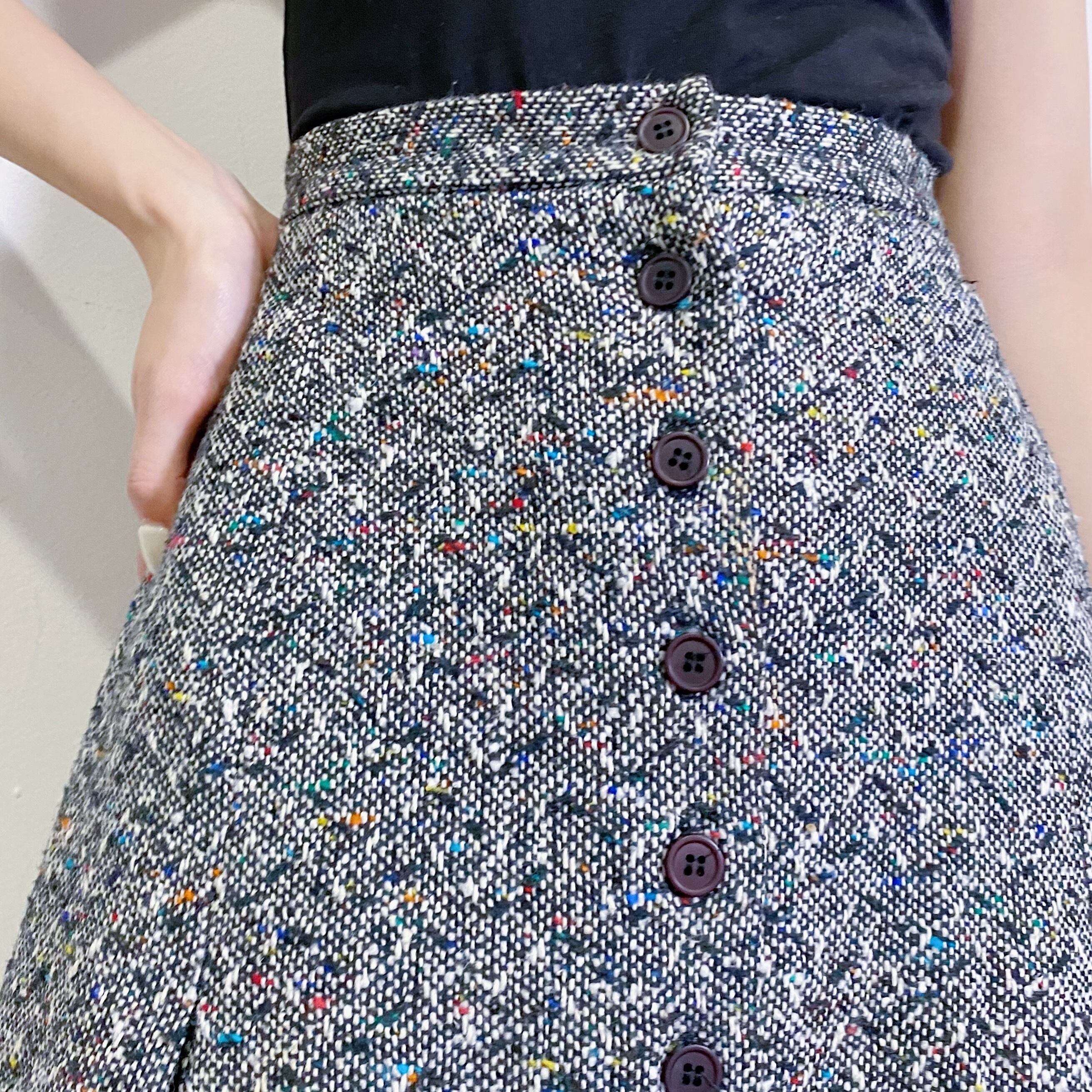 カラフルなミックスカラーが可愛い、ウール素材のミニスカートです。