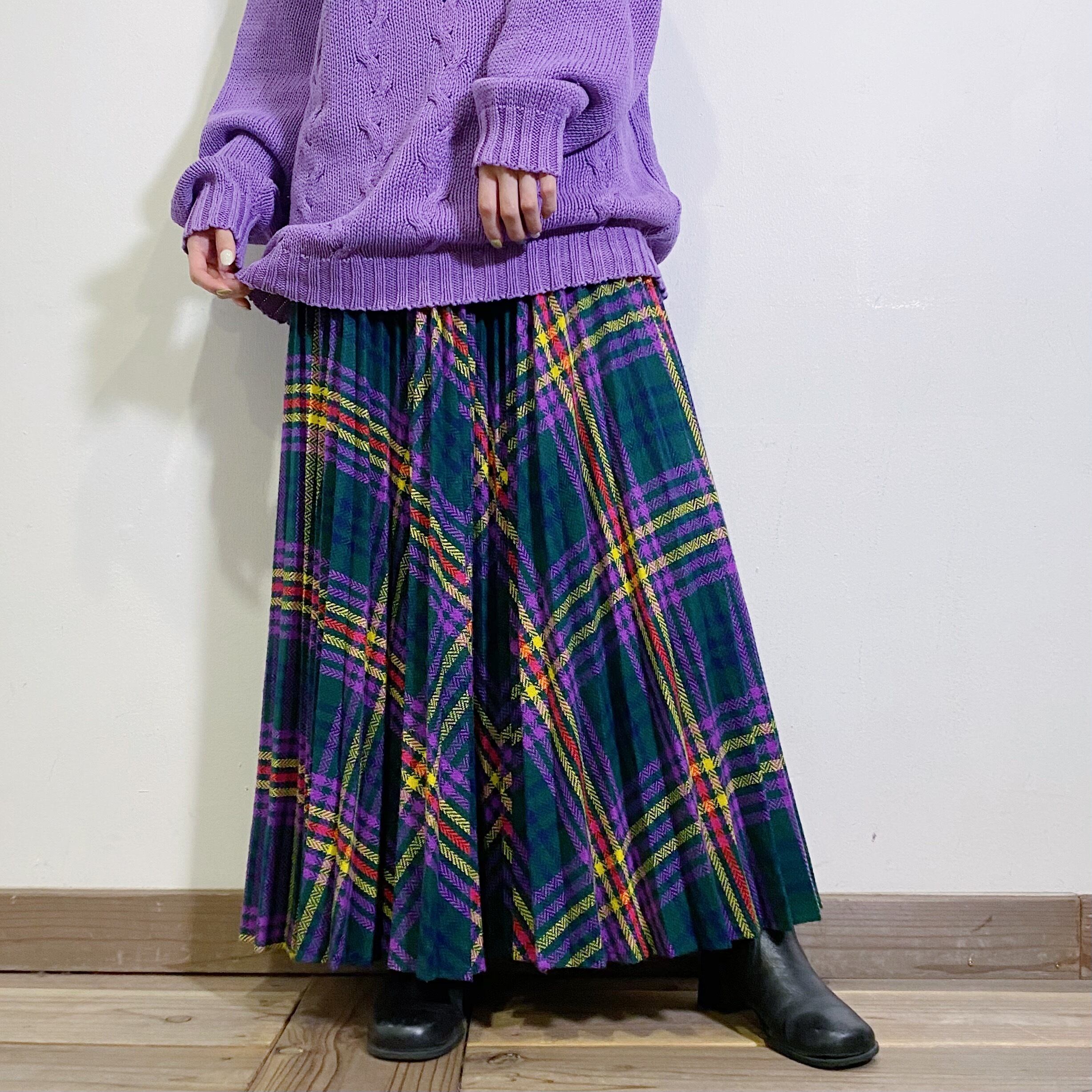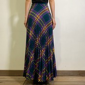グリーン・パープル・イエローの色合いのチェック柄が素敵な、70年代のロングスカートです。