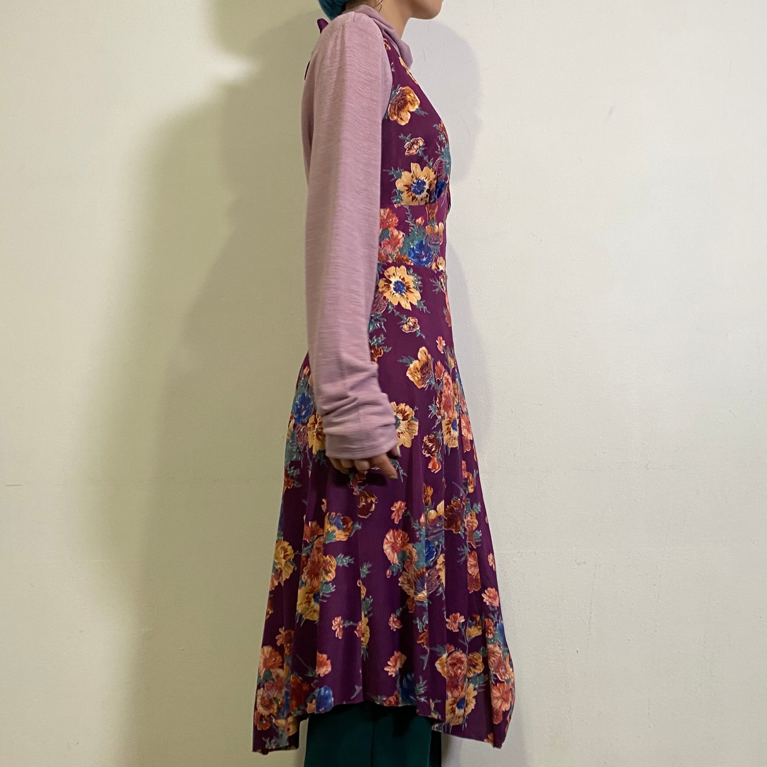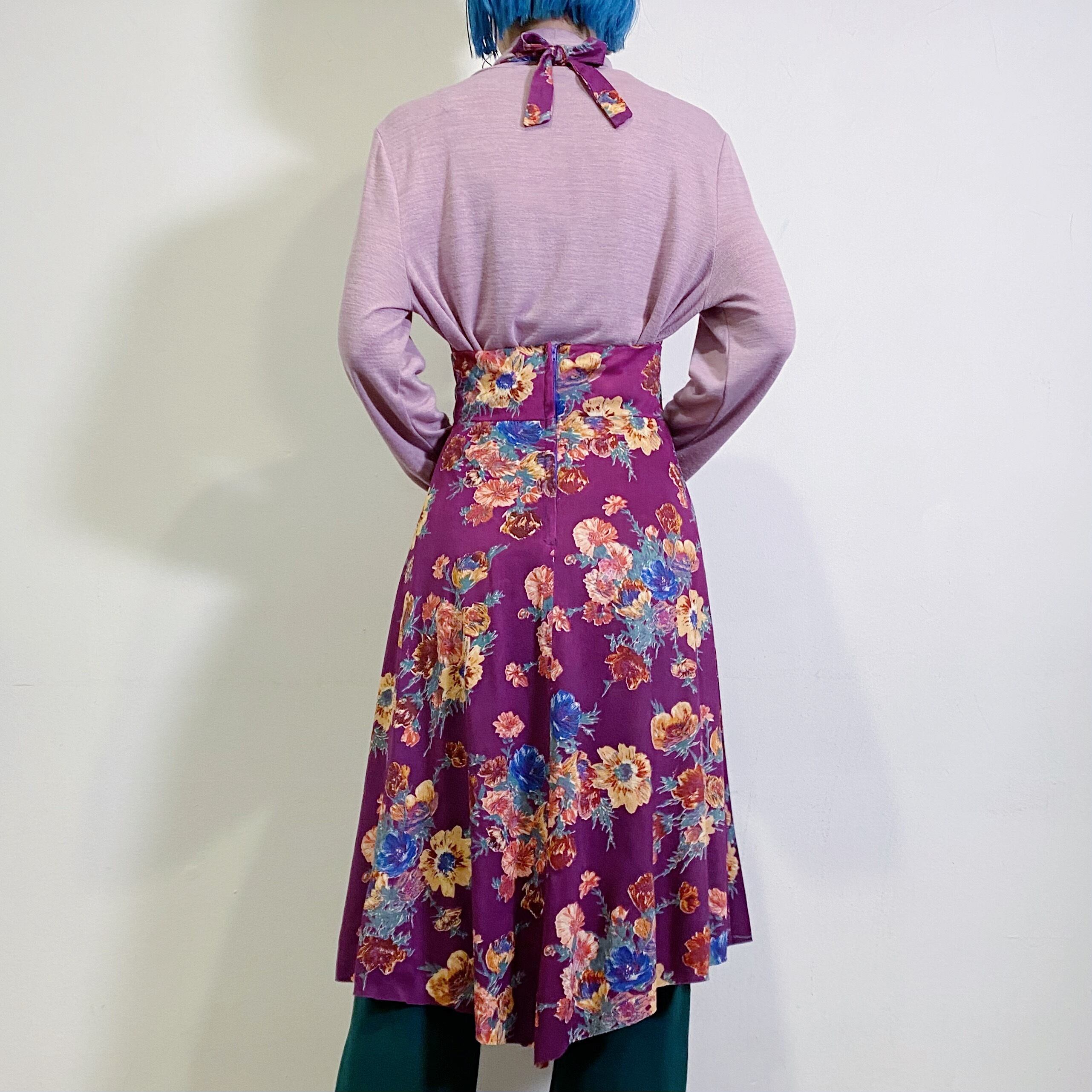 こっくりとしたパープルに花柄が可愛い、70年代のワンピースです。