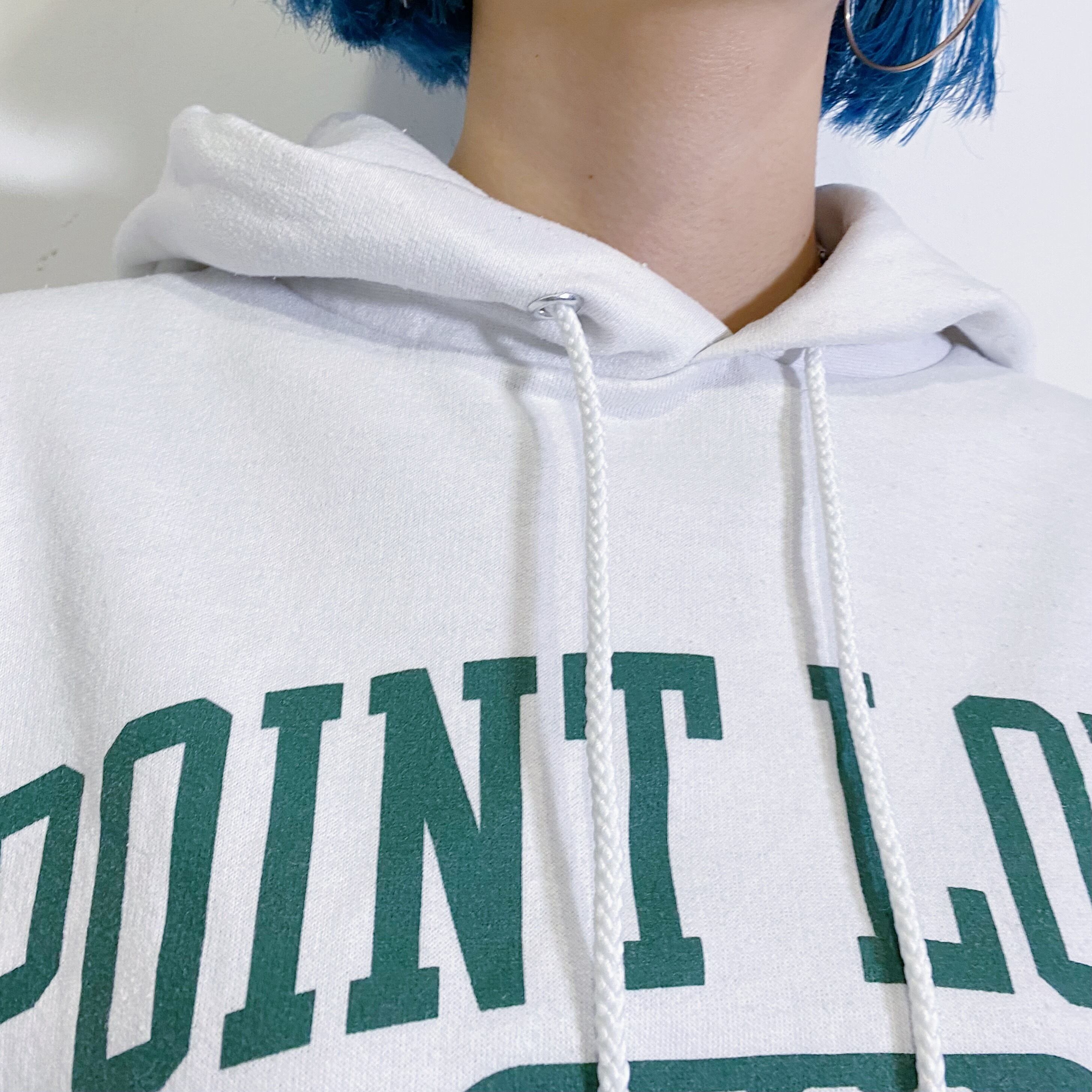 ホワイトボディにグリーンのロゴが可愛い、championのスウェットパーカーです。