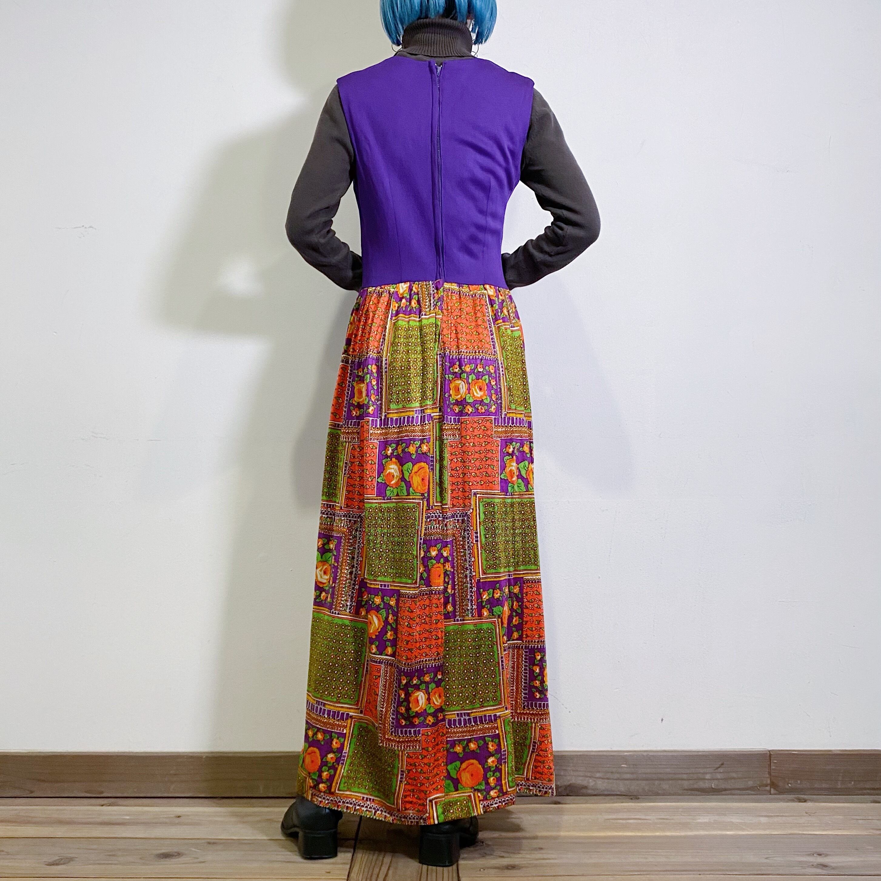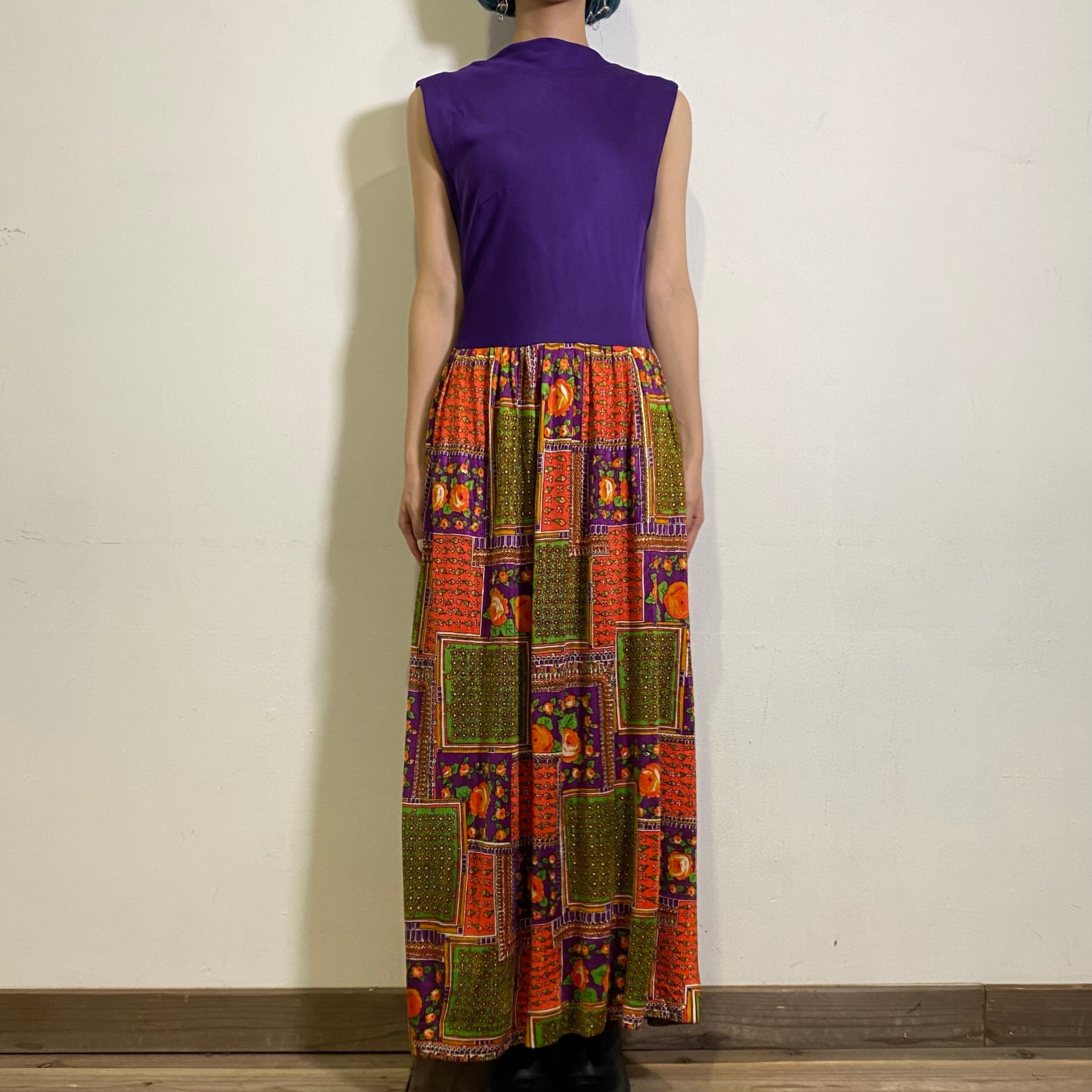 60s psychedelic printed sleeveless long dress