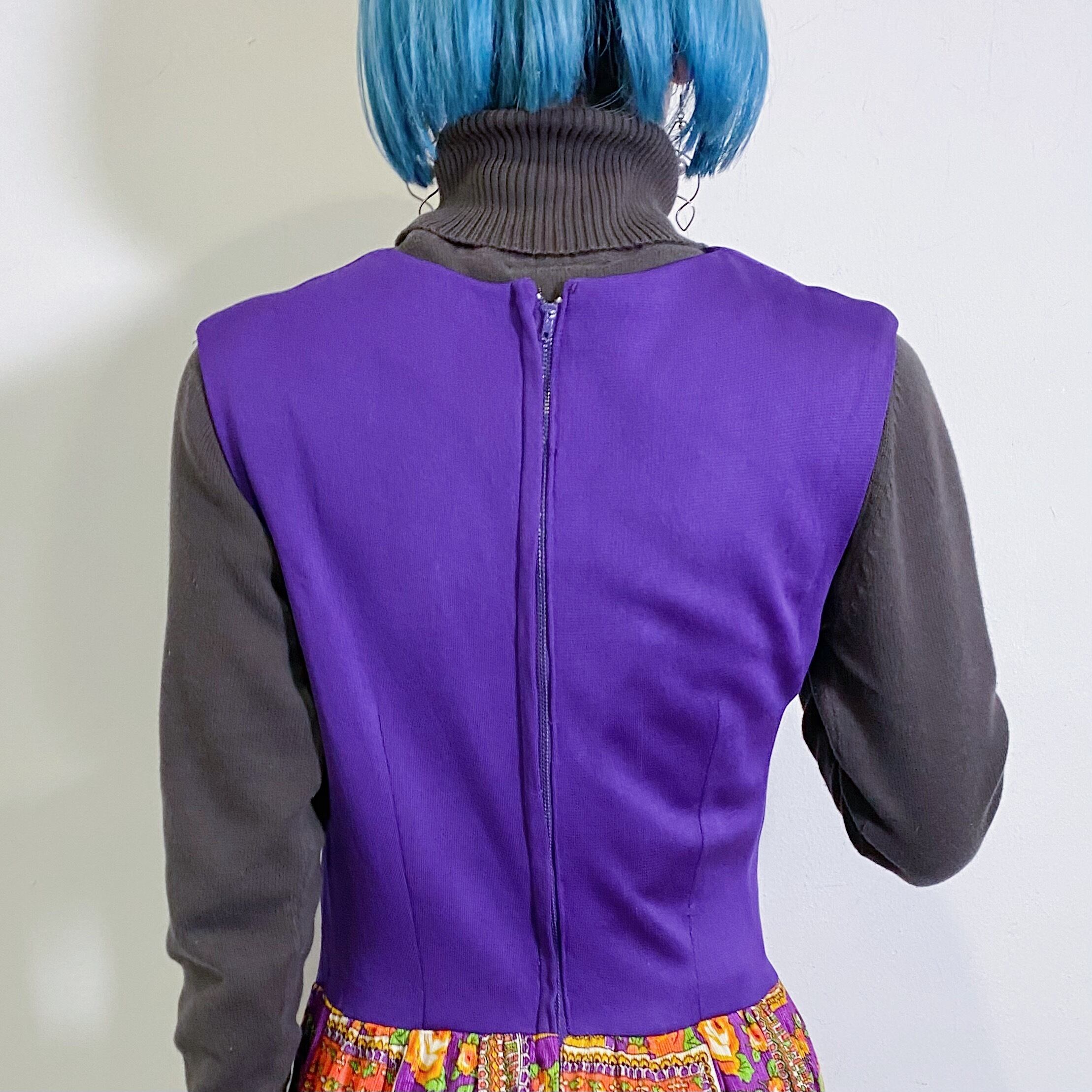 ウエスト切り替えのサイケなテキスタイルが可愛い、60年代のノースリーブワンピースです。