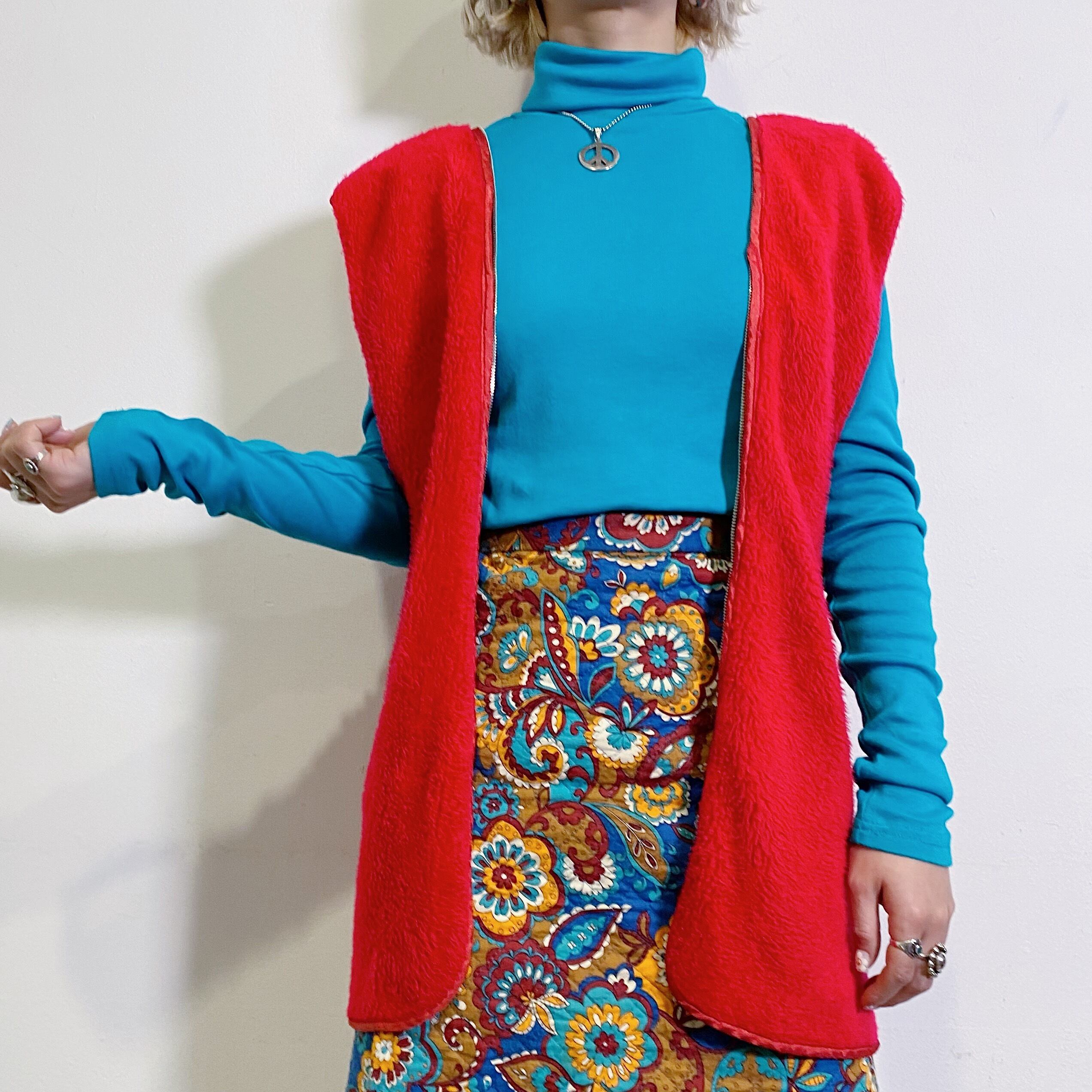着用写真のような柄スカートや柄ワンピースとも相性良く着られるので、柄物を多くお持ちの方には大変おすすめです。