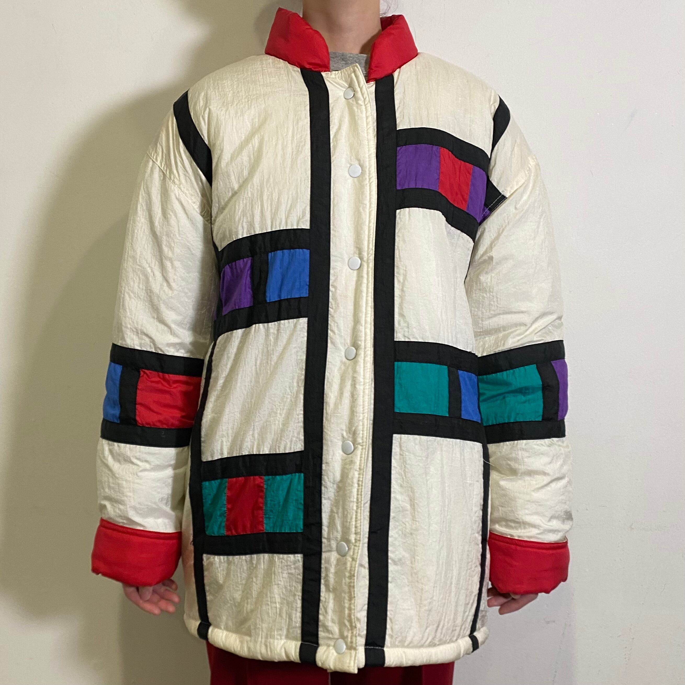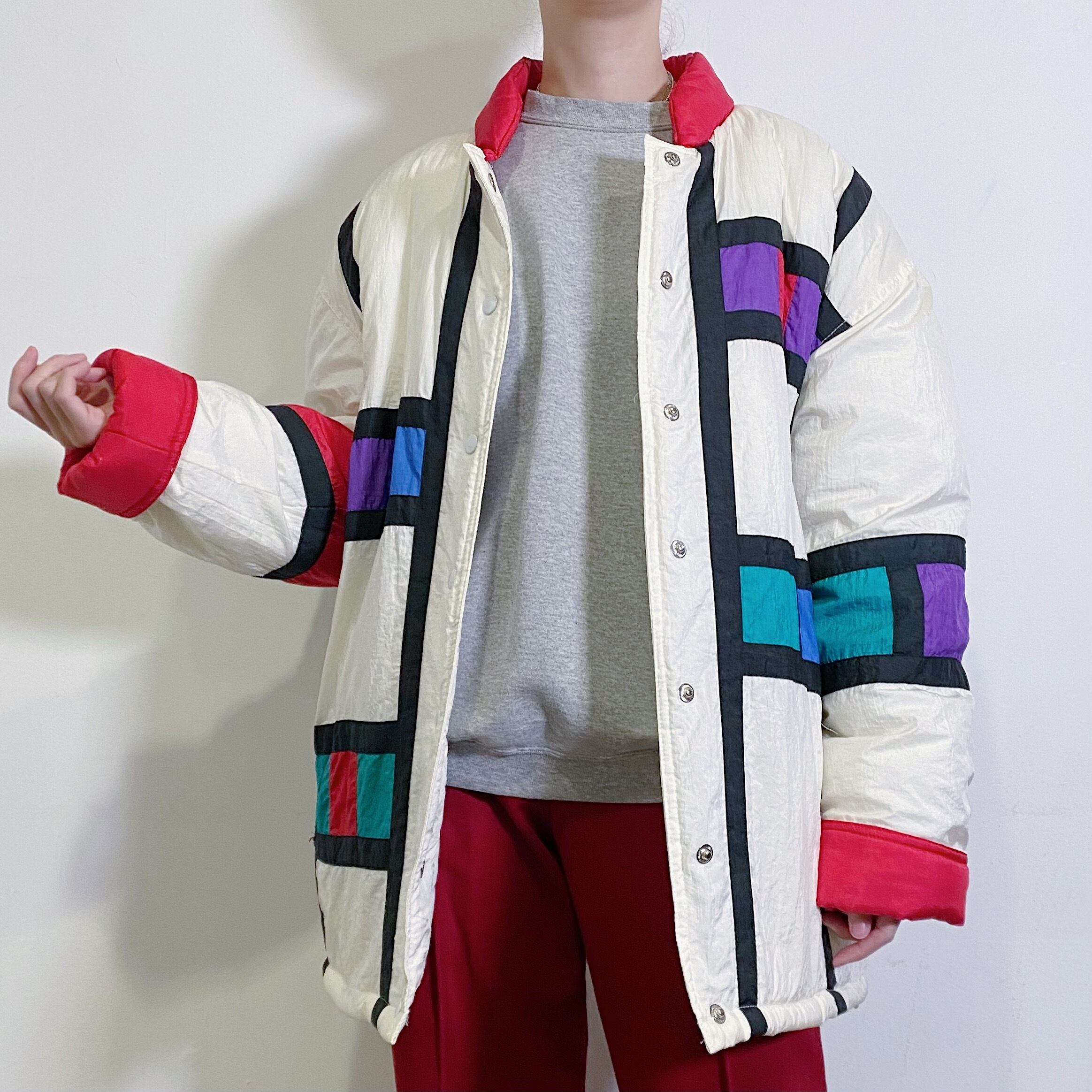 パープルやレッド・グリーンなどの配色やオーバーサイズ感も80sらしく魅力的。