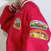 可愛くユニークなワッペンがフロント・バック・お袖にびっしりと、贅沢に縫い付けられたナイロンジャケットです。