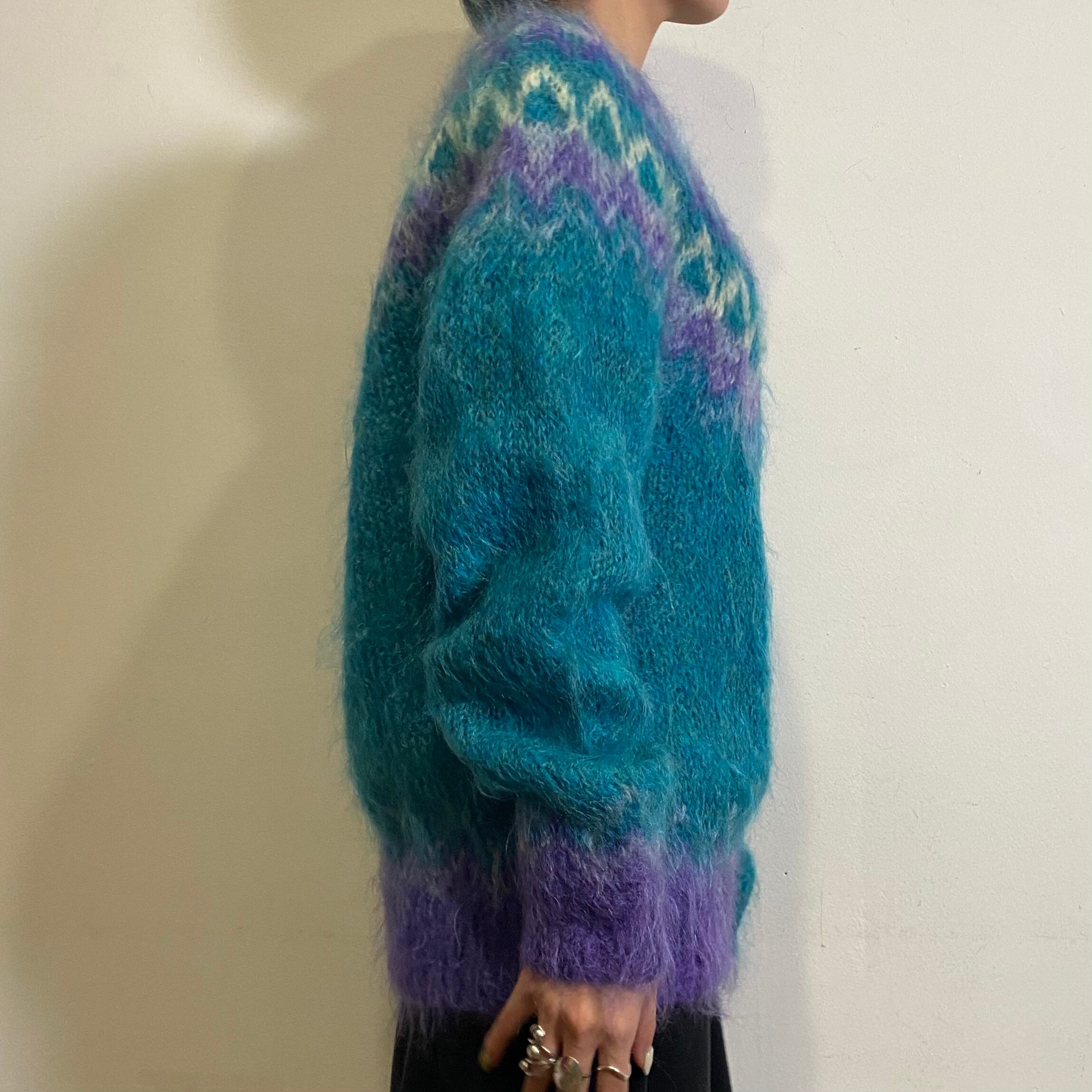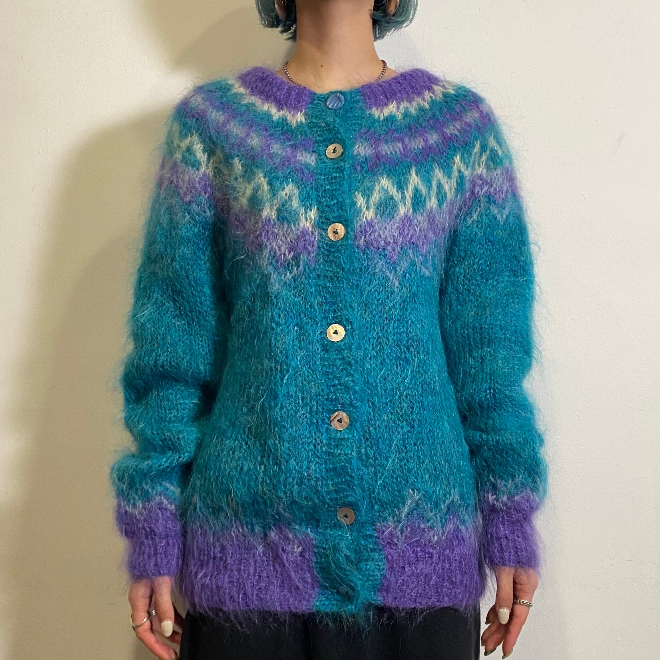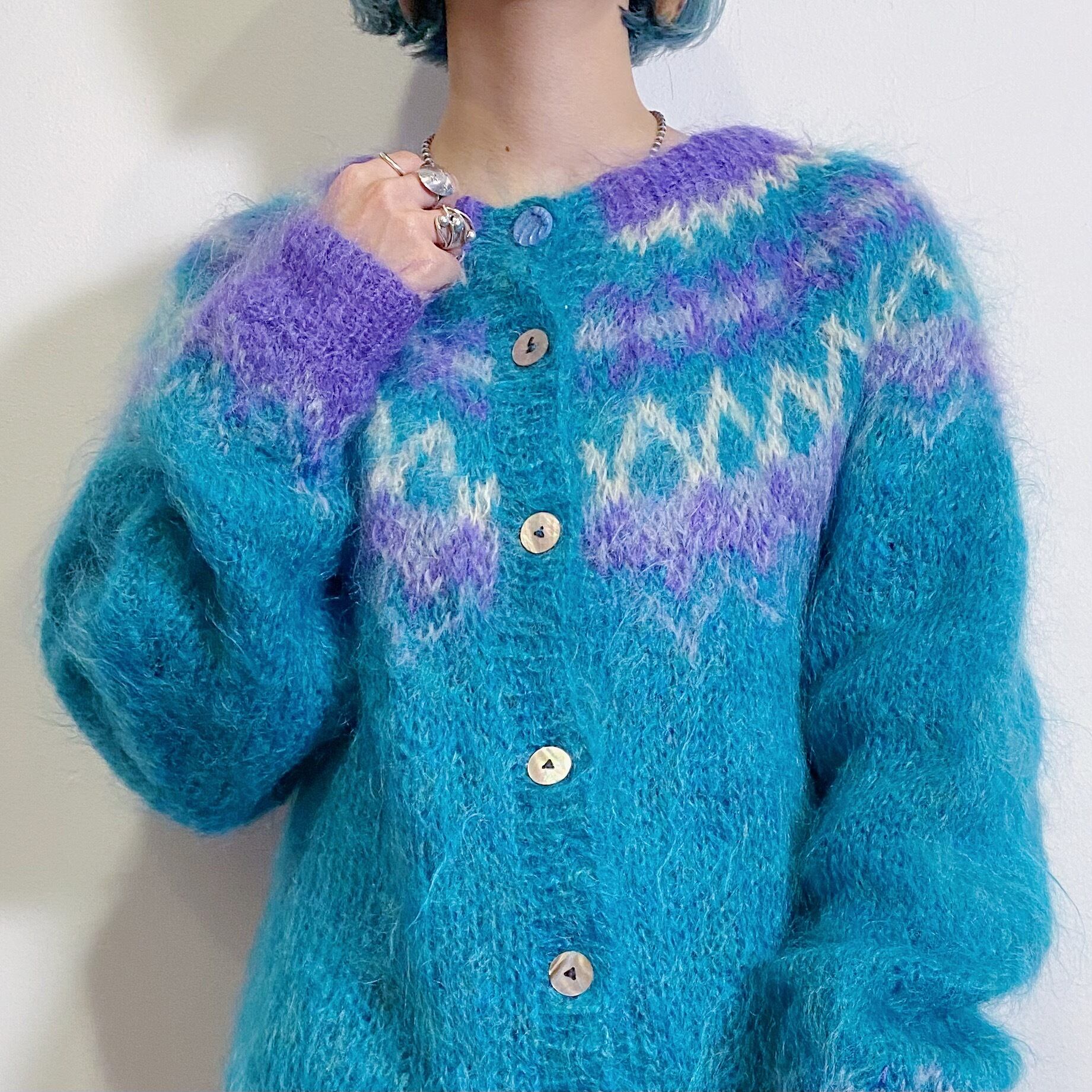 80s blue and purple mohair knit cardigan