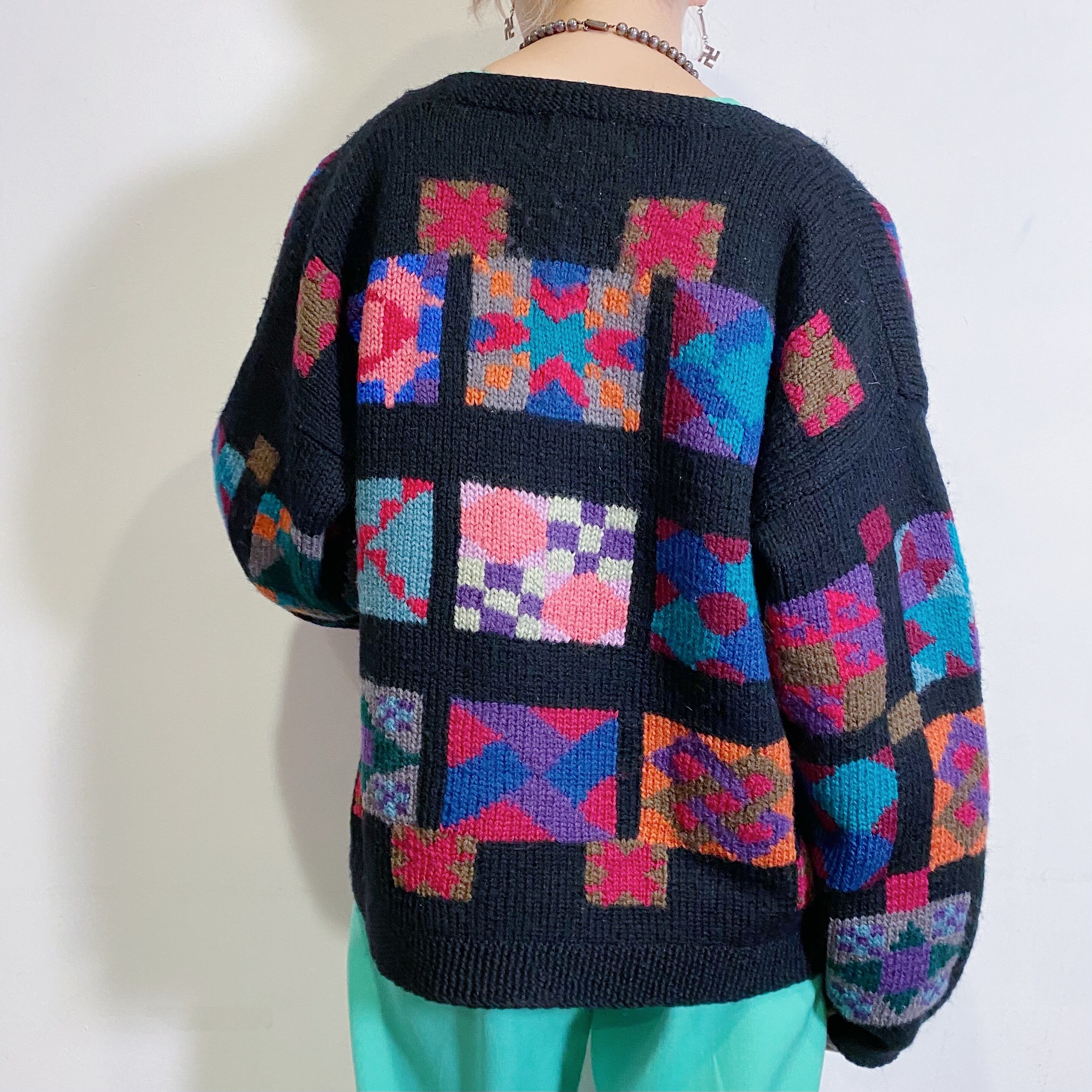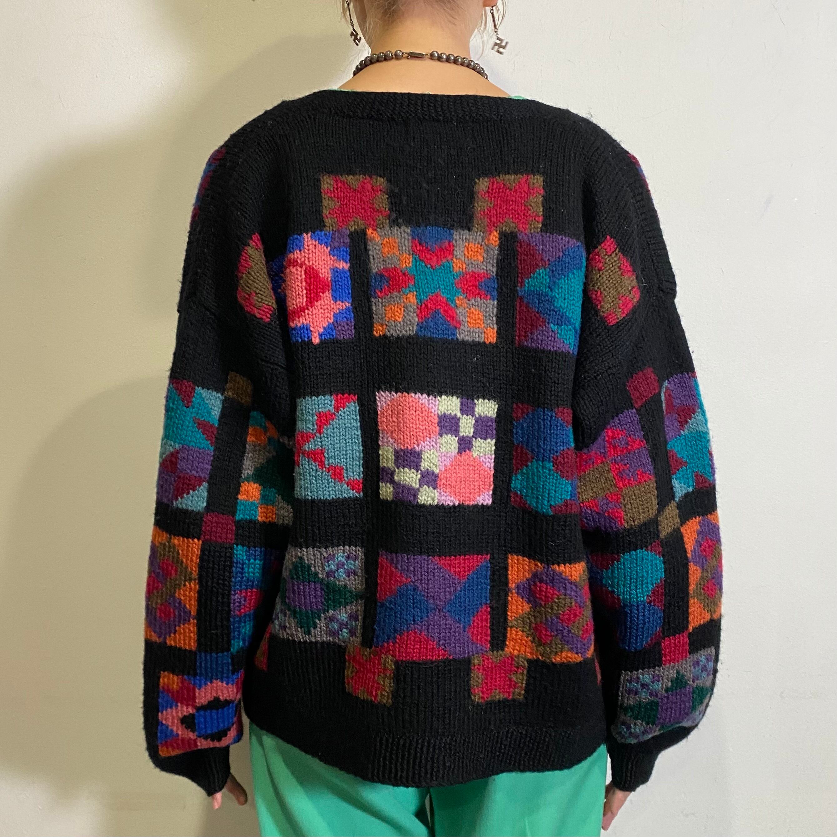“L.L.Been” black and colorful knit cardigan