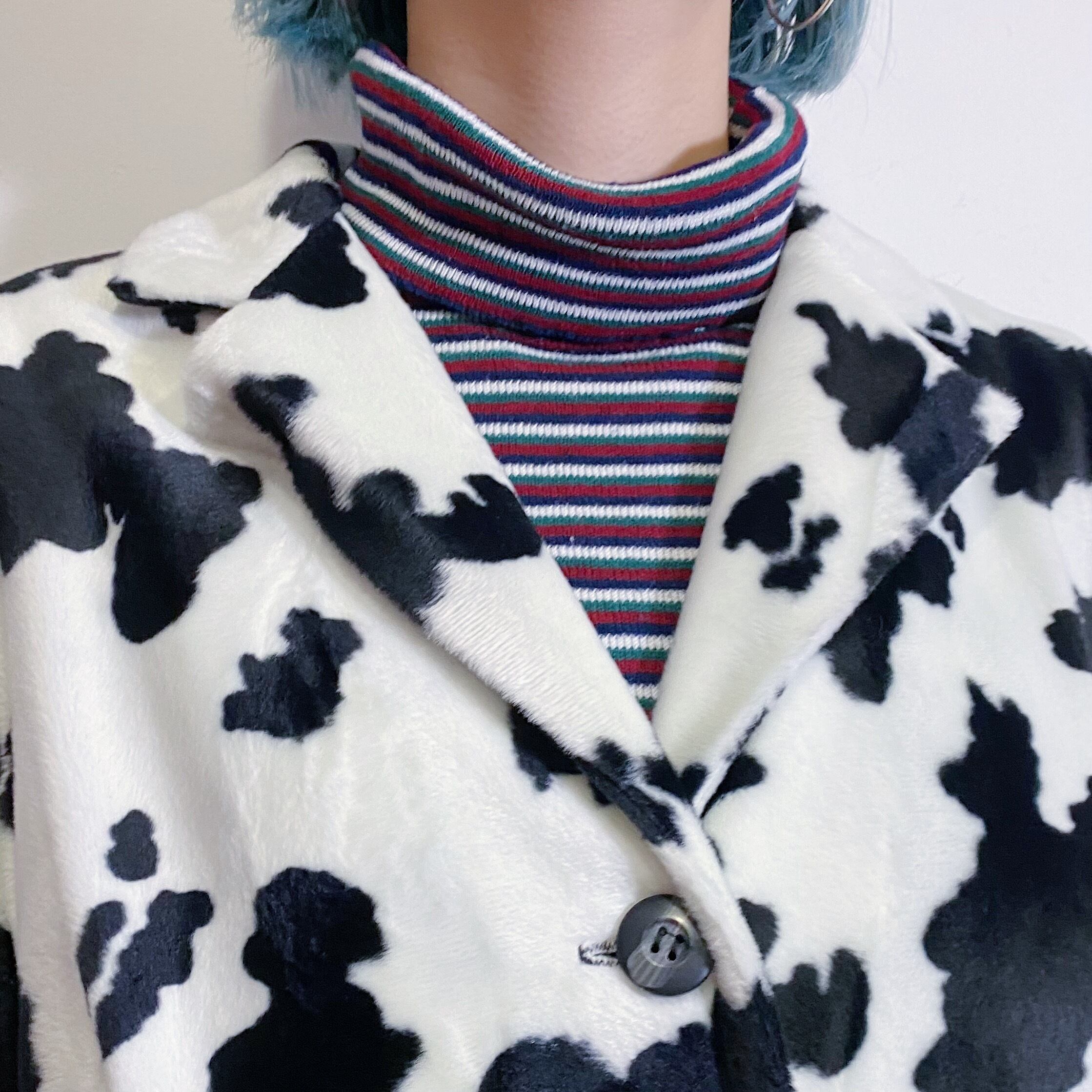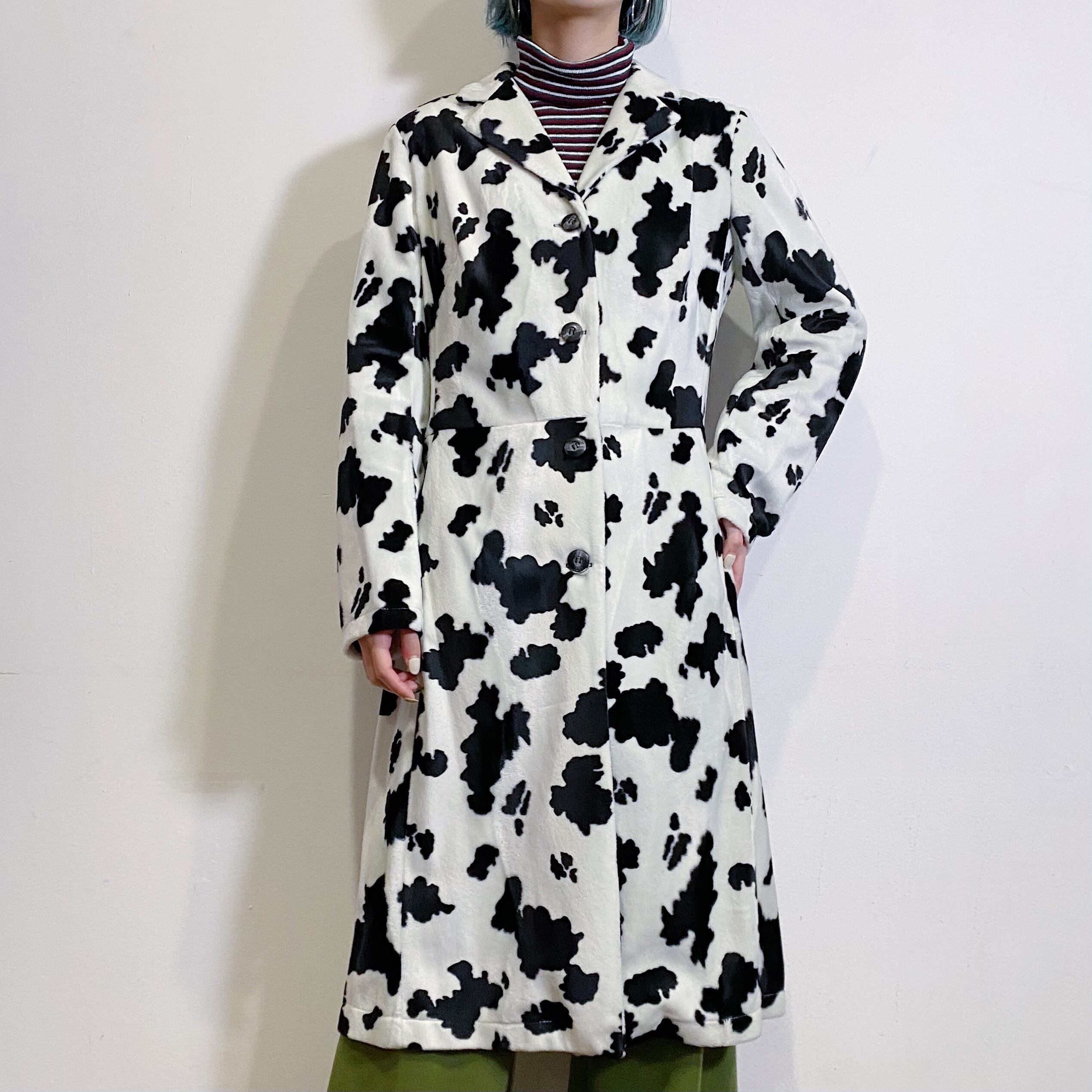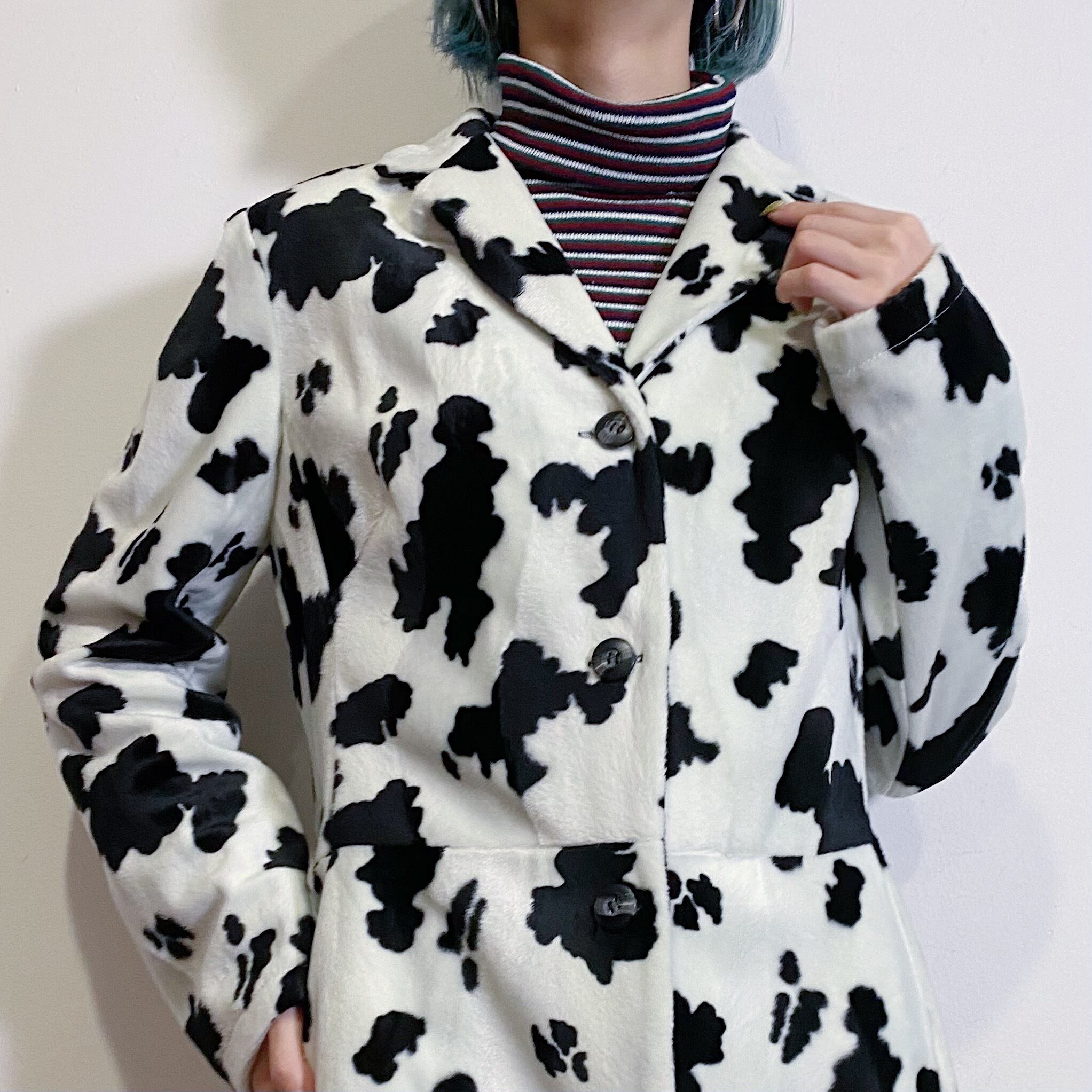 エコファーの総牛柄がとっても可愛い、80年代のコートです。