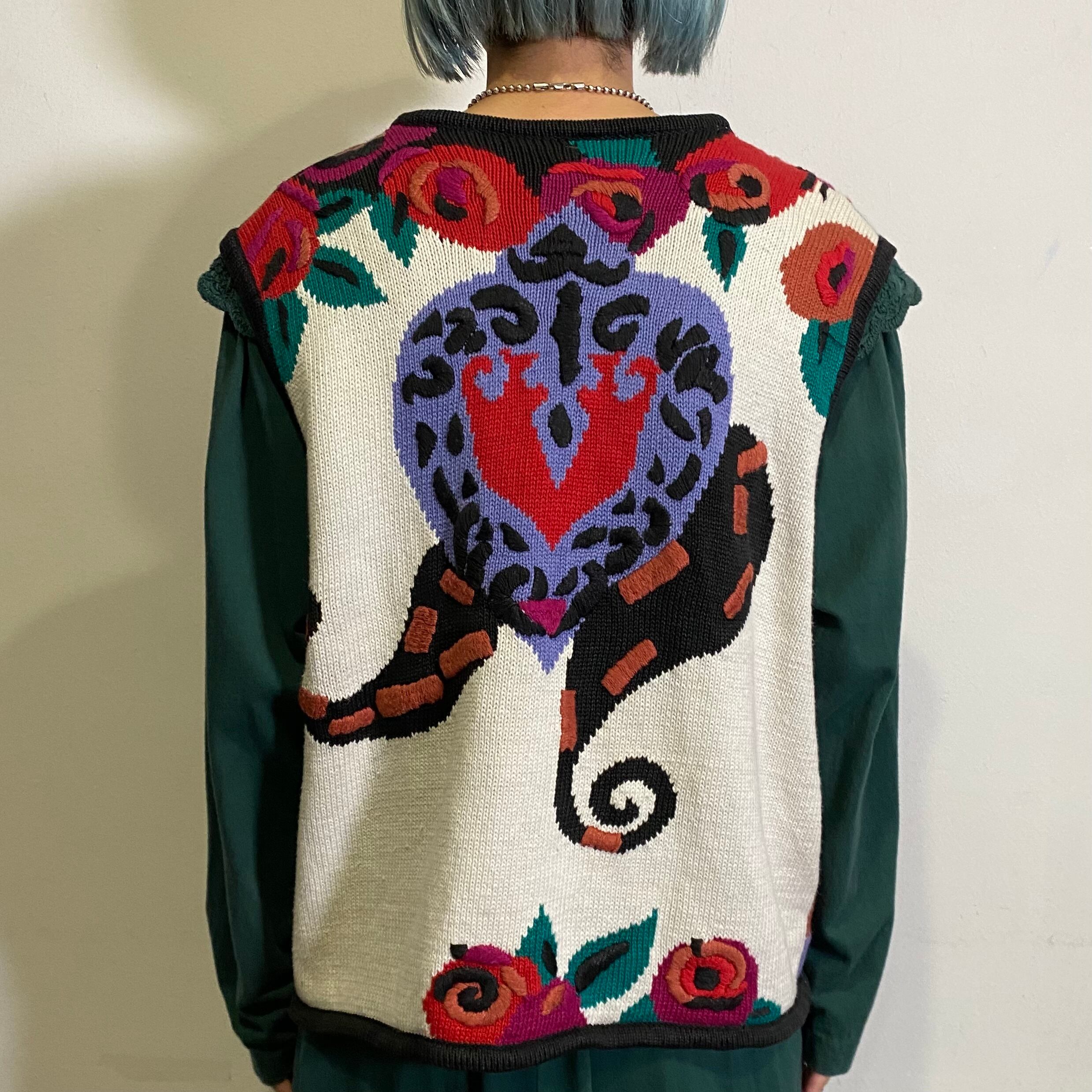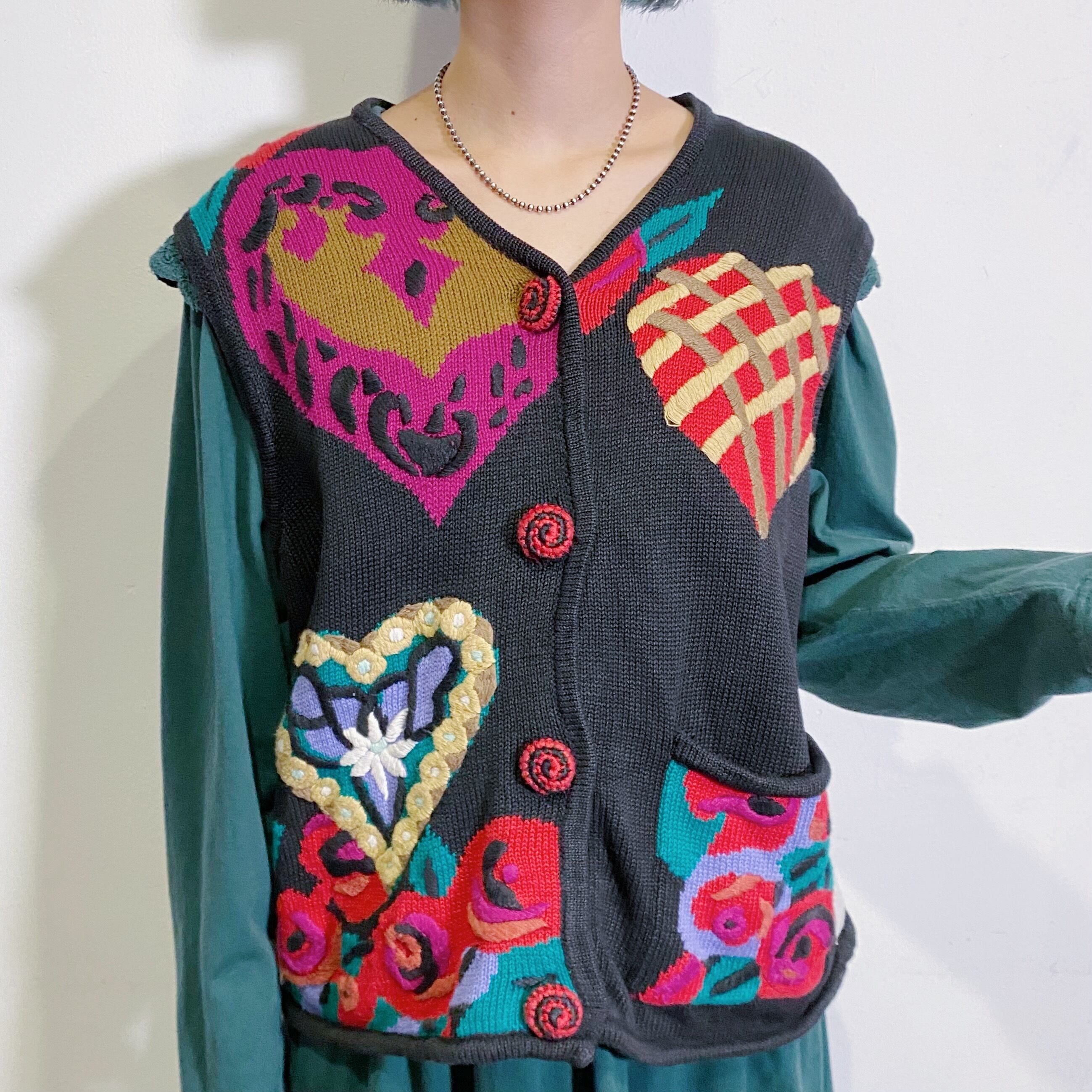 ハートモチーフが可愛い、80年代のラミーコットン地のベストです。