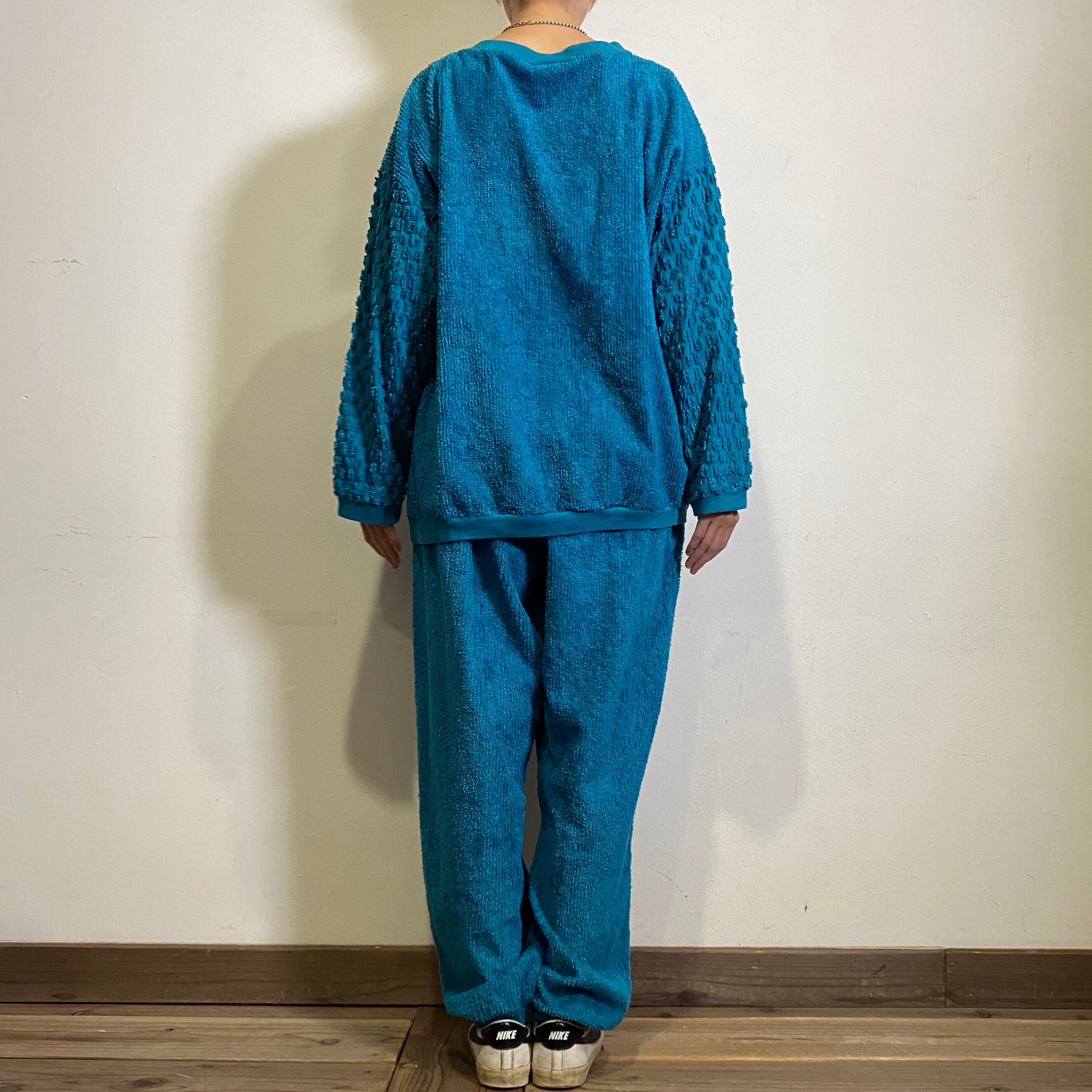 モケモケとしたパイル地のような素材感がユニークで可愛い、80年代のセットアップです。