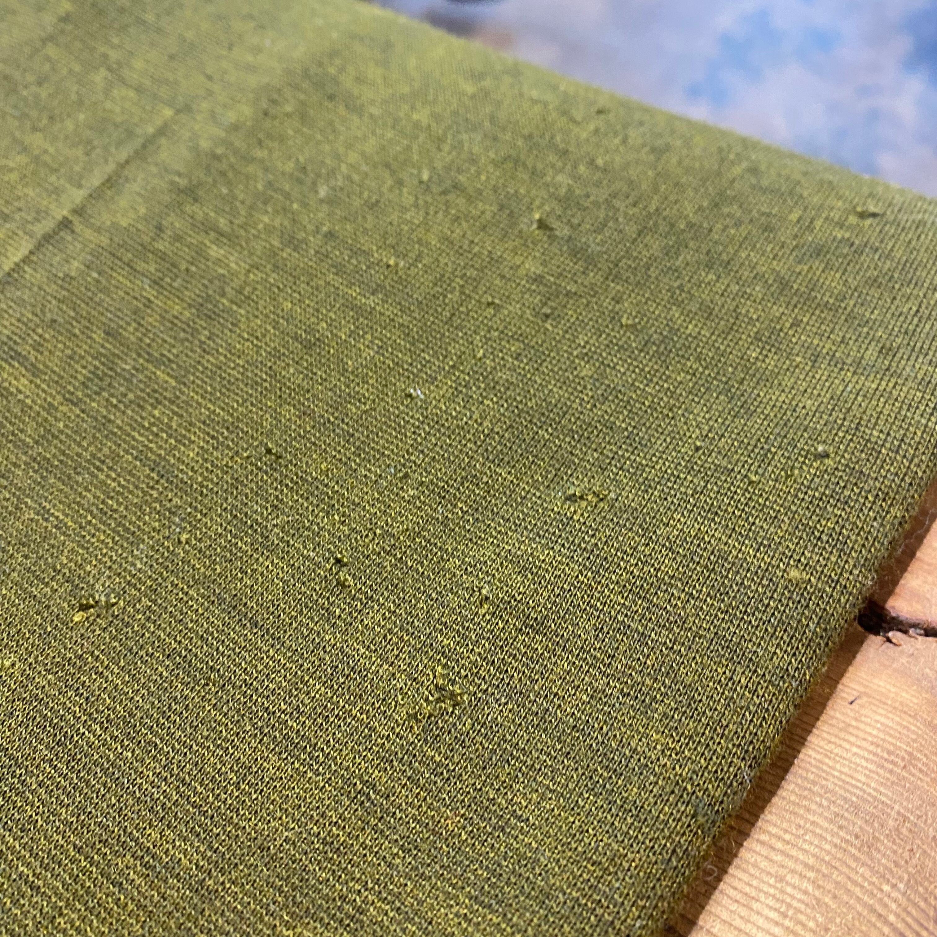 ダメージの貫通している箇所には、裏から接着芯で塞いだ跡が見受けられます。