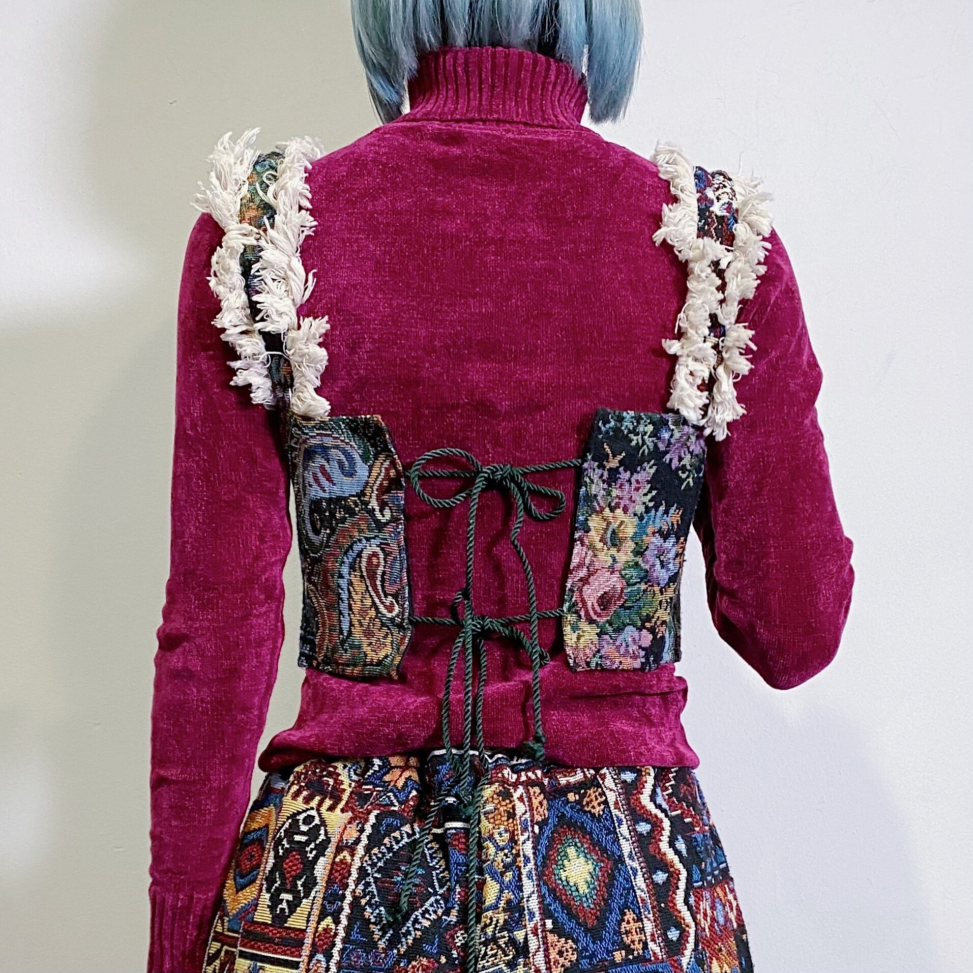 ネイビーベースのゴブラン織りに、フリンジデザインが可愛いセットアップです。